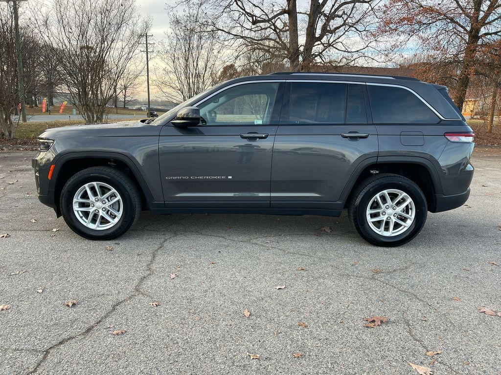 THIS VEHICLE INCLUDES THE FOLLOWING FEATURES AND OPTIONS: Luxury Tech Group I (115V Auxiliary Power Outlet, Heated Front Seats, Heated Steering Wheel, Power Liftgate, Rain Sensitive Windshield Wipers, Remote Start System, Secondary Active Grille Shutters, Selectable Tire Fill Alert, and Wireless Charging Pad), Quick Order Package 23A Laredo, Grand Cherokee Laredo 4wd, 4D Sport Utility, 4WD, Baltic Gray Metallic Clearcoat, Black Cloth, 6 Speakers, Brake assist, Cloth Seats, Electronic Stability Control, Emergency communication system, Four wheel independent suspension, Front License Plate Bracket, Fully automatic headlights, Heated door mirrors, Molded In Color Black/Gloss Black Roof Rails, Normal Duty Suspension, ParkView Rear Back-Up Camera, Power driver seat, Power Sunroof (DISC), Radio: Uconnect 5 w/8.4 Display, Remote keyless entry, Split folding rear seat, Steering wheel mounted audio controls, Traction control, Wheels: 18 x 8 Fully Painted Aluminum (DISC), 3.45 Rear Axle Ratio, 4-Wheel Disc Brakes, ABS brakes, Air Conditioning, Anti-whiplash front head restraints, Automatic temperature control, Bumpers: body-color, Compass, Cruise Control, Delay-off headlights, Driver door bin, Driver vanity mirror, Dual front impact airbags, Dual front side impact airbags, Front anti-roll bar, Front Bucket Seats, Front Center Armrest w/Storage, Front dual zone A/C, Front reading lights, Illuminated entry, Knee airbag, Low tire pressure warning, Occupant sensing airbag, Outside temperature display, Overhead airbag, Overhead console, Panic alarm, Passenger door bin, Passenger vanity mirror, Power door mirrors, Power steering, Power windows, Radio data system, Rear anti-roll bar, Rear reading lights, Rear window defroster, Rear window wiper, Roof rack: rails only, Security system, Speed-Sensitive Wipers, Spoiler, Tachometer, Telescoping steering wheel, Tilt steering wheel, Trip computer, Variably intermittent wipers, and Voltmeter.