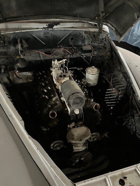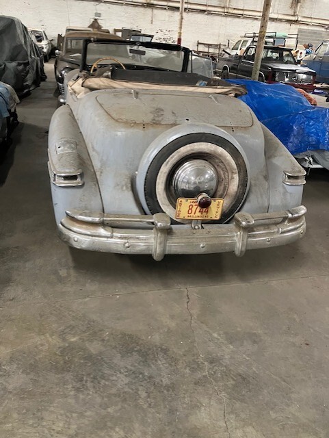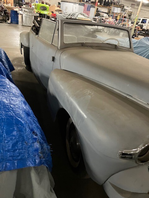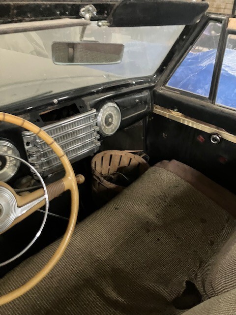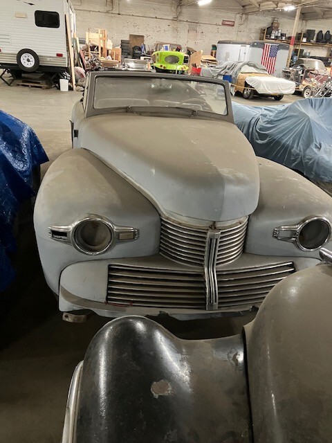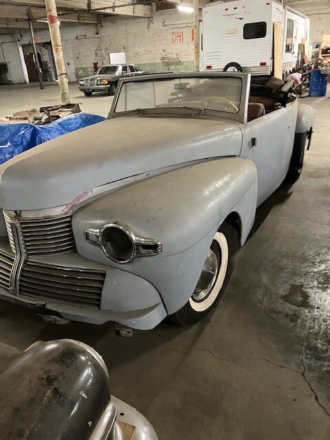 Very Rare 1942 Continental Cabriolet with V12 engine only 136 made. It needs complete restoration, not running, solid body, has some rust in the trunk that needs repair, has a good top frame, some extra parts, have a newly restored speedometer, front bumpers have been rechromed.