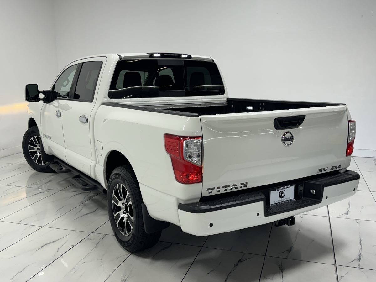 Our powerful One Owner 2021 Nissan Titan SV Crew Cab 4X4 in Glacier White never knows when to quit! Motivated by a 5.6 Liter Endurance V8 providing 400hp matched to a 9 Speed Automatic transmission to tow and haul with exceptional ease. This Four Wheel Drive truck is also at home off the road - and it scores nearly 20mpg on the highway. Rugged and ready for action - our Titan shows off LED taillamps and cargo-bed lighting - heated power mirrors - a lockable damped tailgate - bedliner - side steps - a radiator skid plate - alloy wheels - and chrome door handles. Enjoy impressive comfort in our SV cabin - where you're treated to stain-resistant cloth heated front seats - a multifunction steering wheel - air conditioning - full power accessories - keyless entry - pushbutton ignition - a sliding rear window - and FineVision electroluminescent gauges. Upscale technology like a 7-inch driver display - an 8-inch touchscreen - Android Auto - Apple CarPlay - WiFi compatibility - and a six-speaker audio system can keep you connected to your world even when you're on the go. Nissan's smart technology for safety and security includes adaptive cruise control - a backup camera - front/rear automatic emergency braking - forward collision warning - a blind-spot monitor - lane-departure warning - and more. Our Titan SV is a terrific truck that will treat you right! Save this Page and Call for Availability. We Know You Will Enjoy Your Test Drive Towards Ownership!