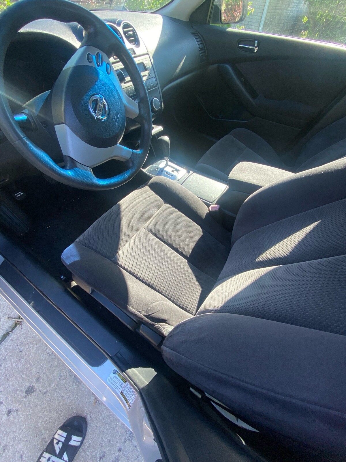 This midsize sedan has a sporty suspension and quick steering, and comes in coupe model . The Altima 2.5 SL has a 2.5-liter, 4-cylinder engine with 175 horsepower and a 6-speed manual transmission. Silver exterior and all black interior