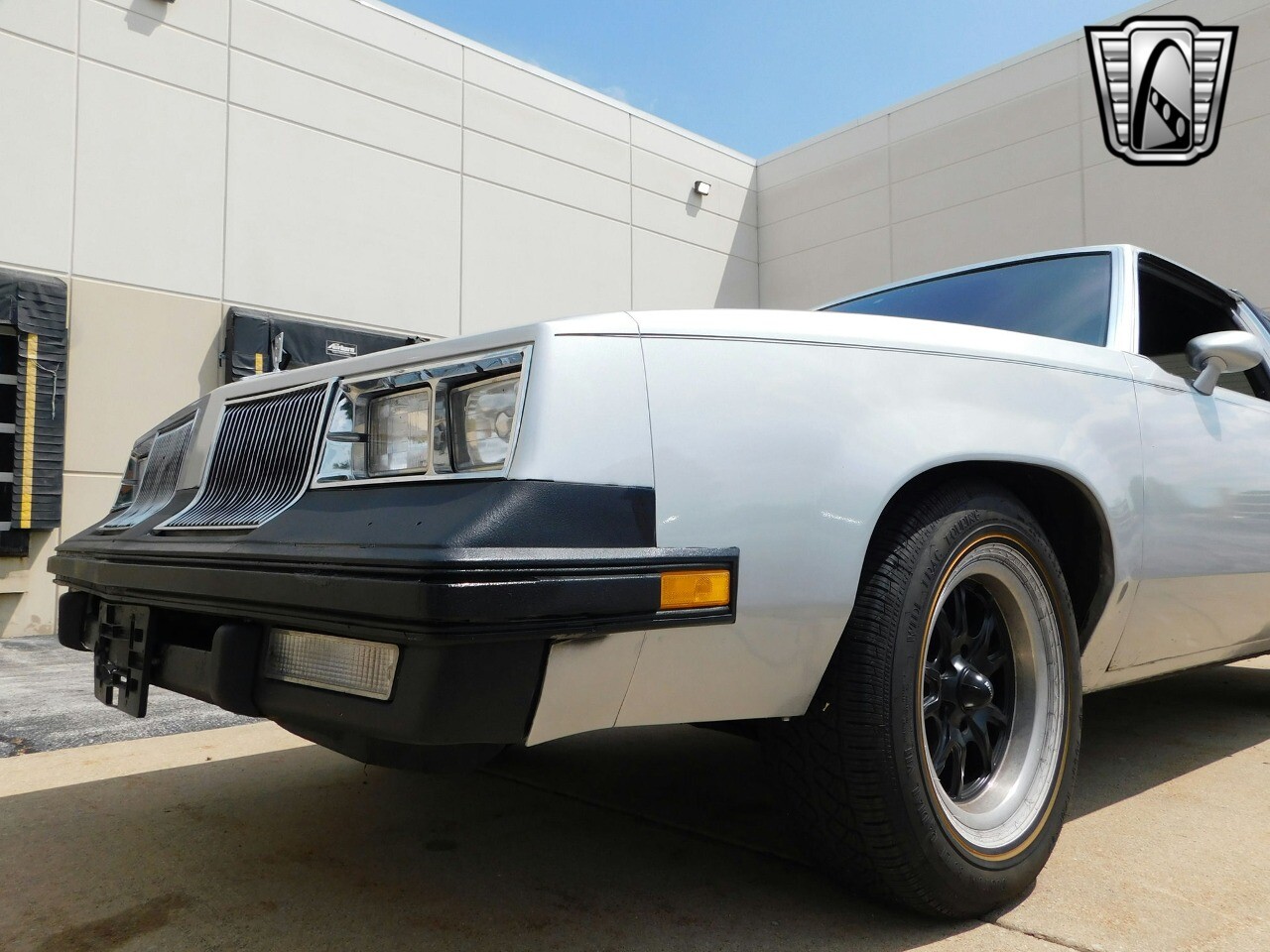 Introducing the timeless elegance of the 1984 Oldsmobile Cutlass Brougham, a classic embodiment of automotive craftsmanship. This distinguished model boasts a sophisticated silver exterior that exudes a sense of understated luxury and style. Step inside, and you'll be greeted by a comfortable and inviting black cloth interior, designed to offer a plush and enjoyable driving experience.