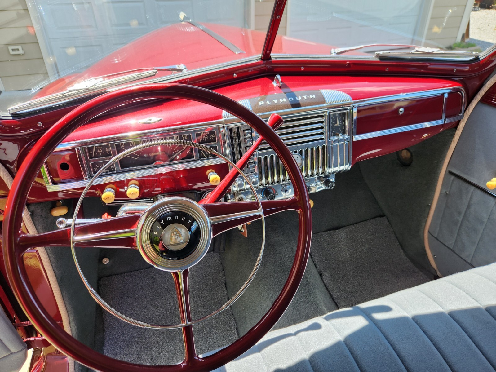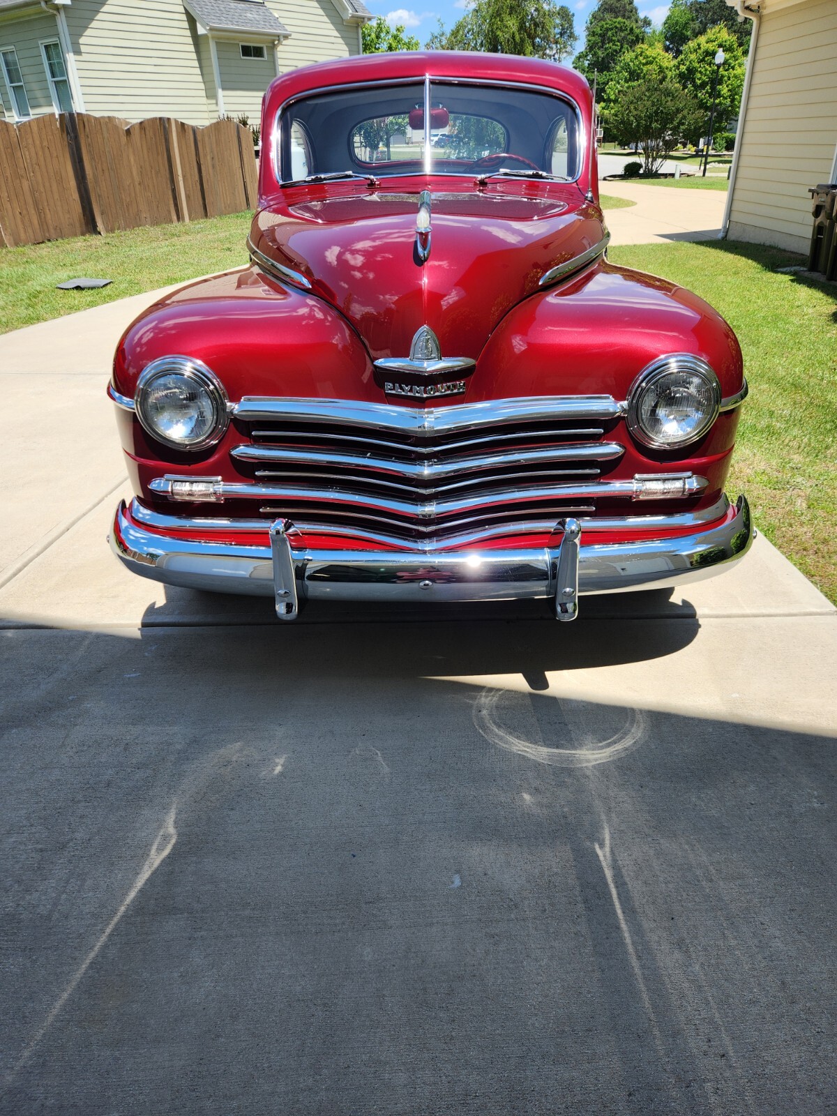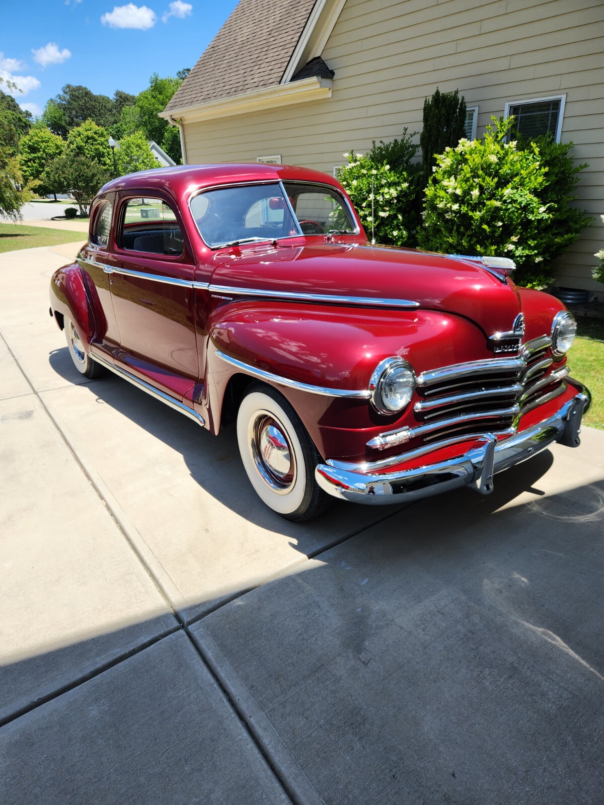Very clean 1948 Plymouth Special Deluxe Coupe. Original owner had the car until 2023 when he passed away. I have had the vehicle for about a year. The original owner had the vehicle restored about 20 years ago, which was a frame off restoration. The original engine, transmission, and rear axle were replaced at that time. He replaced the drivetrain with a late 70's small block chevy and overdrive transmission. The vehicle sat idle for about 10 years before i purchased it. Since owning it, I have changed all the fluids, replaced the radiator and cooling fan. The cooling system had to be flushed and the heads were reconditioned, including new valve stem seals. Other items replaced - intake and valve cover gaskets, oil pain gasket, transmission filter and gasket, distributor cap and rotor, spark plugs and wires; rebuilt carburetor; and upgraded original front drum brakes to disc. By no means is this vehicle perfect, but with some additional TLC it could be.