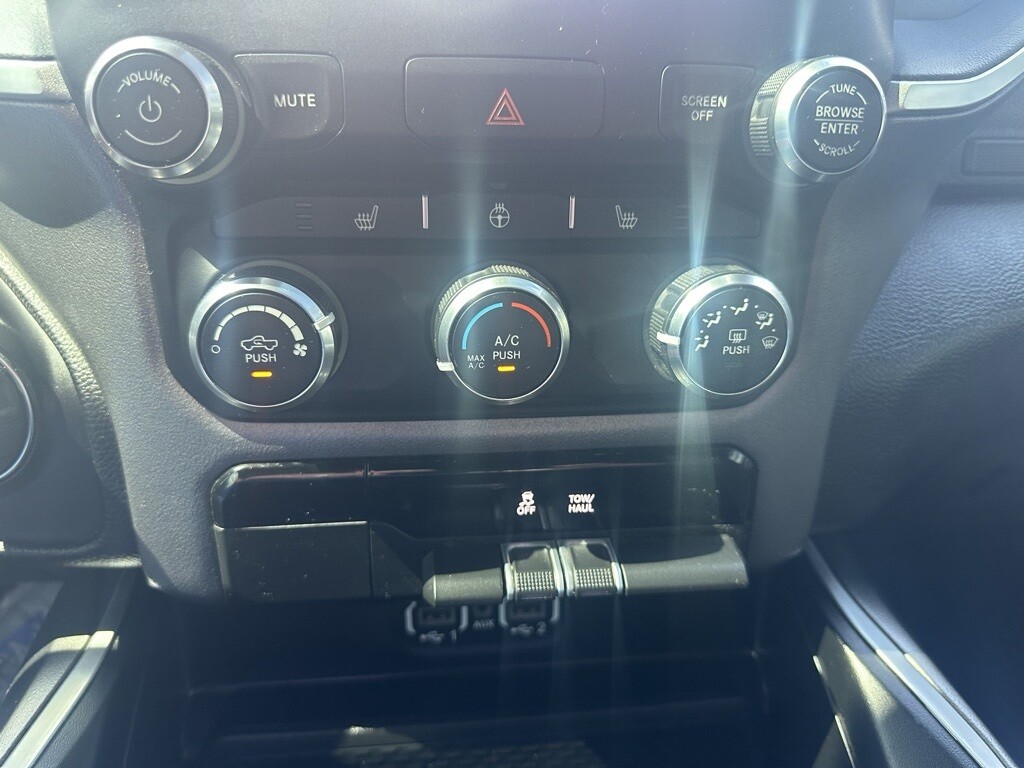 -One Owner CarFax-, Clean CarFax, 2nd Row In Floor Storage Bins, 3 Rear Seat Head Restraints, 4 Way Front Headrests, 4-Wheel Disc Brakes, 48V Belt Starter Generator, 4G LTE Wi-Fi Hot Spot, 6 Speakers, 8.4 Touchscreen Display, ABS brakes, Accent Color Door Handles, Accent Color Premium Power Mirrors, Air Conditioning, Alloy wheels, AM/FM radio, Anti-Spin Differential Rear Axle, Apple CarPlay, Auto-Dimming Exterior Driver Mirror, Auto-Dimming Rear-View Mirror, Big Horn Badge, Big Horn Level 1 Equipment Group, Black Exterior Mirrors, Black Exterior Truck Badging, Black Headlamp Bezels, Black Interior Accents, Black Painted Exterior Mirrors Caps, Black Premium Power Mirrors, Bluetooth Handsfree Phone & Audio, Body Color Door Handles, Body Color Exterior Mirrors, Body Color Front Bumper, Body Color Premium Power Mirrors, Body Color Rear Bumper w/Step Pads, Brake assist, Bucket Seats, Bumpers: chrome, Center Console Parts Module, Class IV Receiver Hitch, Cloth Bench Seat, Compass, Connectivity - US/Canada, Convex Wide-Angle Exterior Mirror Insert, Delay-off headlights, Deluxe Cloth Bucket Seats, Driver door bin, Dual Exhaust w/Black Tips, Electric Shift-On-Demand Transfer Case, Electronic Stability Control, Exterior Mirrors Courtesy Lamps, Exterior Mirrors w/Heating Element, Exterior Mirrors w/Supplemental Signals, For Details, Visit , For More Info, Call855-202-6259, Front Center Armrest w/Storage, Front Fog Lamps, Front reading lights, Front Seat Back Map Pockets, Full Length Floor Console, Fully automatic headlights, Global Telematics Box Module (TBM), Glove Box Lamp, Google Android Auto, GPS Antenna Input, Heated door mirrors, Heated Front Seats, Heated Steering Wheel, Illuminated entry, Integrated Center Stack Radio, Integrated Voice Command w/Bluetooth, Leather steering wheel, Low tire pressure warning, Manual Adjust 4-Way Front Passenger Seat, Outside temperature display, Overhead console, Panic alarm, ParkView Rear Back-Up Camera, Passenger door bin, Passenger Sun Visor w/Illuminated Mirror, Passenger vanity mirror, Power 2-Way Driver Lumbar Adjust, Power 8-Way Driver Seat, Power door mirrors, Power steering, Power windows, Power-Folding Mirrors, Quick Order Package 23Z Big Horn, Radio data system, Radio: Uconnect 5 W w/8.4 Display, RAM Grille Badge - Black, RAM Grille Badge - Chrome, Rear 60/40 Folding Seat, Rear Center Armrest, Rear Dome w/On/Off Switch Lamp, Rear Power Sliding Window, Rear seat center armrest, Rear step bumper, Rear Window Defroster, Remote keyless entry, SiriusXM Satellite Radio, Speed control, Split folding rear seat, Sport Appearance Package, Sport Decal, Steering wheel mounted audio controls, Tachometer, Telescoping steering wheel, Tilt steering wheel, Traction control, Trip computer, USB Host Flip, Variably intermittent wipers, Voltmeter.