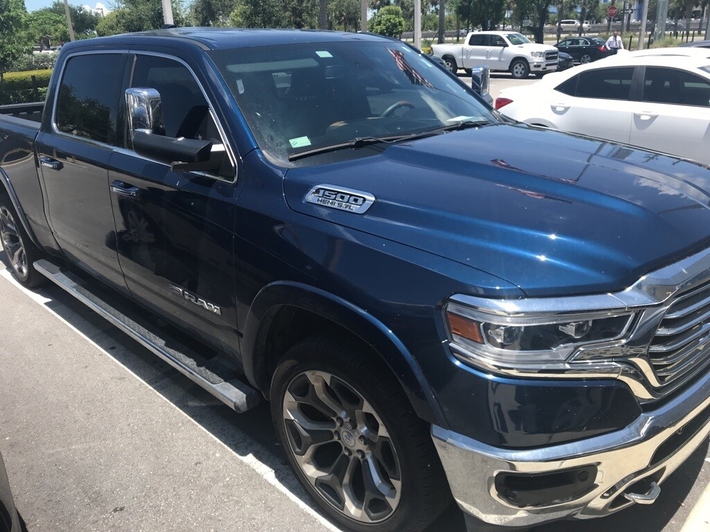 Priced below KBB Fair Purchase Price! CARFAX One-Owner. Clean CARFAX. One Owner, Clean CarFax, Leather Seats, 1500 Laramie Longhorn, HEMI 5.7L V8 Multi Displacement VVT, 8-Speed Automatic, Patriot Blue Pearlcoat, black Leather, Auto-dimming door mirrors, Navigation System, Power Chrome Trailer Tow Mirrors, Quick Order Package 27K Longhorn, Trailer Brake Control, Trailer Tow Group, Trailer Tow Mirrors. Patriot Blue Pearlcoat 2019 Ram 1500 Laramie Longhorn RWD 8-Speed Automatic HEMI 5.7L V8 Multi Displacement VVT