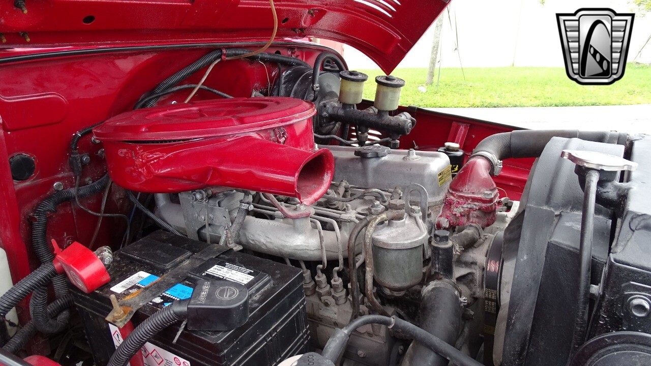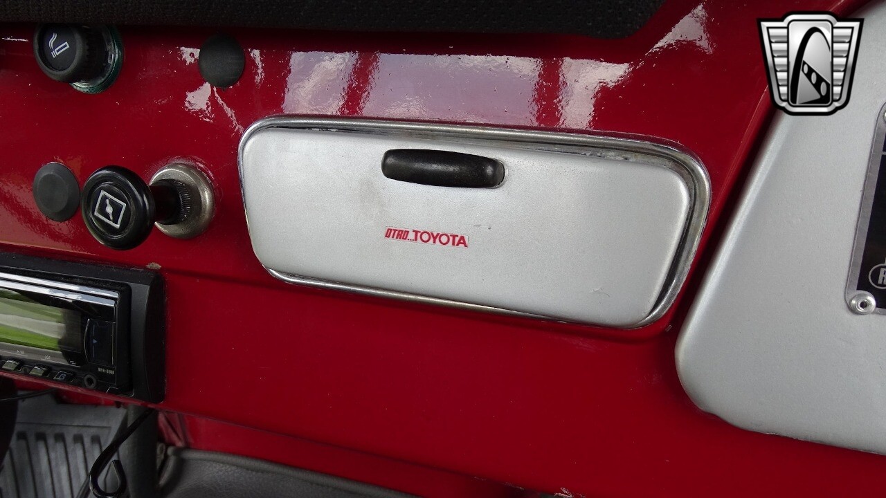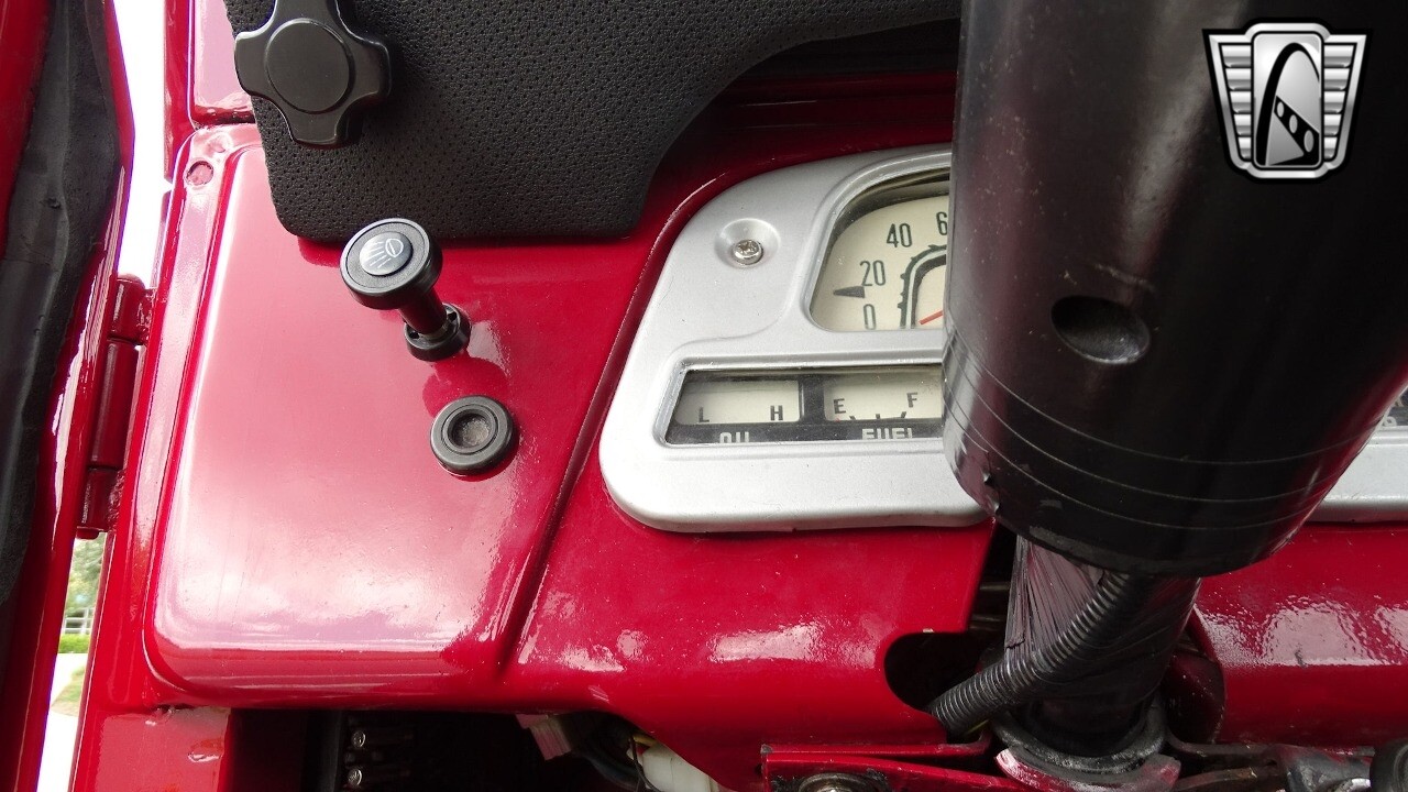 In summary, this 1977 Toyota Land Cruiser FJ43 is a beautiful blend of classic design and practical features. Its striking red exterior, comfortable gray vinyl interior, and robust 4.2L I6 engine make it a standout choice for those who appreciate vintage vehicles. With its array of features including an AM/FM radio, power brakes, power steering, radial tires, and seatbelts, this vehicle offers a driving experience that is both enjoyable and secure..