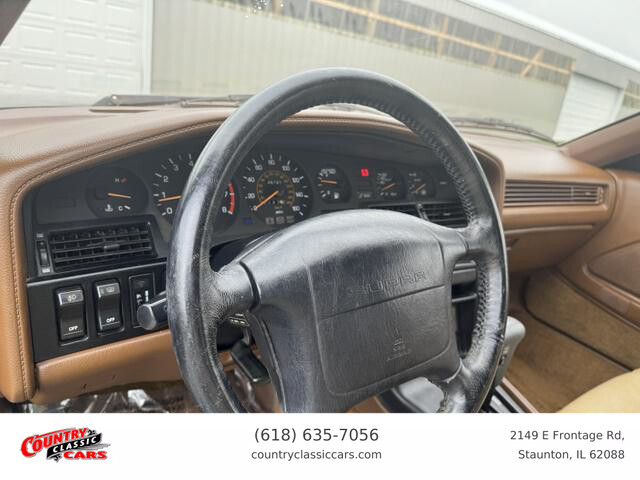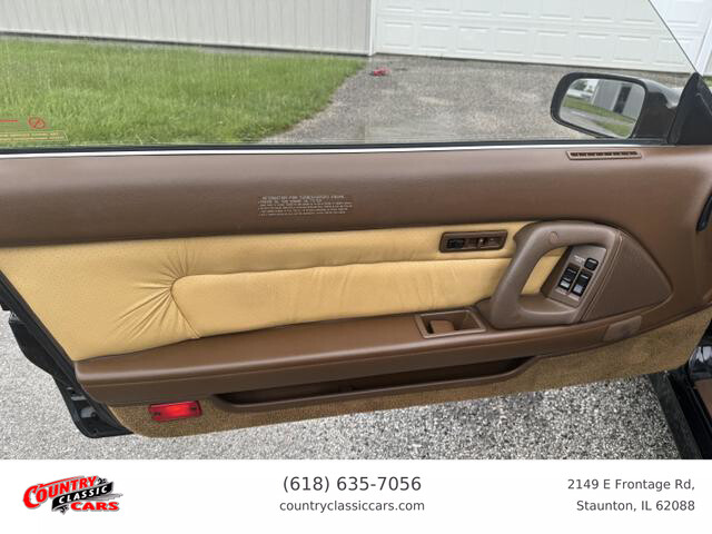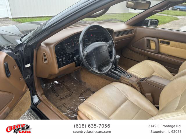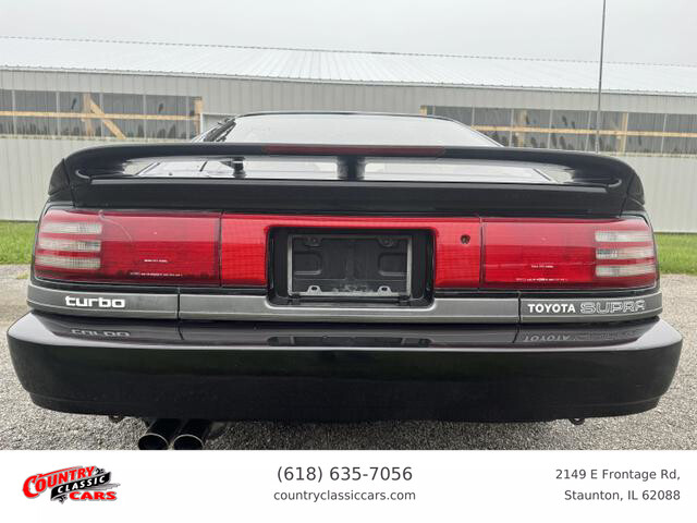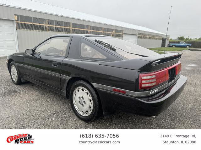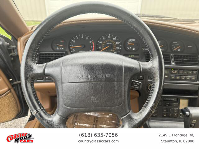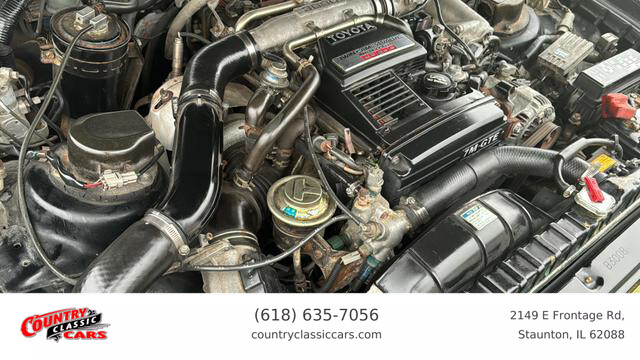 Available now on consignment is this 1990 Toyota Supra Turbo finished in all black over a two-tone brown and tan leather interior with the most sought after targa top roof. This 1990 Toyota Supra Turbo has a 3.0-liter, 7M-GTE turbocharged inline-six engine with 234 horsepower and 254 lb-ft of torque. This Supra has power windows, AC, cruise, automatic transmission, and leather. It is an original car with zero modifications and adult owned by the same individual since 1992. Comes with a clean Carfax report showing only two original owners with 146,165 original miles. It is very difficult to find turbo Supras in this type of original condition. This car runs and drives great and is an instant collector vehicle.