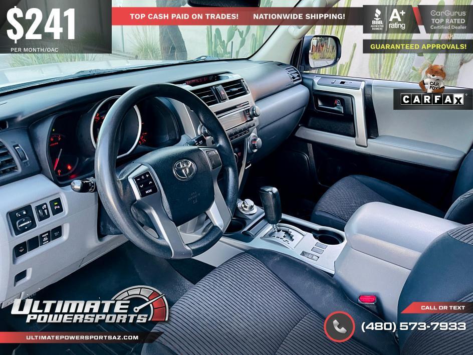 Welcome to Ultimate Powersports! We strive to make your pre-owned car buying experience enjoyable and hassle free! Our no pressure sales team is here to put you into a car that fits your needs. Free CARFAX report provided on every vehicle! We are proud to present this beautiful 2013 Toyota 4Runner SR5 with just 202K miles. This vehicle is in great condition inside-out| highly optioned| and extra clean! NO known mechanical issues. Very well maintained and serviced regularly! It runs and drives great! Don't miss out on this beautiful example and schedule a test drive today. Please call or text for additional details. We have competitive financing options available! We pay top dollar for trade-ins and Extended Warranty options available. Visit our online showroom 24/7 at  ... Read the full description on our Website at: