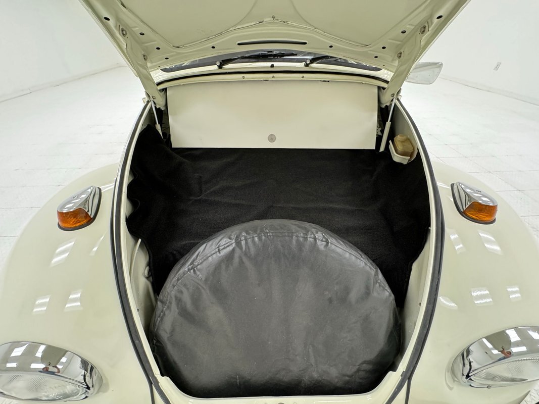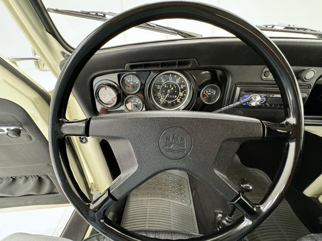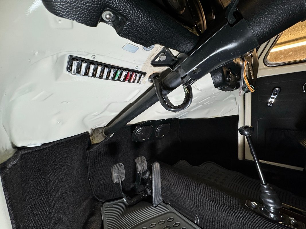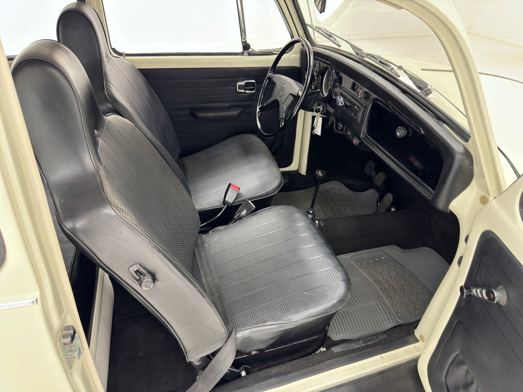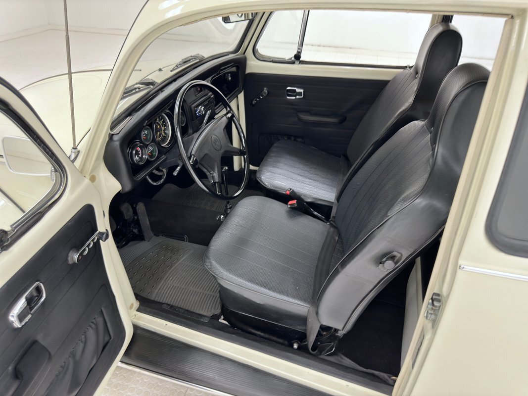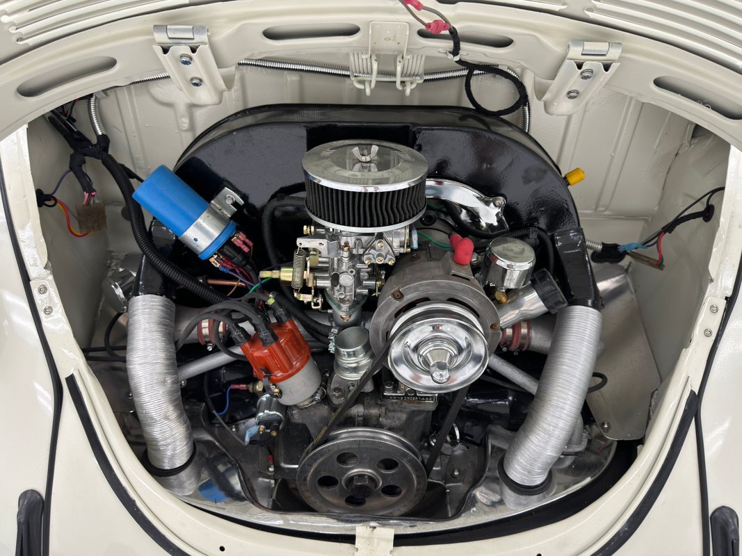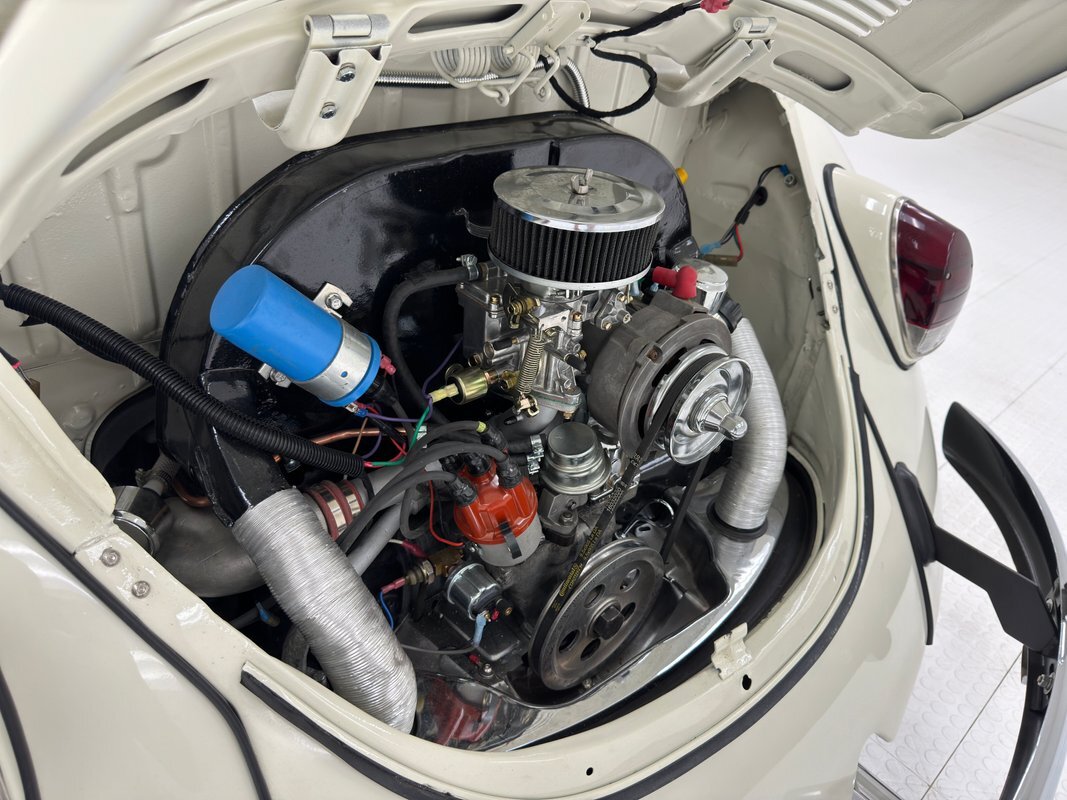 Under the rear hatch we find the 1600cc flat 4 cylinder engine in wonderful visual shape with plenty of chrome bits and polished metals. It's fueled by a 1-barrel carburetor and rated at 46 horsepower and movement is rowed through a 4-speed manual transmission that keeps power in the rear with 3.88 gears. Drum brakes occupy all four corners. Replaced items include the carburetor, clutch kit, oil pump, coil, distributor, cap and rotor, (all Pertronix), throttle cable, clutch cable, master and wheel cylinders, brake lines and hoses, and battery.