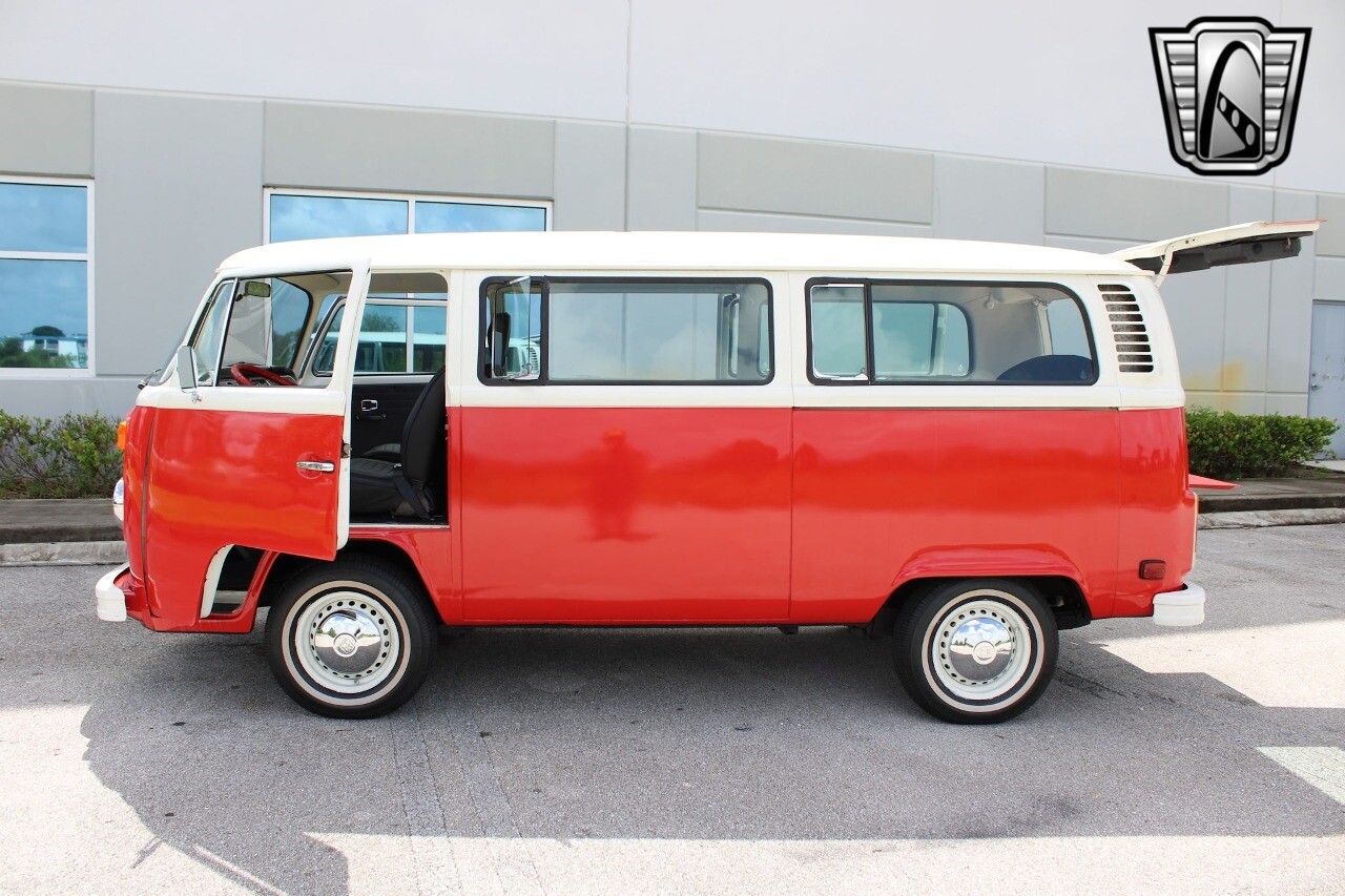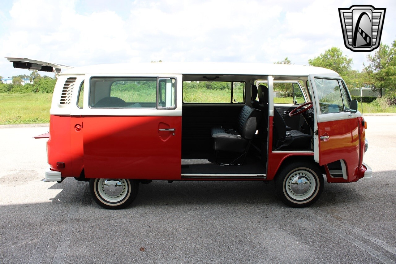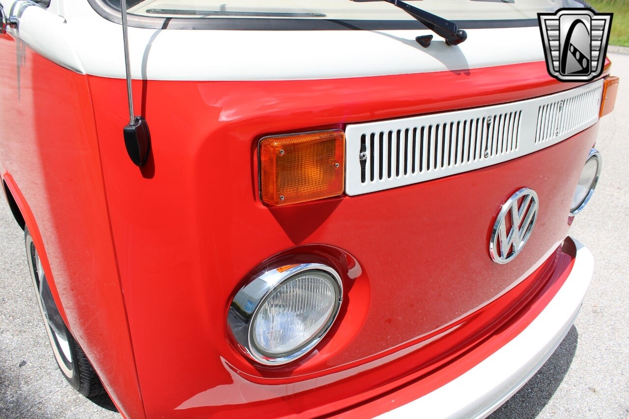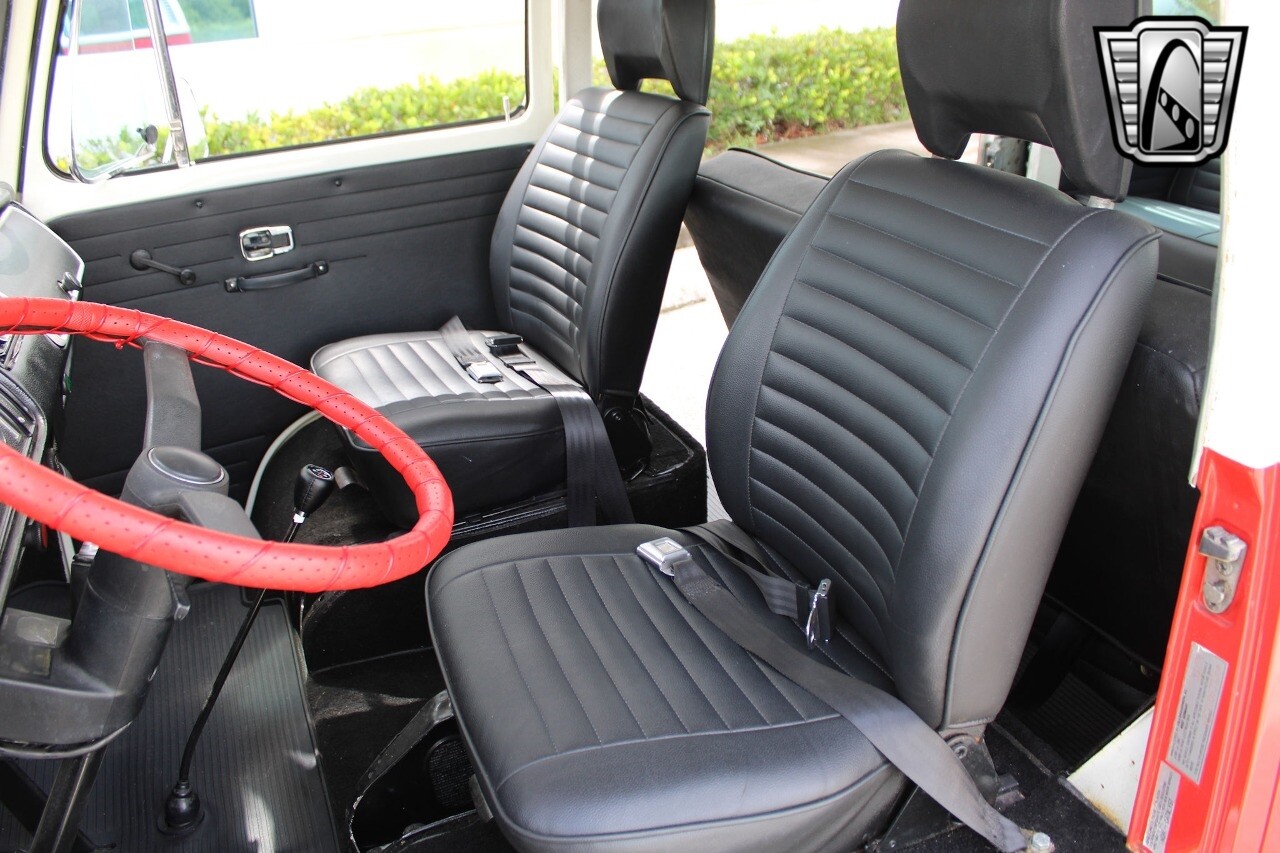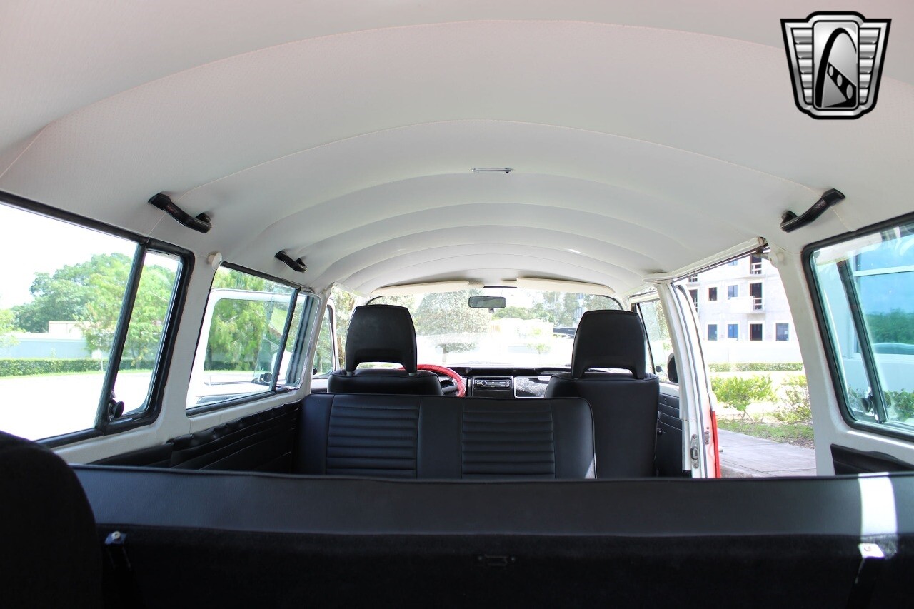 Introducing a classic icon of automotive history: the 1977 Volkswagen Bus. This vintage vehicle boasts a striking red exterior that captures the essence of its era, making it a head-turner wherever it goes. Step inside to find a sleek black leather interior that offers a timeless and sophisticated look, complementing the vibrant exterior.