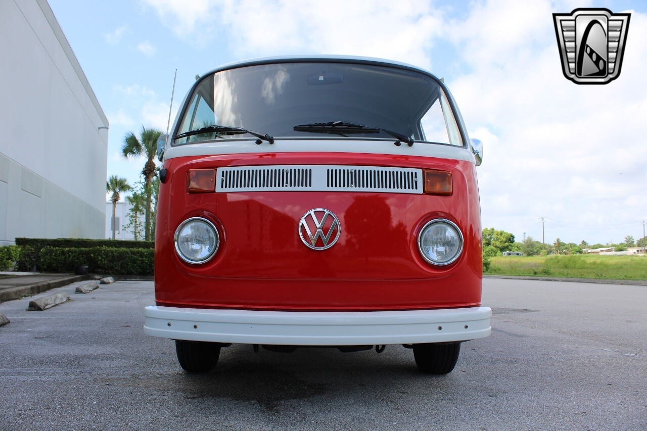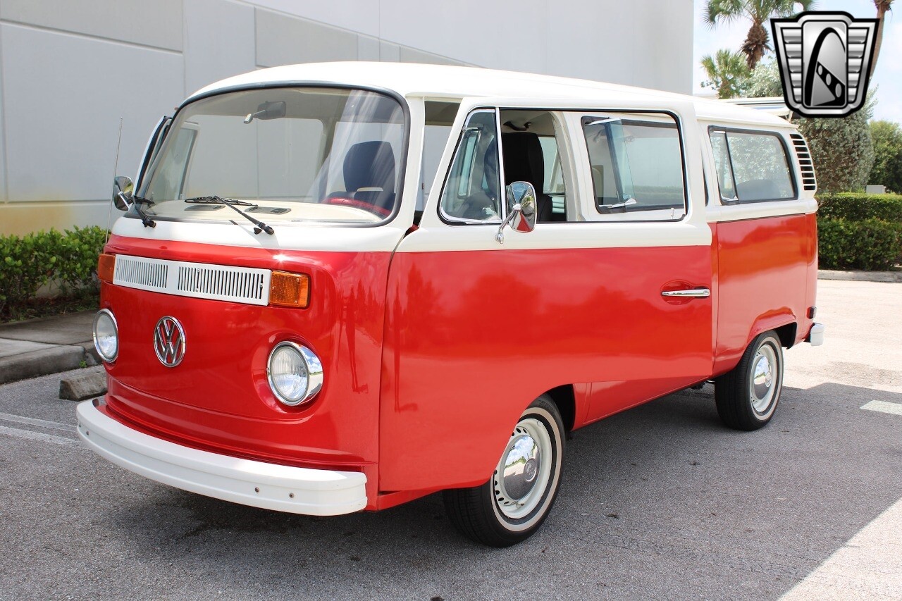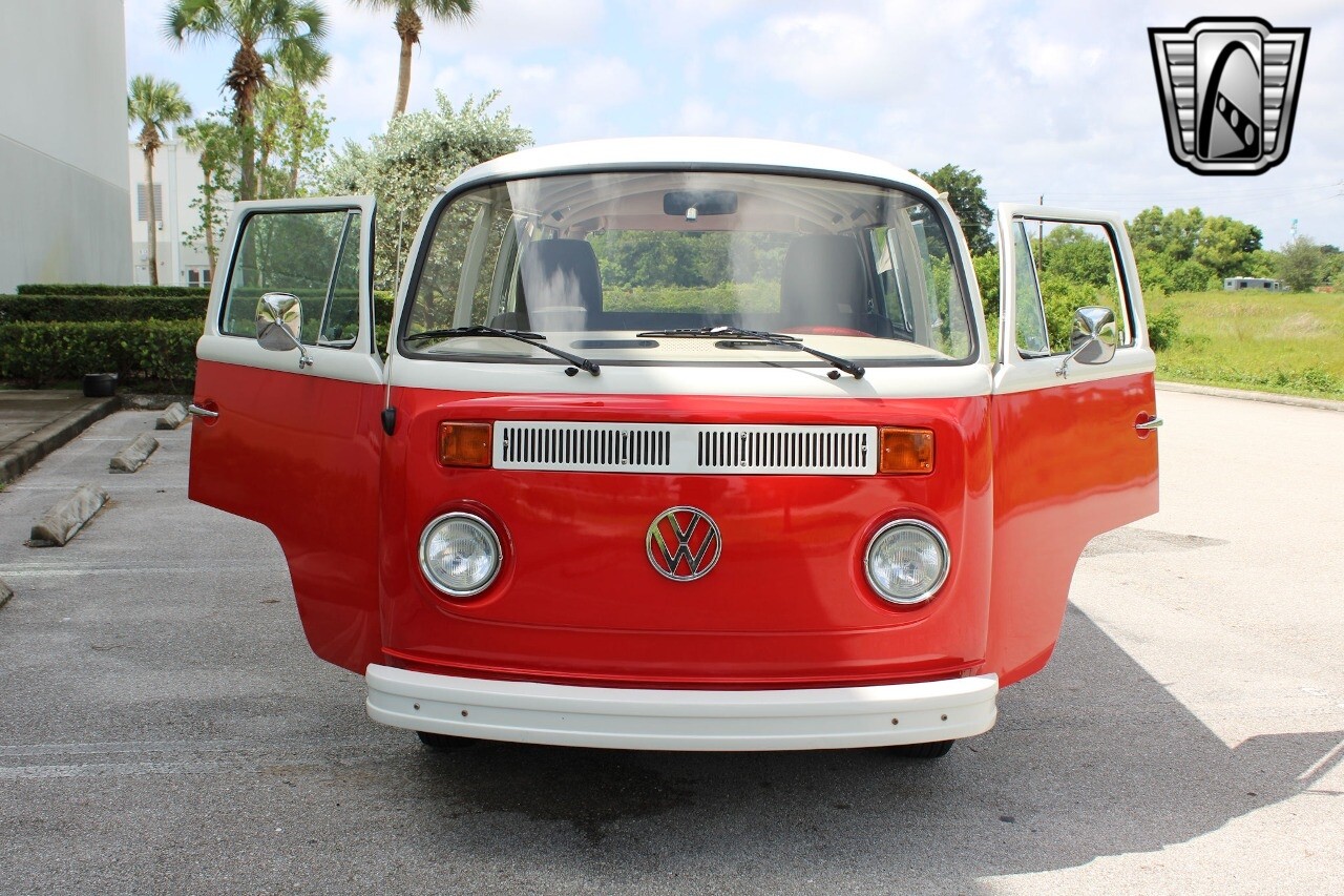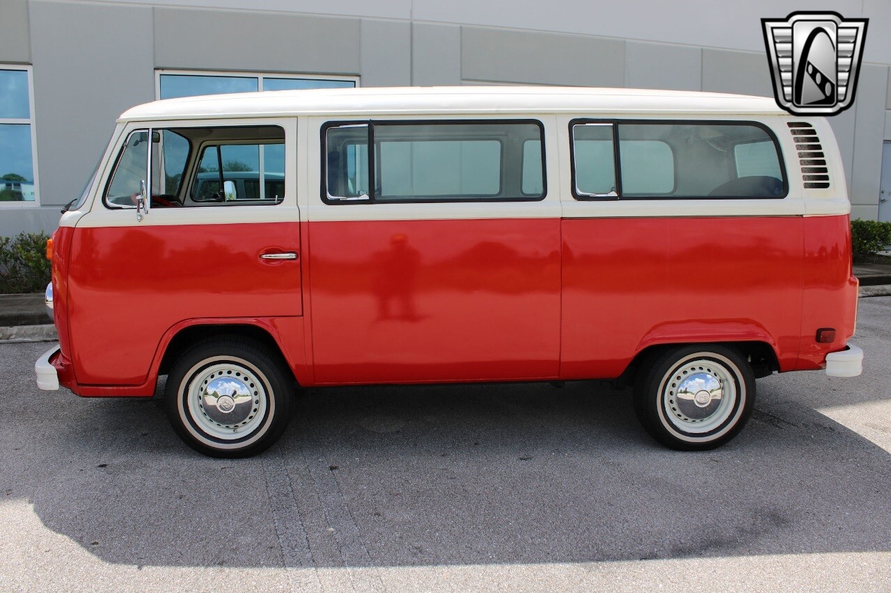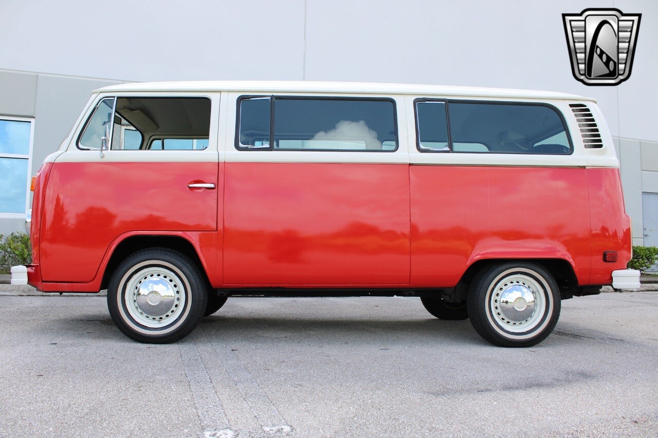 Introducing a classic icon of automotive history: the 1977 Volkswagen Bus. This vintage vehicle boasts a striking red exterior that captures the essence of its era, making it a head-turner wherever it goes. Step inside to find a sleek black leather interior that offers a timeless and sophisticated look, complementing the vibrant exterior.