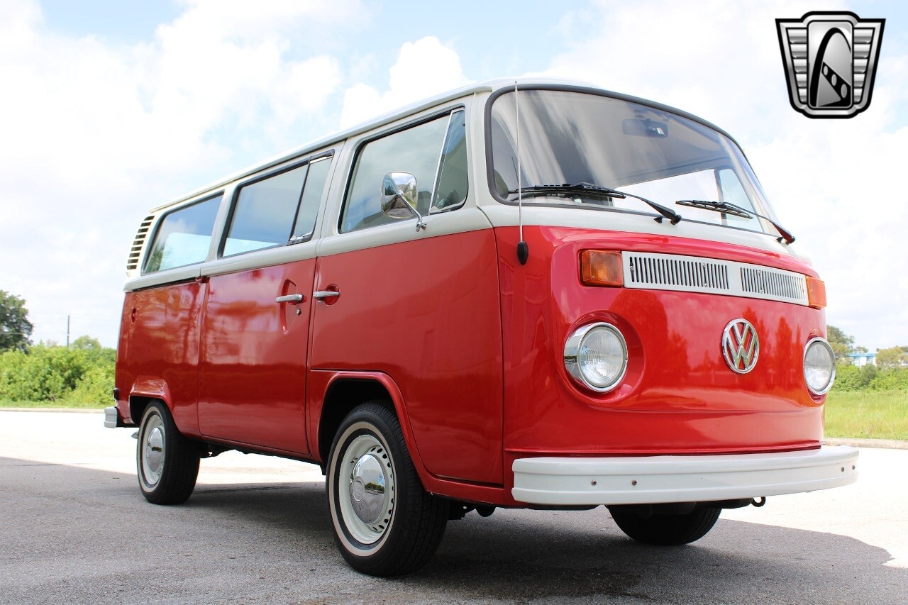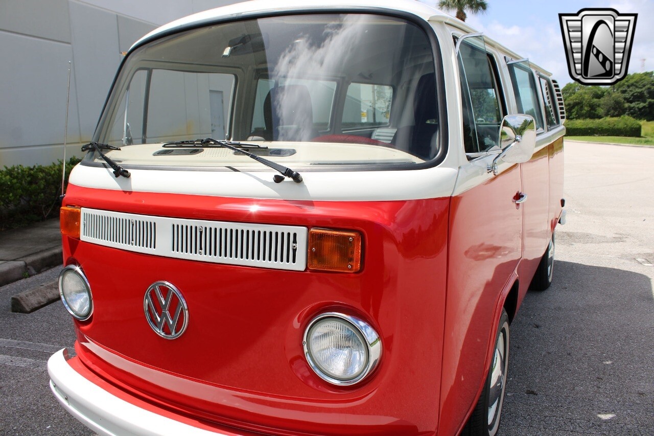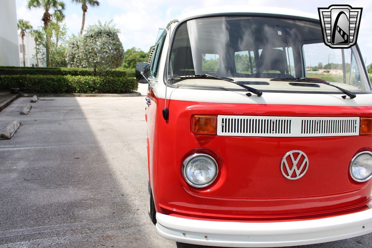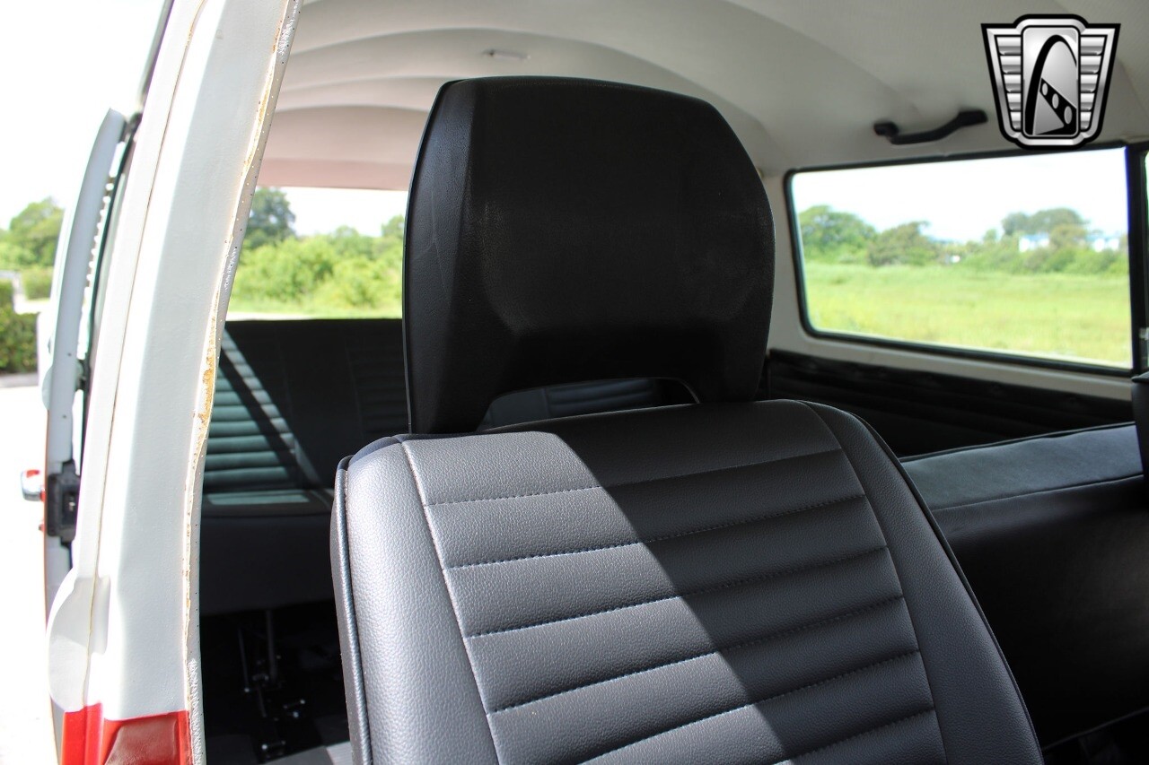 Introducing a classic icon of automotive history: the 1977 Volkswagen Bus. This vintage vehicle boasts a striking red exterior that captures the essence of its era, making it a head-turner wherever it goes. Step inside to find a sleek black leather interior that offers a timeless and sophisticated look, complementing the vibrant exterior.