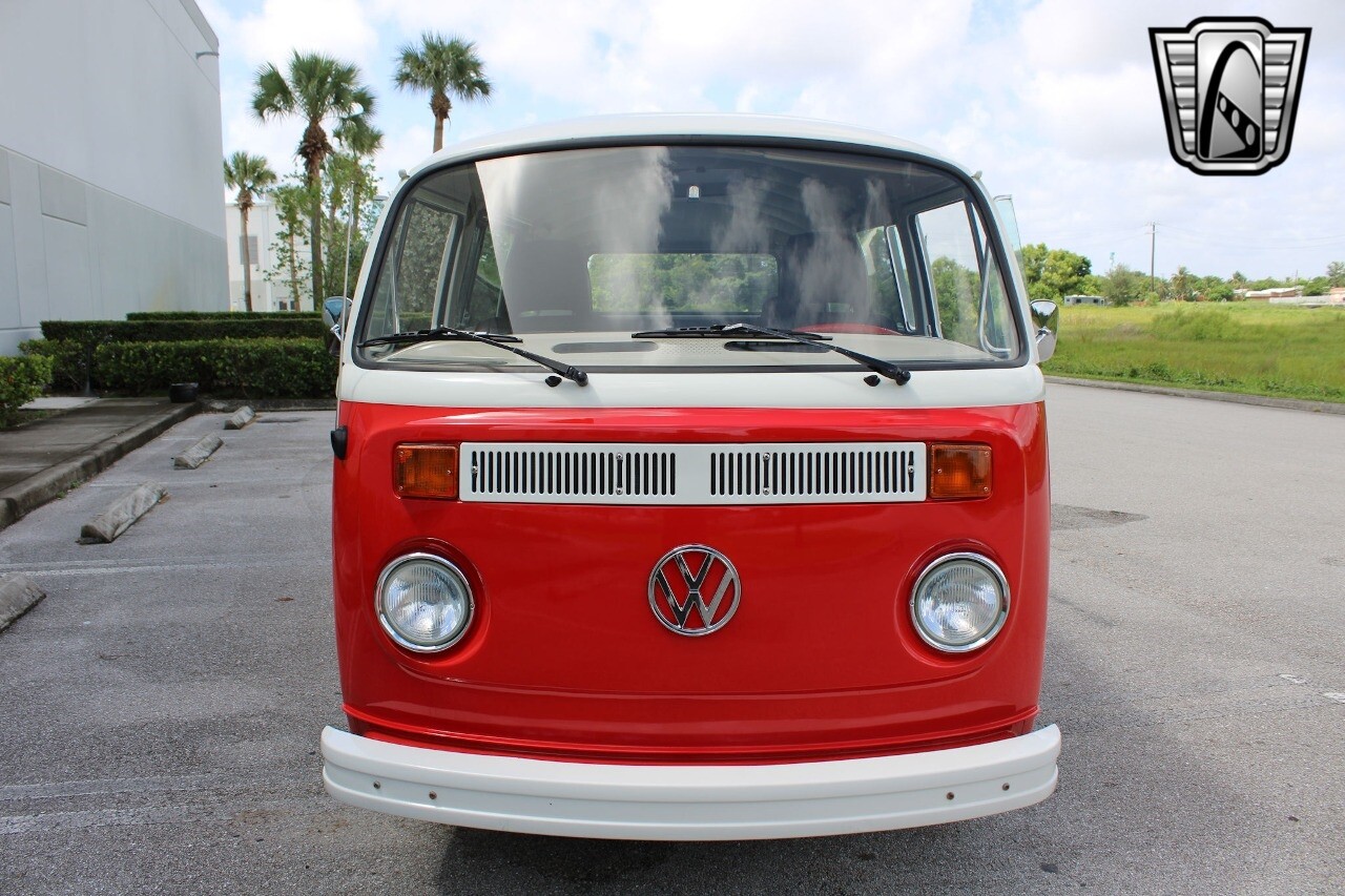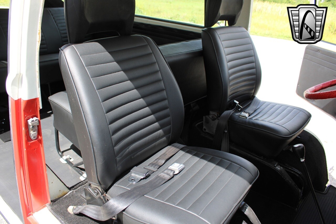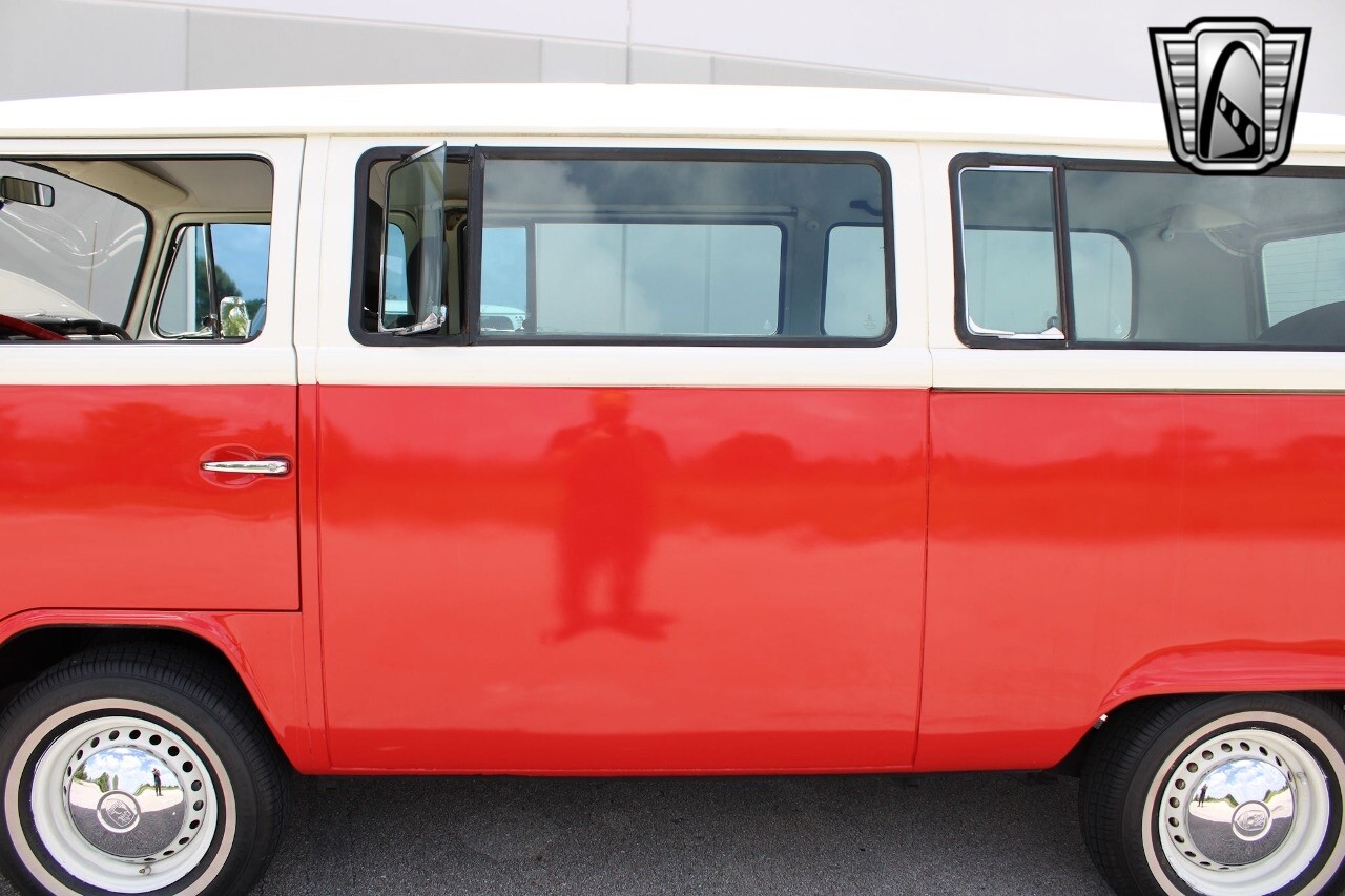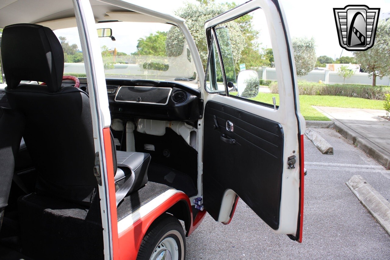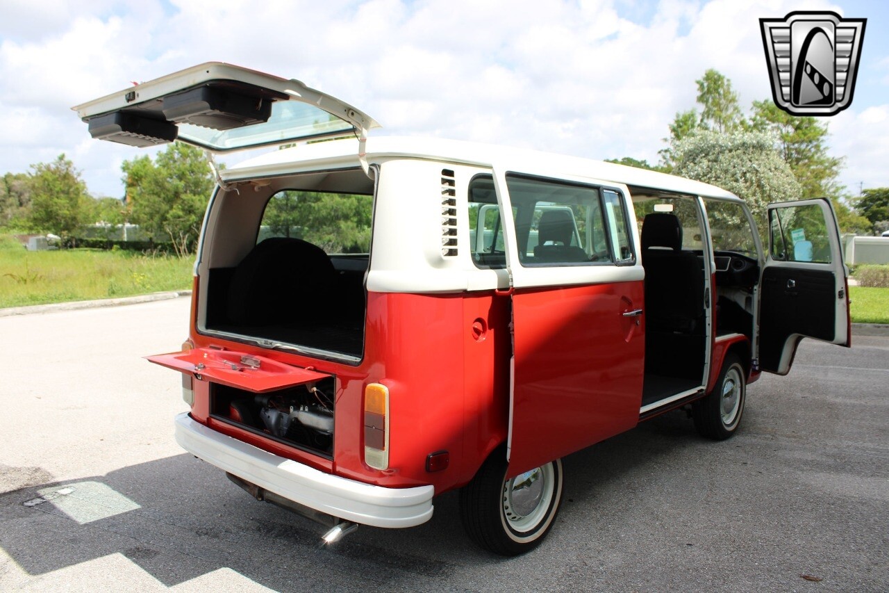 Introducing a classic icon of automotive history: the 1977 Volkswagen Bus. This vintage vehicle boasts a striking red exterior that captures the essence of its era, making it a head-turner wherever it goes. Step inside to find a sleek black leather interior that offers a timeless and sophisticated look, complementing the vibrant exterior.