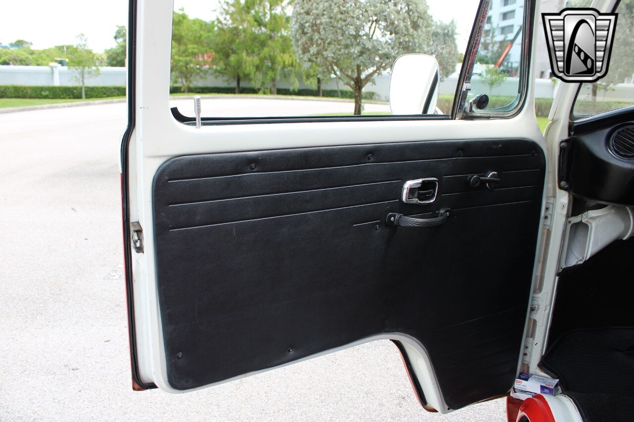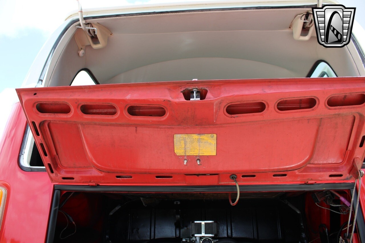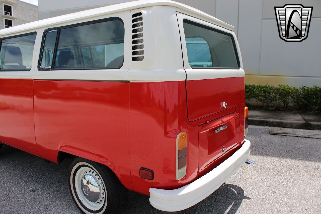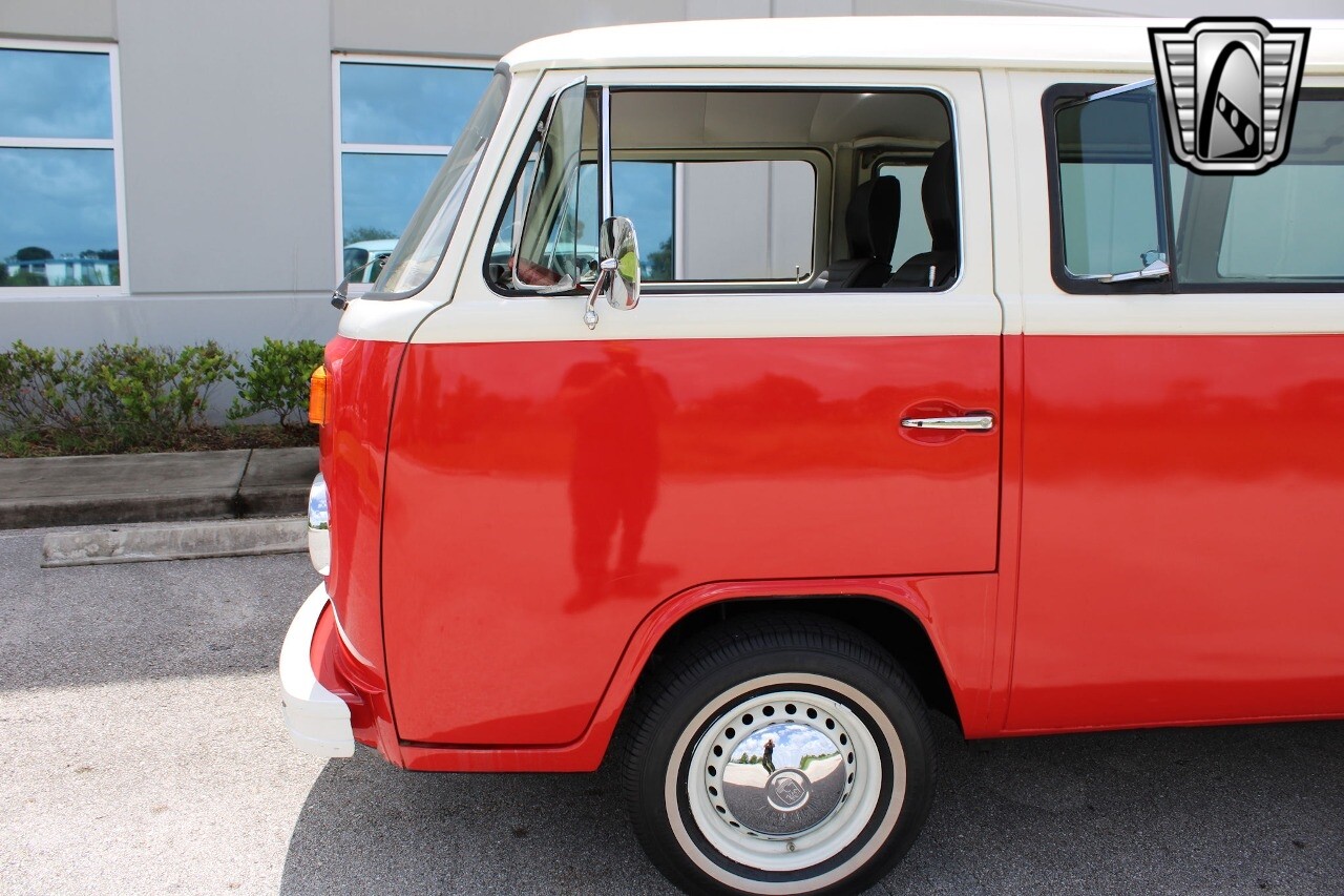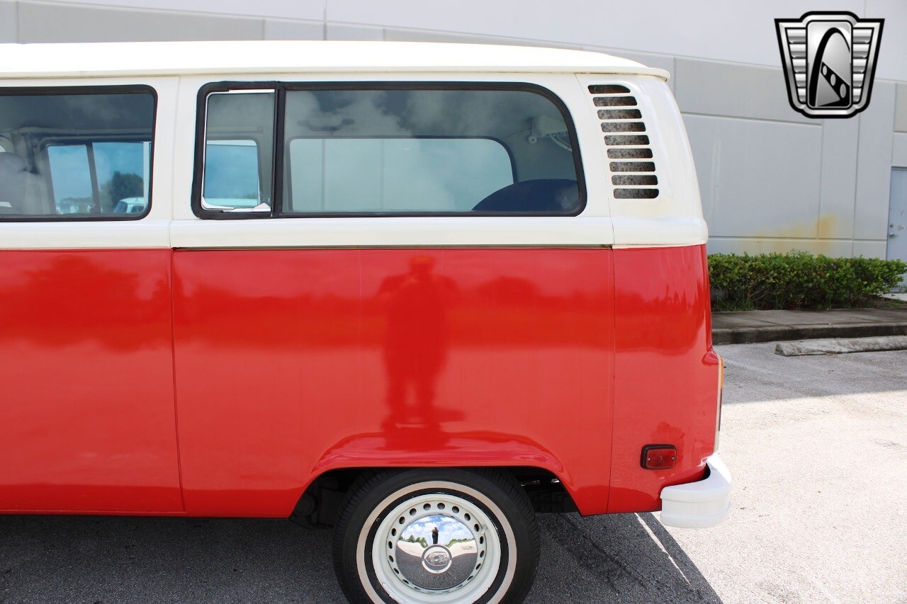 Introducing a classic icon of automotive history: the 1977 Volkswagen Bus. This vintage vehicle boasts a striking red exterior that captures the essence of its era, making it a head-turner wherever it goes. Step inside to find a sleek black leather interior that offers a timeless and sophisticated look, complementing the vibrant exterior.