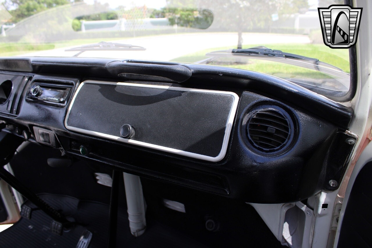 The 1977 Volkswagen Bus comes equipped with an AM/FM radio and a CD player, providing you with a variety of entertainment options for your journeys. The inclusion of hub caps and white walls adds a touch of nostalgia and style, enhancing the overall aesthetic appeal of this vintage ride.