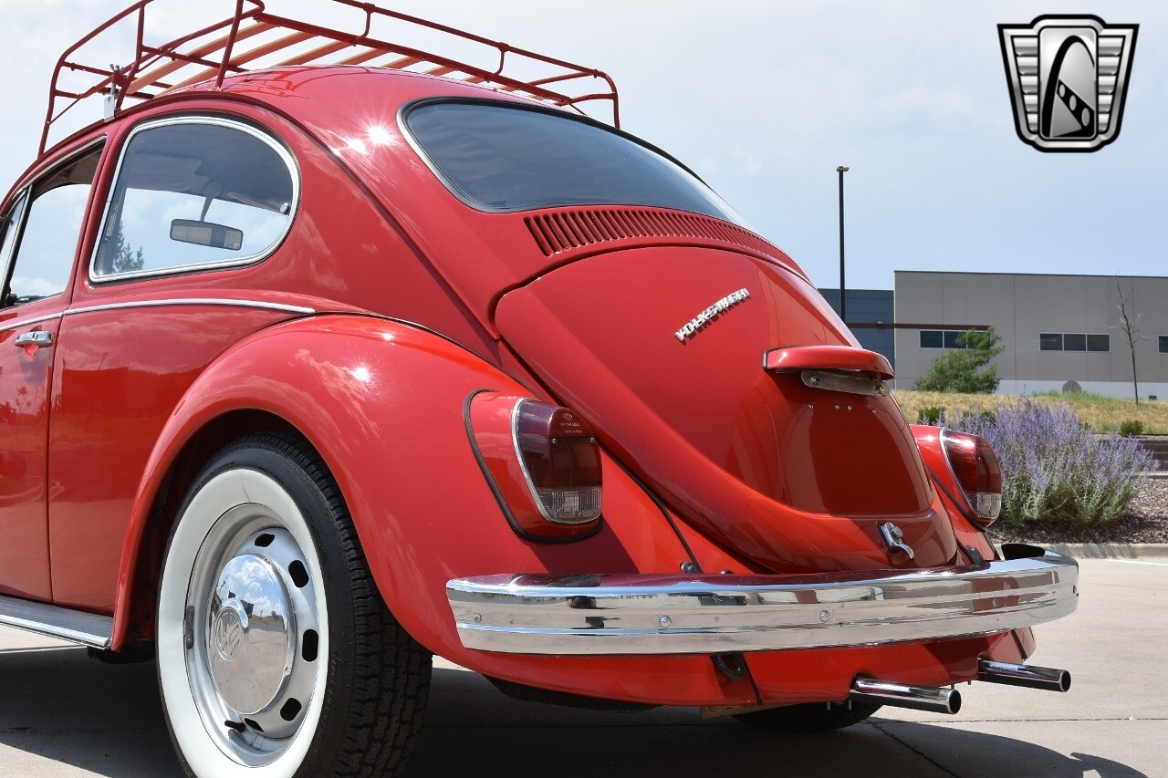 Gateway Classic Cars of Denver presents this 1968 Volkswagen Beetle, a true icon of automotive history. This particular model boasts a striking red exterior that captures the essence of the era, turning heads wherever it goes. The vibrant red paint is complemented by gleaming hub caps and wide white wall radial tires, adding a touch of vintage charm and ensuring a smooth, comfortable ride.