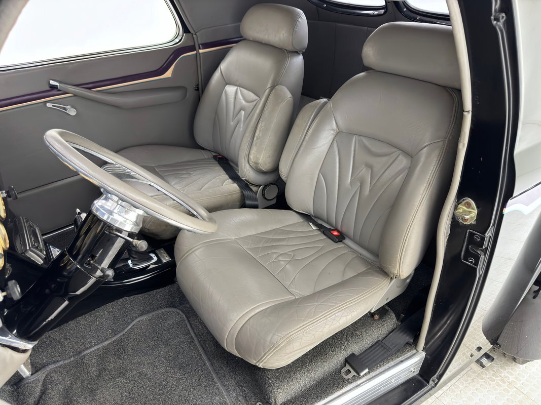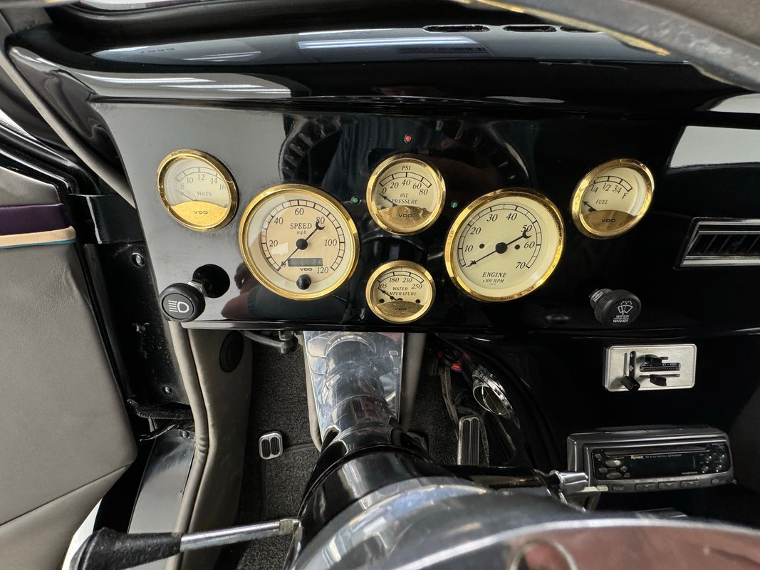 Fuel injection does its job by starting the engine on demand and the small block puts out some sweet notes to the sides. The staggered tires provide straight tracking going forward and turn-ins can be sharp as the big boys in back make the circle. Braking is adequate and acceleration is respectable for this lightweight street rod. Our horn does not blow and the air from the A/C is cool but not cold. Beyond that, all functions operate as intended. While Classic Auto Mall represents that these functions were working at the time of our test drive, we cannot guarantee these functions will be working at the time of your purchase.