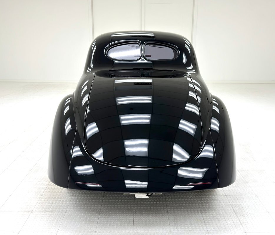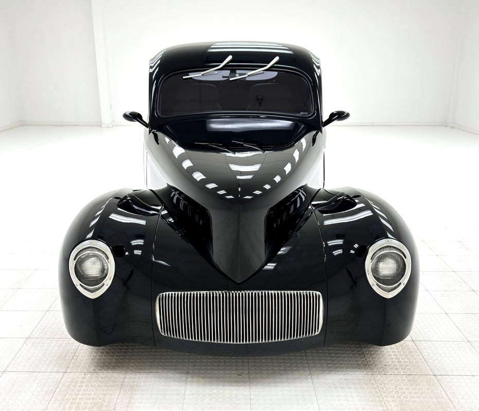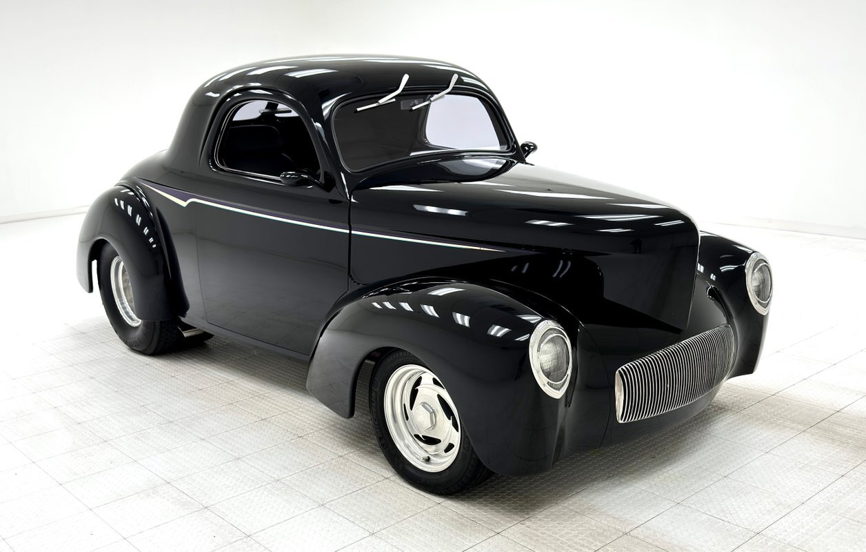 This one caught my eye in the loading zone of our facility. I mean, I look at every car coming in, but this one stood out. It has incredible presence and represents a stunning build. The underside presents opportunities for further refinement if that's the route you take, but there's no harm in leaving it as is. This one proves that basic black, done right, is a great choice, and it looks fantastic on the unique Willys coupe body. So load up the truck and head to town, Morgantown, that is, and get you some of this black gold!