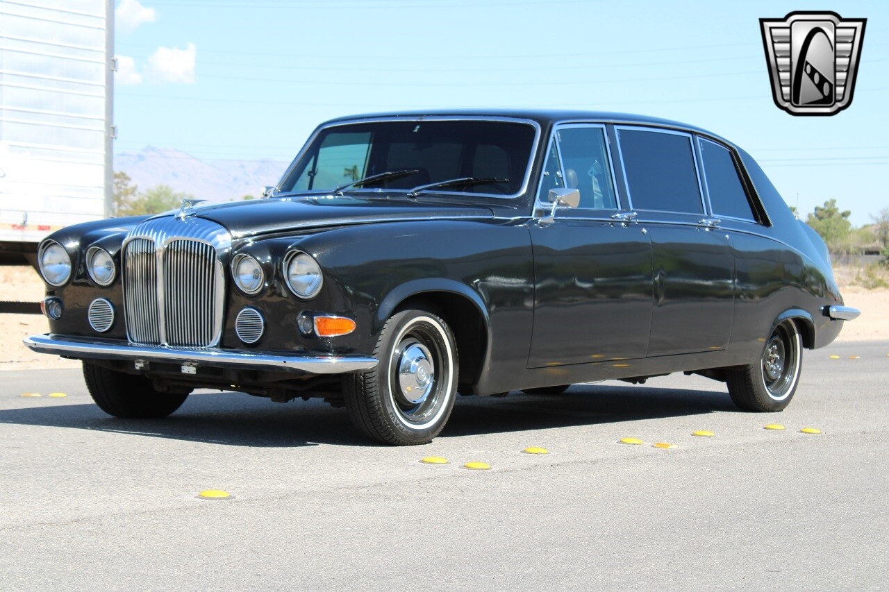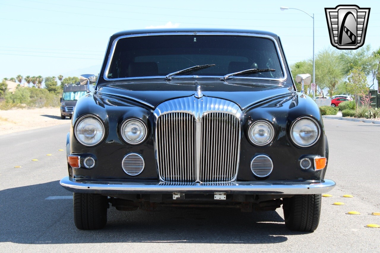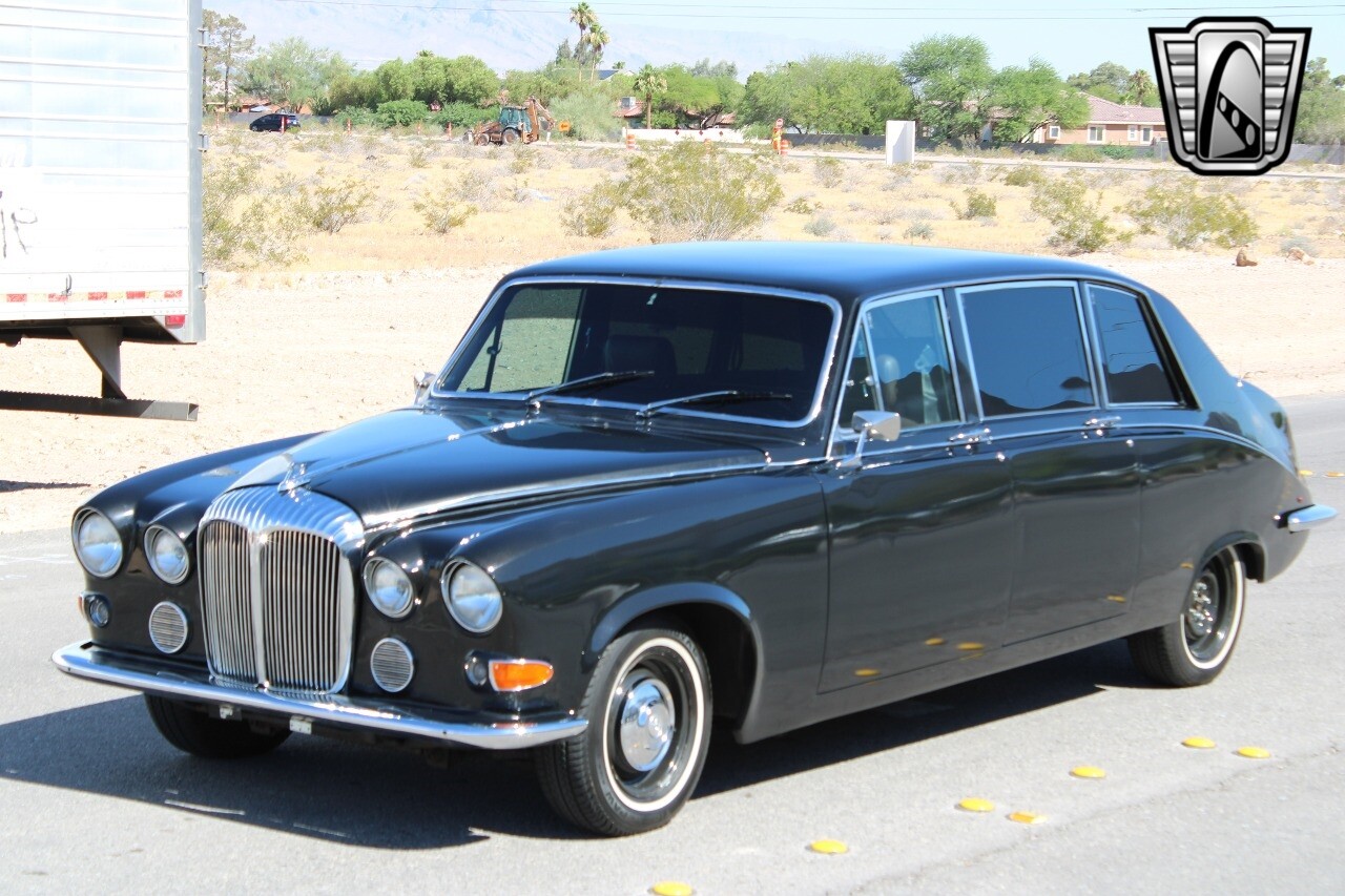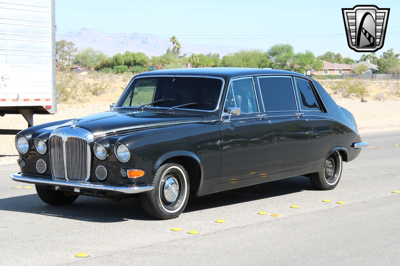 Gateway Classic Cars of Las Vegas presents this 1979 Daimler DS420, a classic embodiment of luxury and performance. This distinguished vehicle boasts a sleek black exterior that exudes timeless elegance, complemented by a sophisticated tan interior. Under the hood, it is powered by a robust 350ci V8 engine paired with an automatic transmission, ensuring a smooth and powerful driving experience.