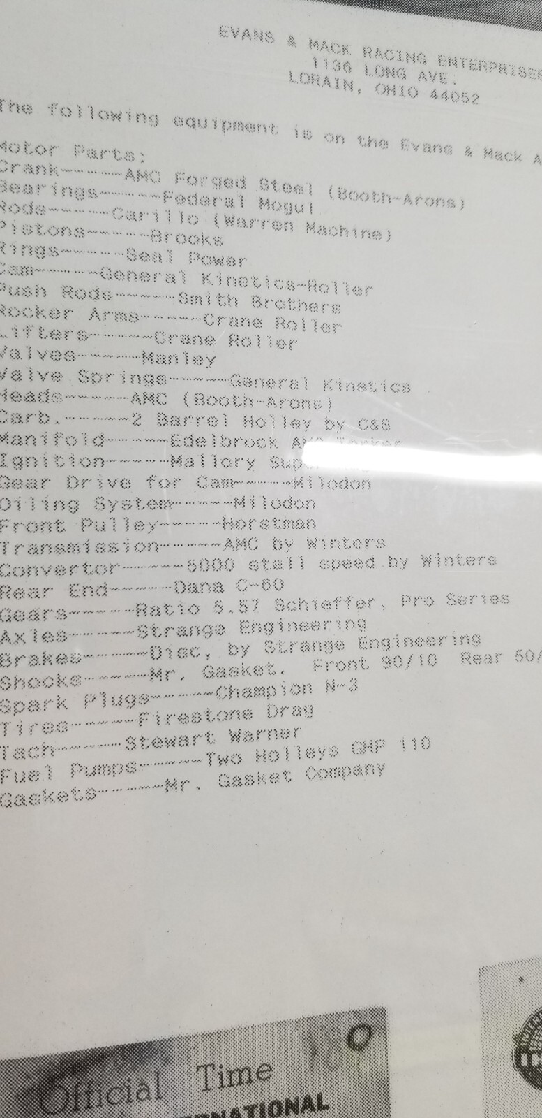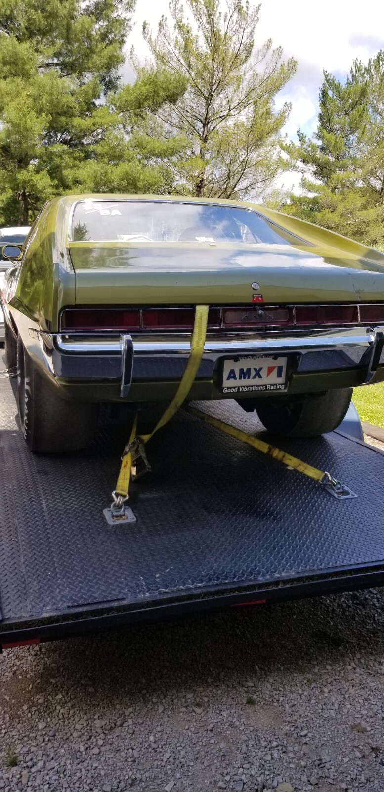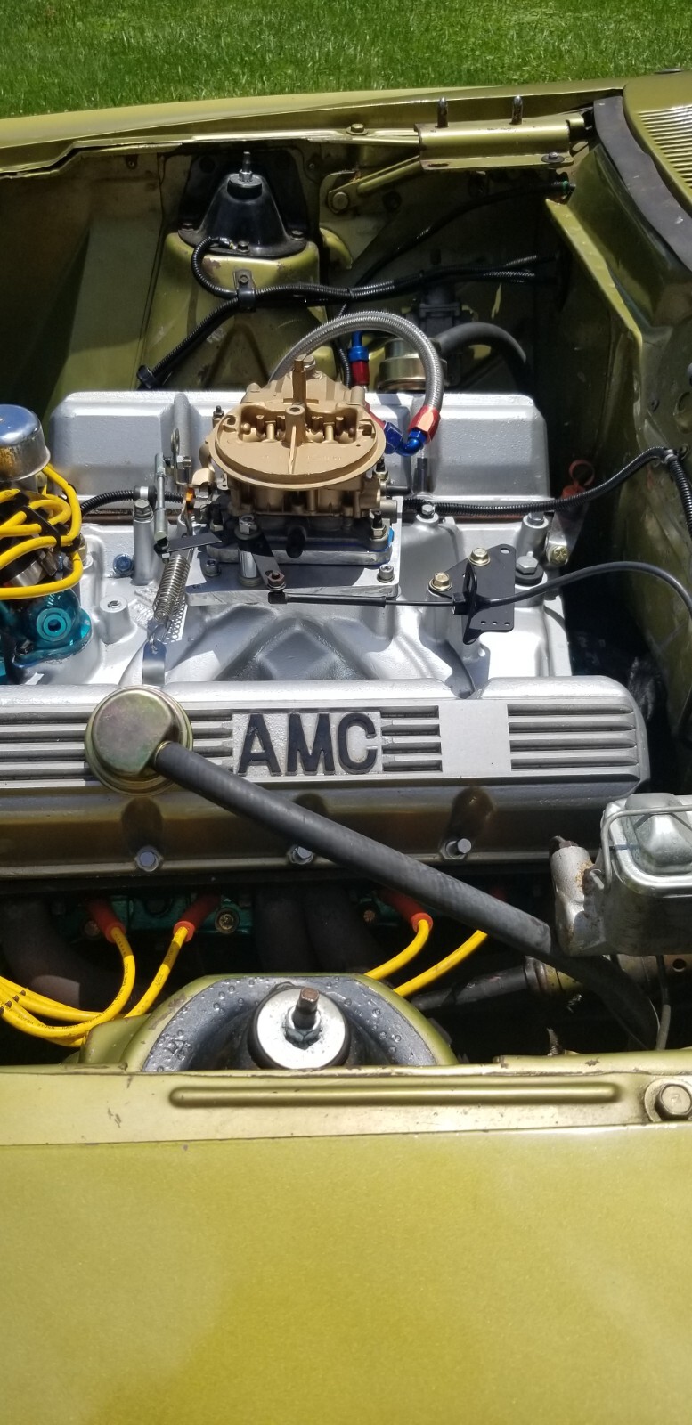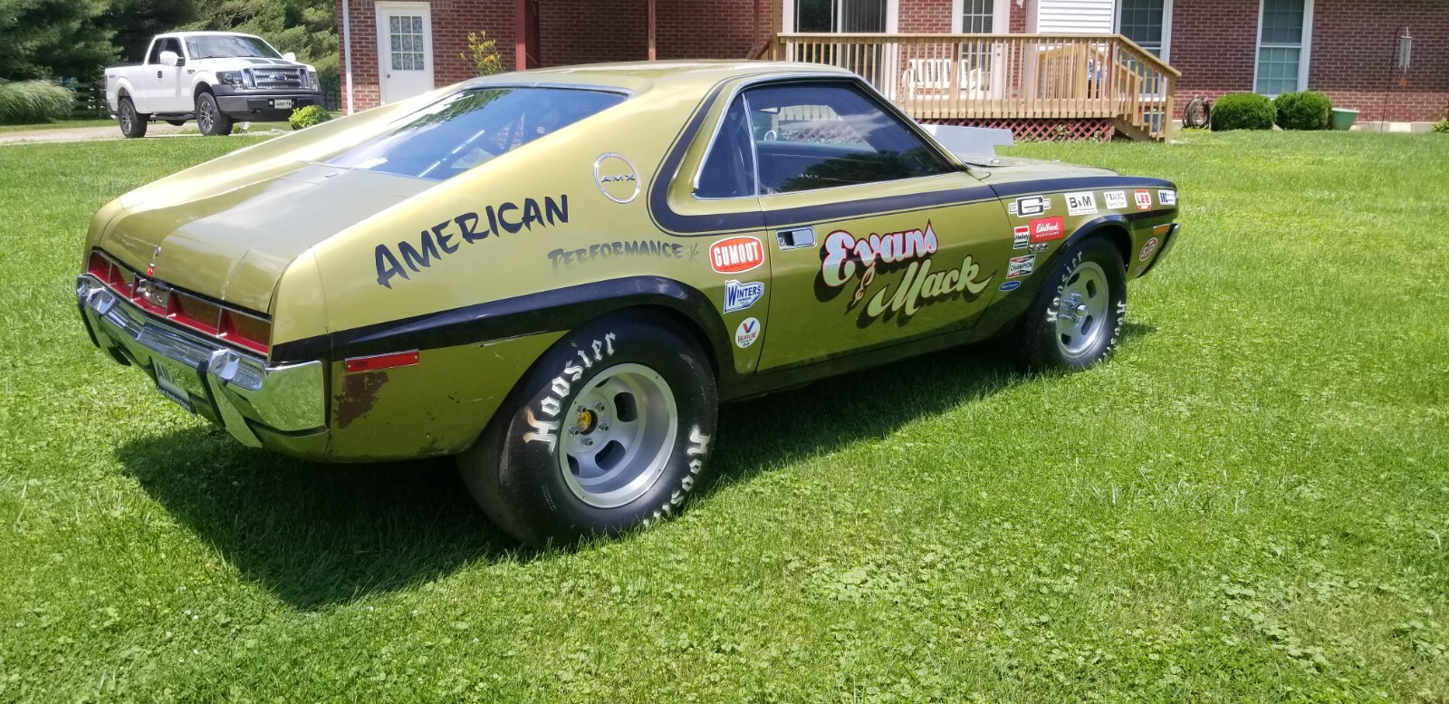 This car was raced in SuperStock 3BA in the 70s has original leather interior still has most of it's original paint has the original 390 that was built by Booth & Arons AMC pro stock team in the 70,s car ran 10.90s at 121mph in the 1/4 back in the 70's with the holley 500cfm 2bbl. Uses a 727 manual valve body with a Dana 60 in the rear with 5.57 gears. Amx was raced its entire life has alot of history. 8,485 miles on the the car mostly 1/4 mile at a time. Motor and transmission have been freshened up and upgraded brakes . Motor is 20 over 14 to 1 compression 2.12 intake 1.68 exhaust valves solid roller camshaft crane gold roller rockers and jomar stud girdle has 4 extra head bolts in each head. Roll cage last certified in 2001. Amx could be put back on the street all lights work and have clear title for the Amx. All original body panels except hood witch is a javelin hood . 1000 non refundable deposit cash within 7 days