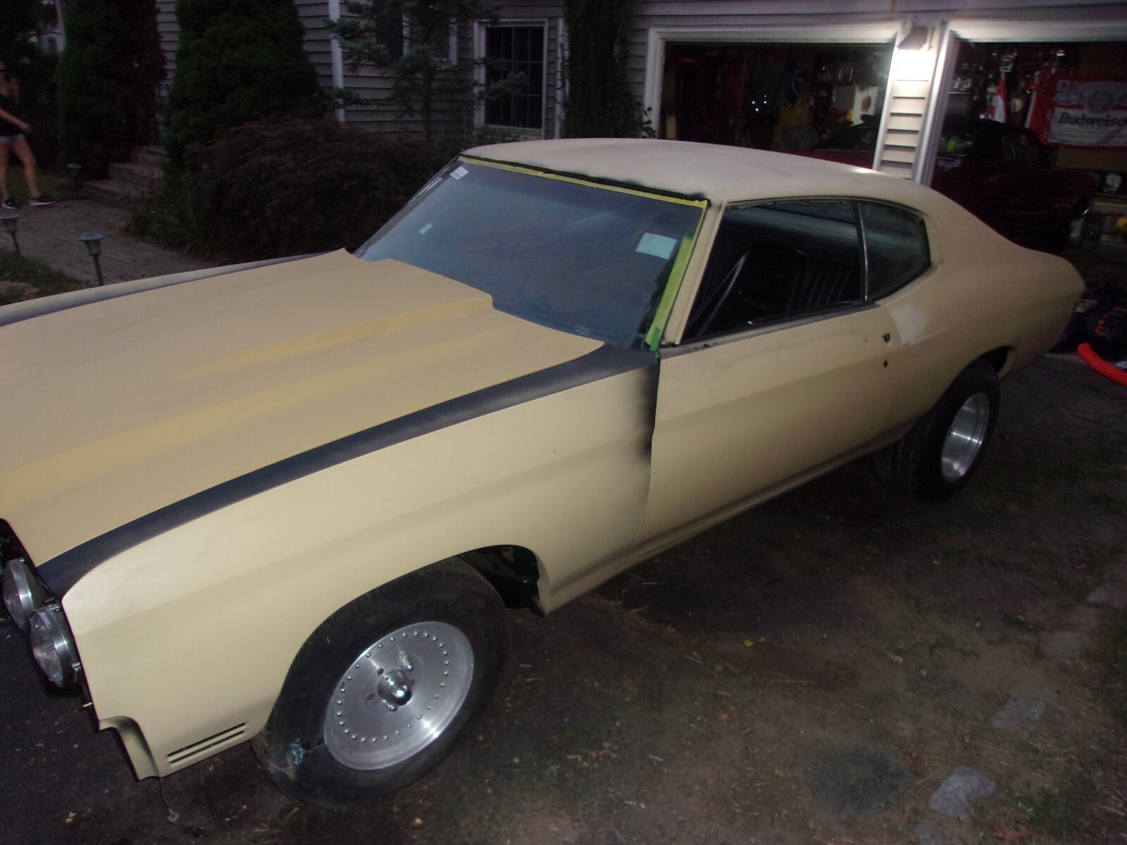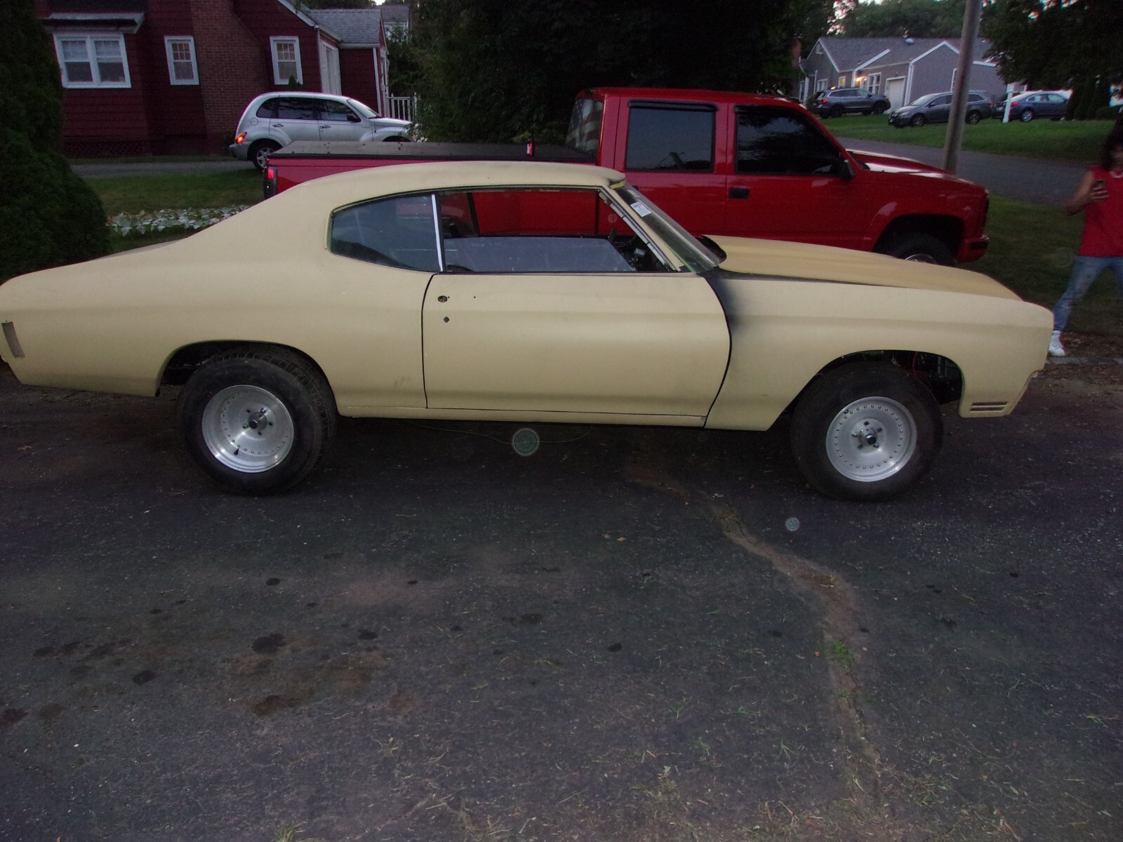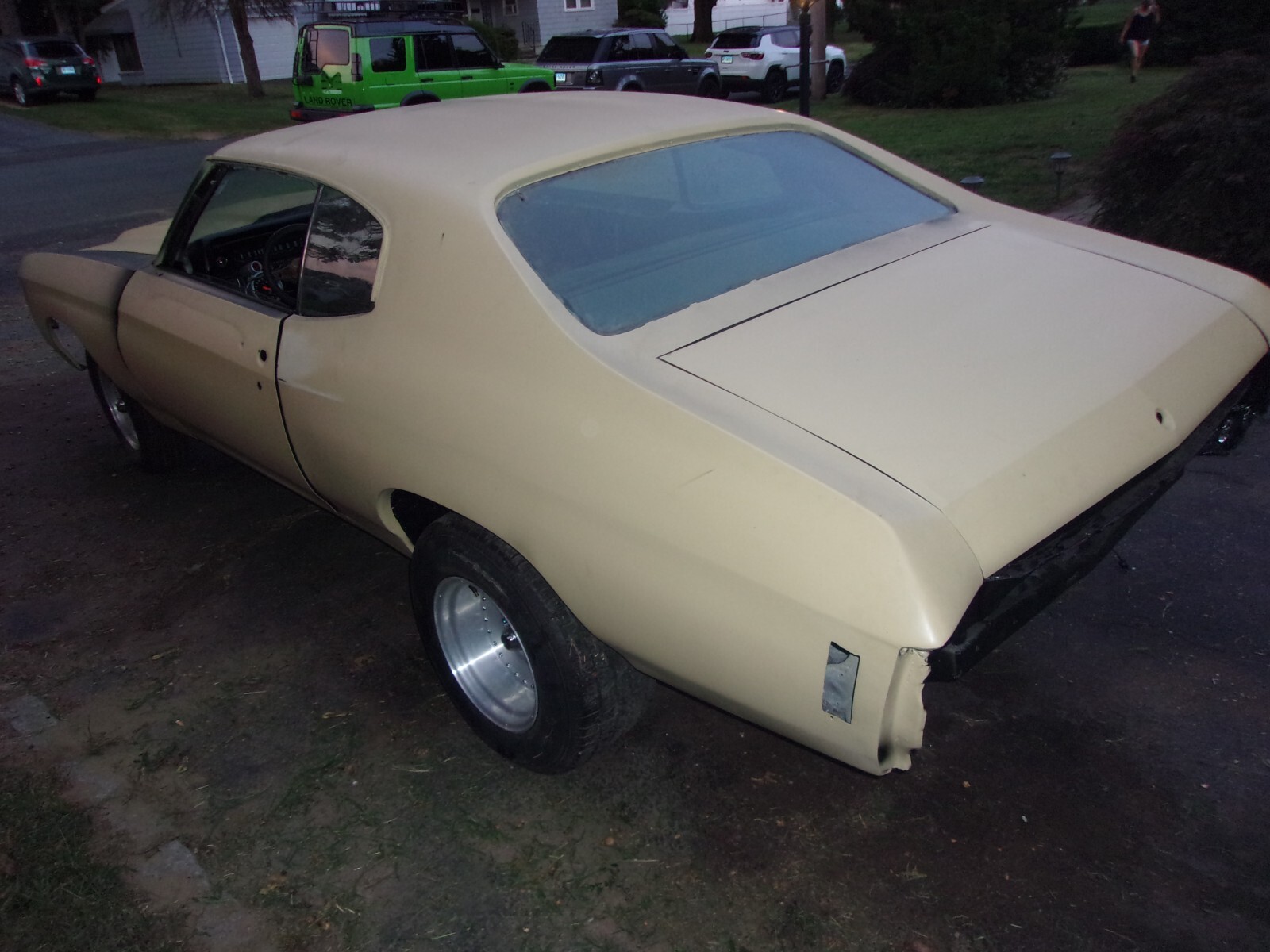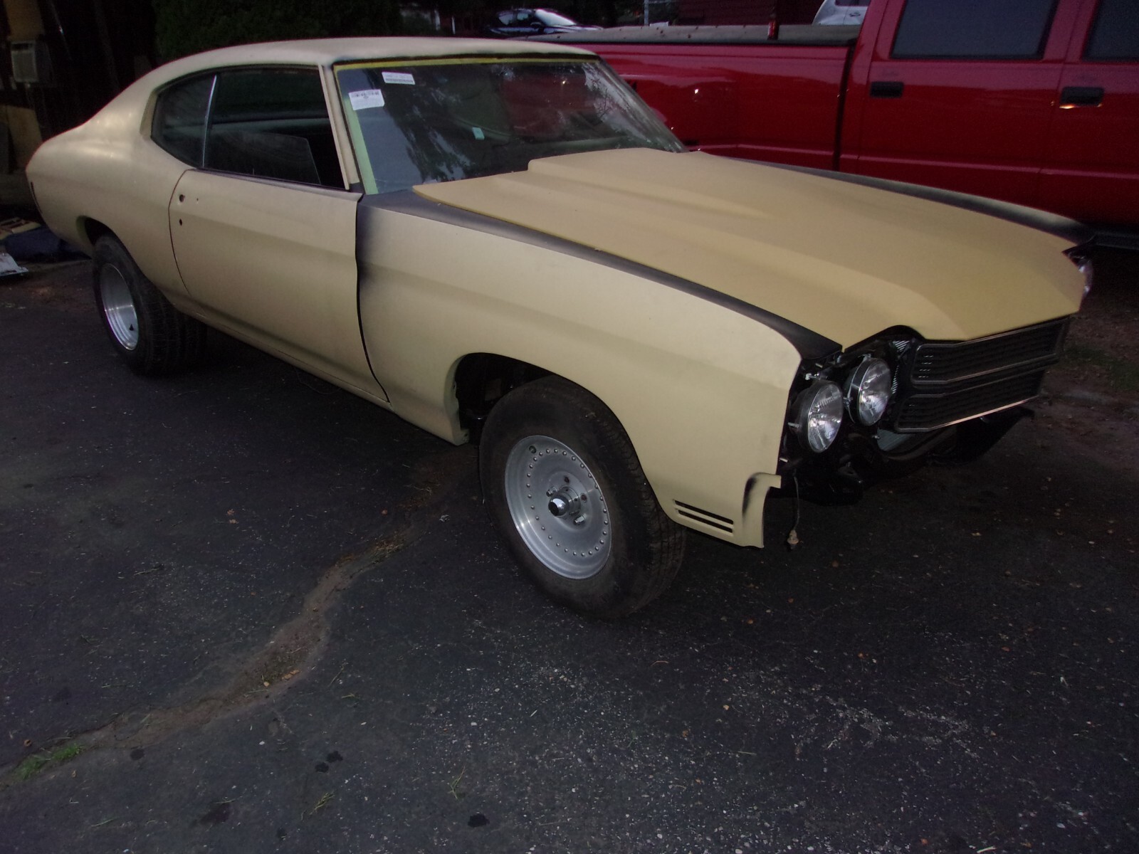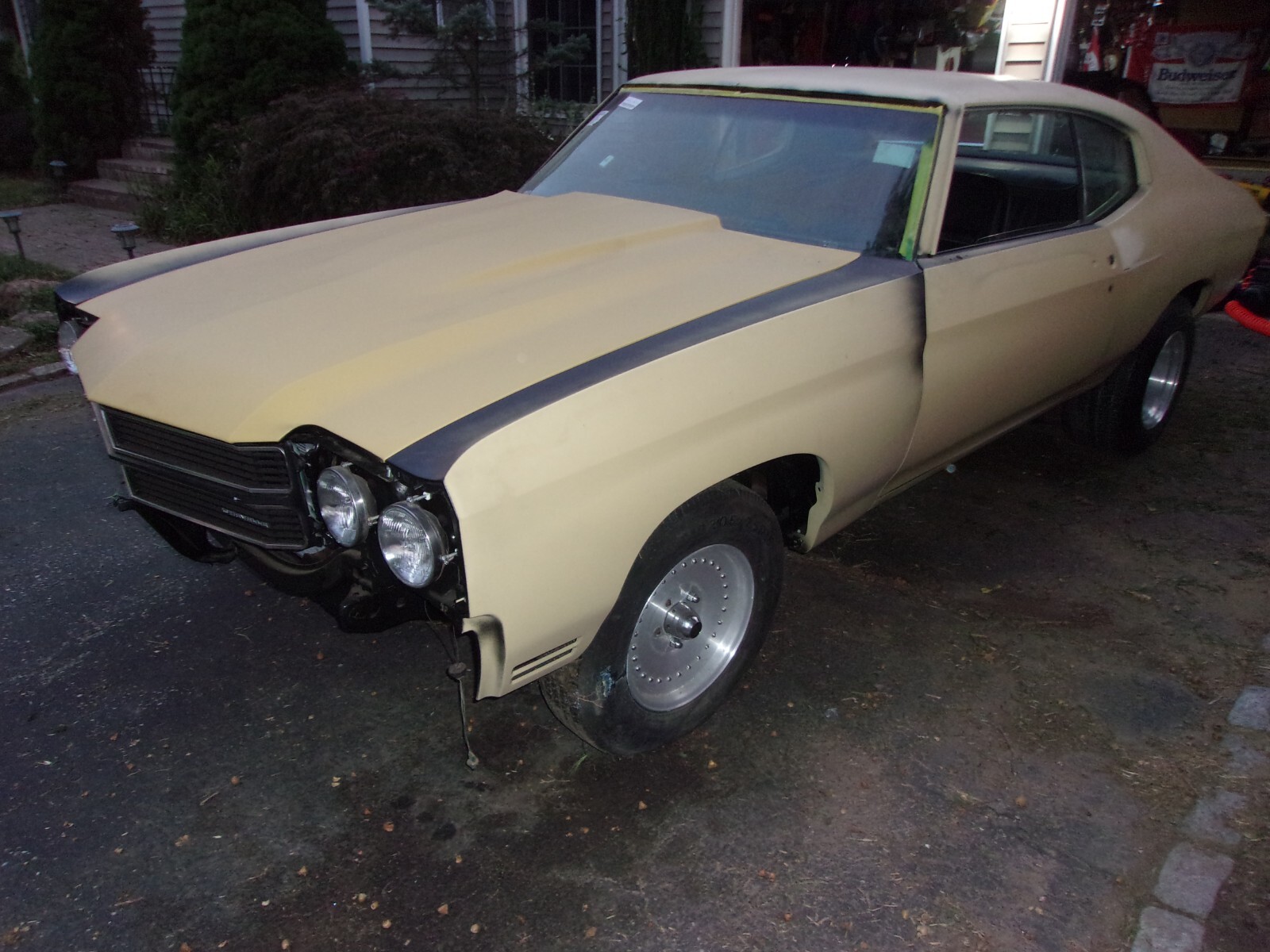 up for auction is my 1970 chevy chevelle with bill of sale.garaged for 30 plus years.started putting back together over last couple years. heres a list of whats been done and replaced. new fenders,cowl hood,right and left doors,trunk lid,half quarter panels right and left,front and rear bumpers,rear package tray,rear seat recovered,carpet,front windshield 383 motor,350 transmission with manuel valve body and 3800 stall converter,4 core aluminum radiator,duel fan set up ,summit multi spark box,holley carb,headders ,glass packs,hurst shifter,barry grant sterring wheel,monster tach,and battery.have org fender liners.door panels on and front seats should be re covered.motor starts up but have not timed it yet and have not broken motor in.needs finishing.i dont have the build papers on motor or transmission as i lost paper work and shop closed because owner died.so instead of telling you about motor i will say it just goes with car. also hase 12 bolt rear and i have 456 gears thet go with it.misc lights and parts go with it.car is in primer.feel free to ask any questions as im sure i left stuff out.
