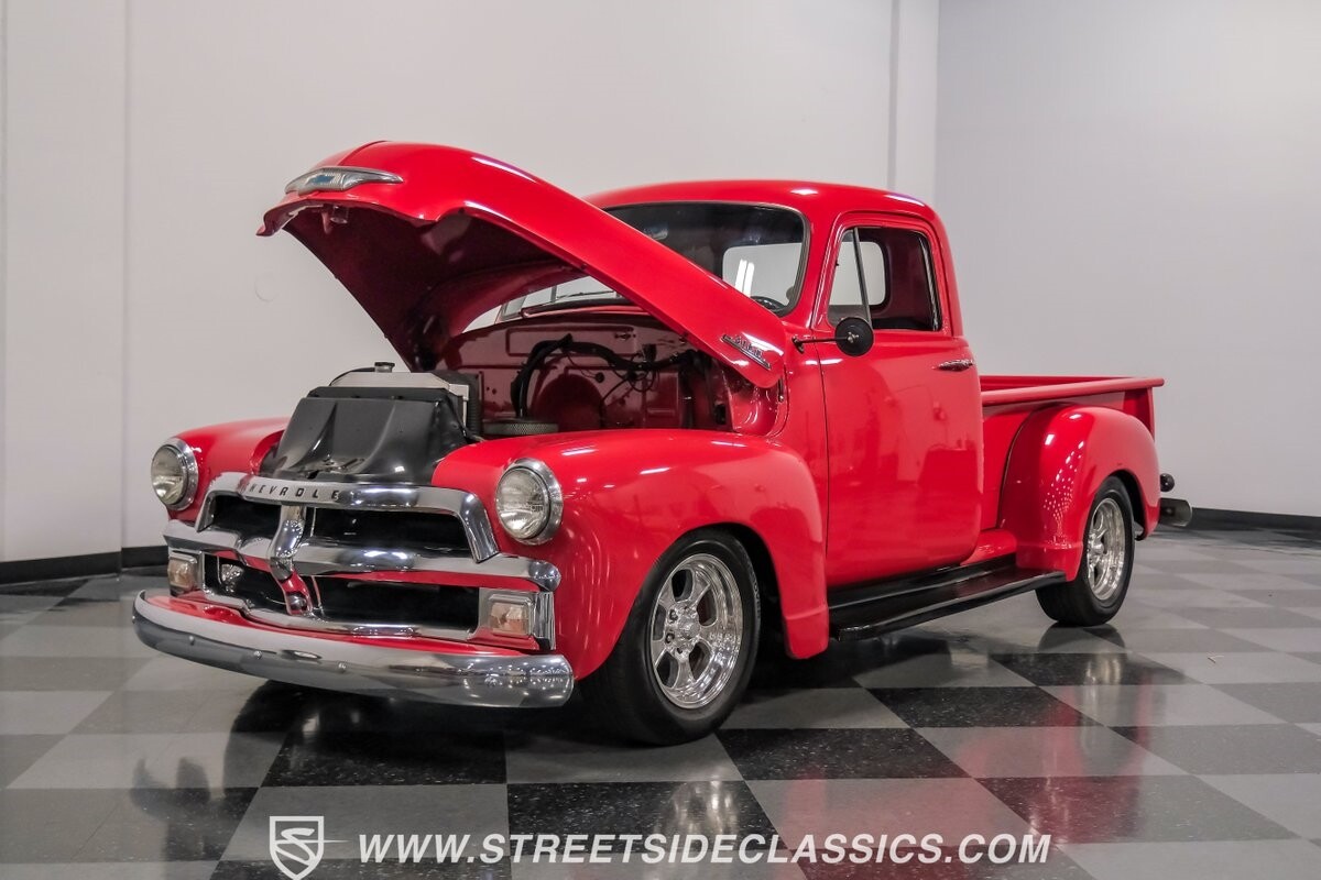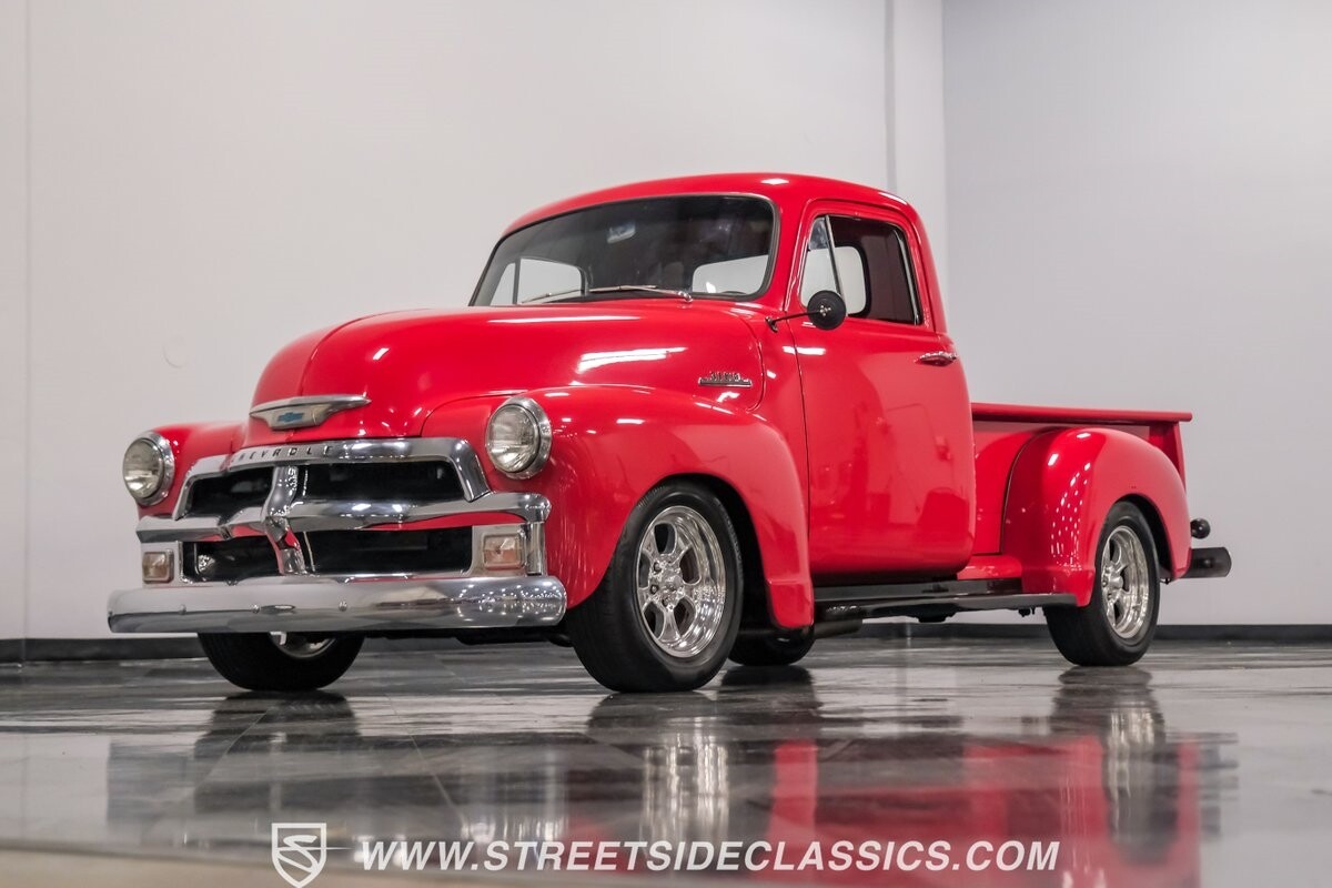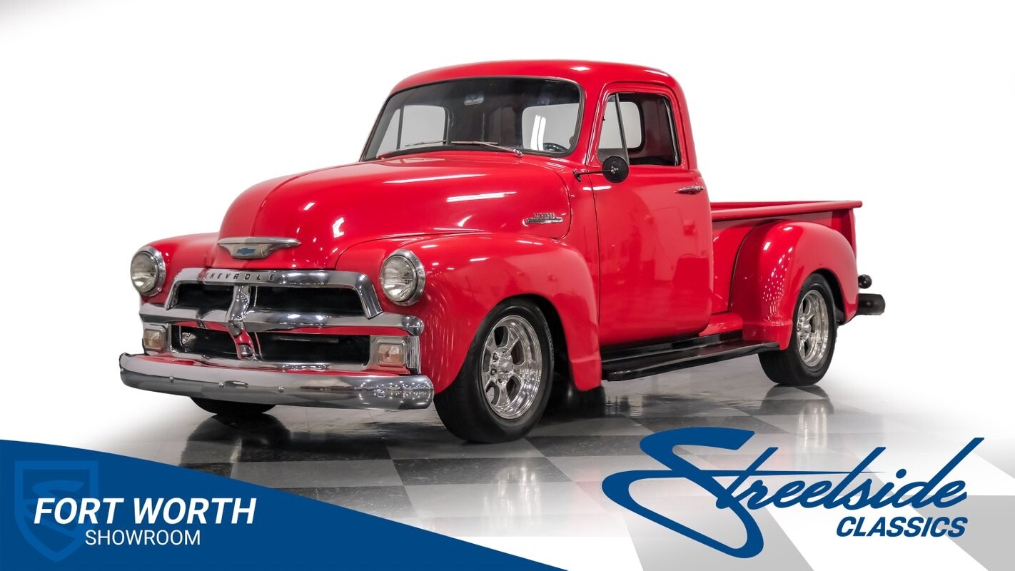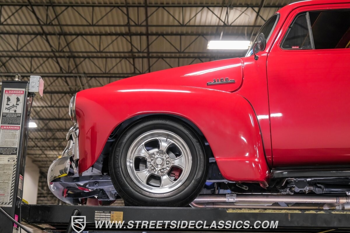 This 1954 Chevrolet 3100 3 Window pickup is the perfect combination of classic style and modern performance, with its vibrant Viper Red exterior, comfortable black interior, and powerful 350 V8 ZZ4 crate engine. Call today!