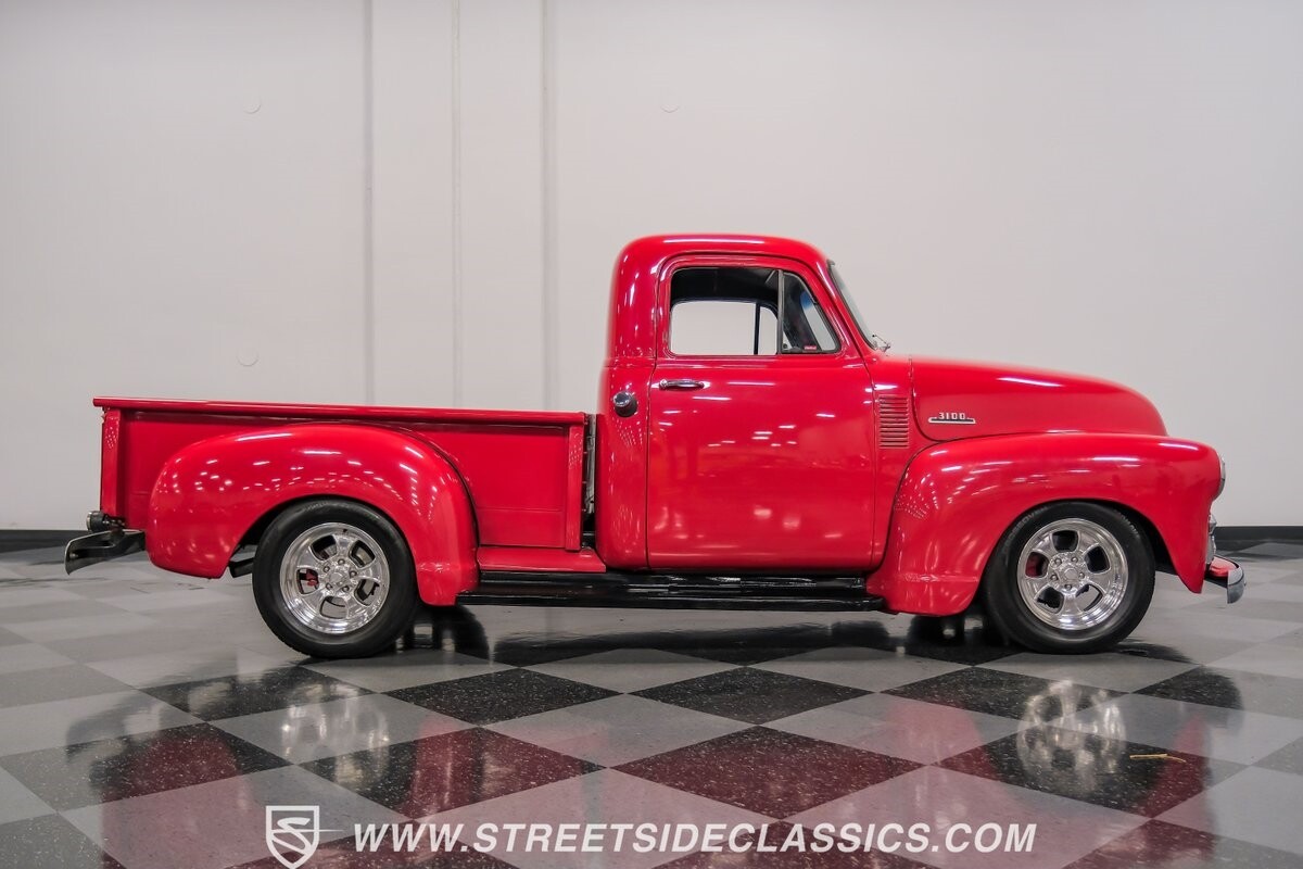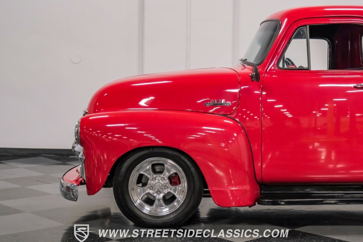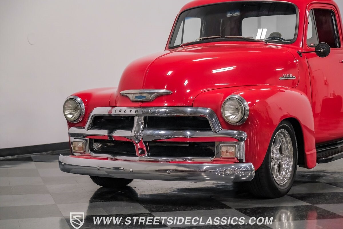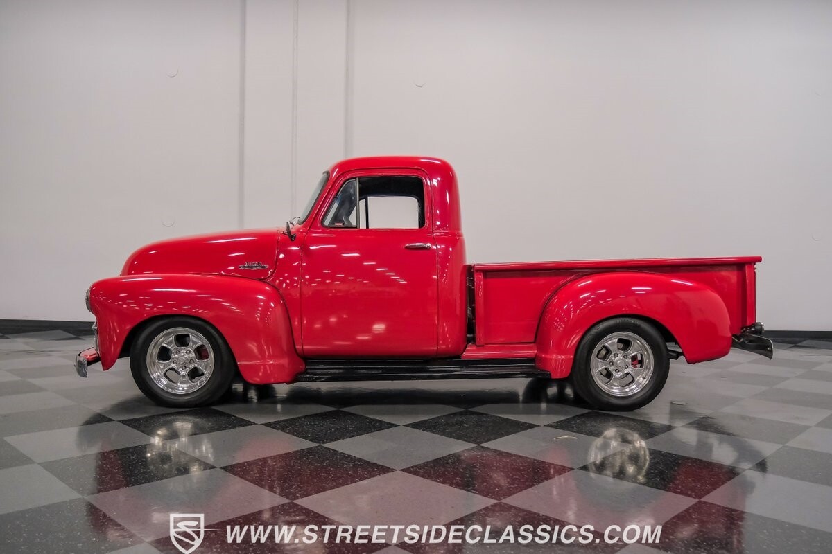 This 1954 Chevrolet 3100 3 Window pickup is the perfect combination of classic style and modern performance, with its vibrant Viper Red exterior, comfortable black interior, and powerful 350 V8 ZZ4 crate engine. Call today!