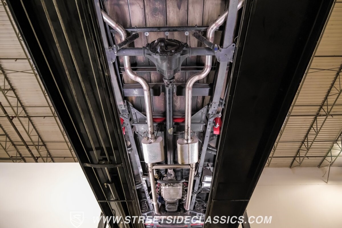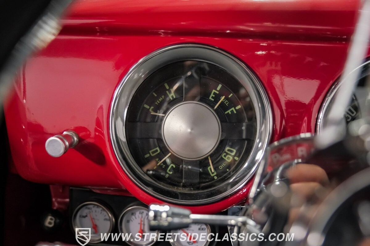 Inside, the interior has been completely revamped to offer a perfect blend of comfort and nostalgia. The original bench seat has been reupholstered in sleek black vinyl, while a tilt column with a custom steering wheel adds a touch of modern flair. Settle into the cabin and enjoy the cool breeze from the air conditioning, as you admire the attention to detail found throughout, from the black door panels and headliner to the plush carpeting underfoot. The Equus gauges mounted under the dash provide a clear view of the truck's vitals, ensuring you're always in tune with your ride.