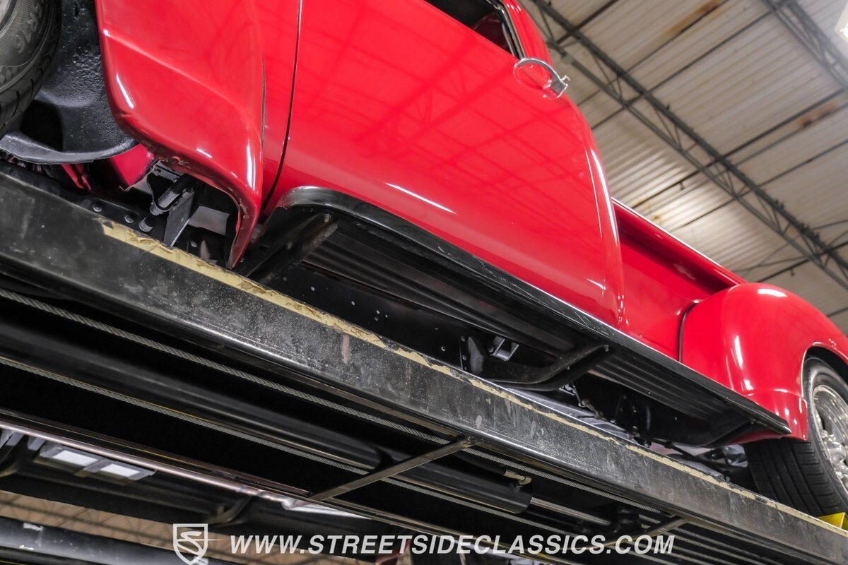 Powering this classic Chevy is a potent 350 V8 ZZ4 crate engine, paired with a smooth-shifting 700R4 4-speed automatic transmission. This dynamic duo has only seen about 2,000 miles since their installation, offering the perfect balance of reliability and performance. Shorty headers and an Edelbrock intake manifold optimize airflow, while aluminum heads keep things running cool. A Champion radiator with an electric push fan ensures optimal temperature control, even on the hottest days. With power disc brakes at all four corners and a Mustang II front end with tubular A-arms, coil springs, and shocks, this truck handles like a dream, providing a ride that's as comfortable as it is responsive.
