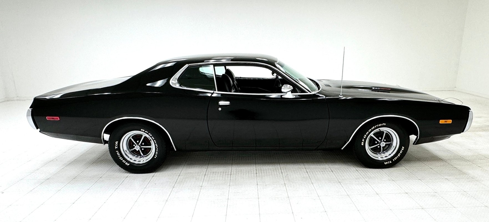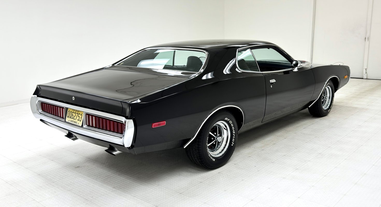 For consignment, a 1973 Dodge Charger Rallye 340 hardtop, one of 2,415 made, a numbers matching engine, restored in 2018, and with some internal upgrades and an EFI system. Fully restored with laser straight panels, a rebuilt and over bored engine and sinister black good looks. While this is them Duke boys, this car will still have you saying YEEHAW!