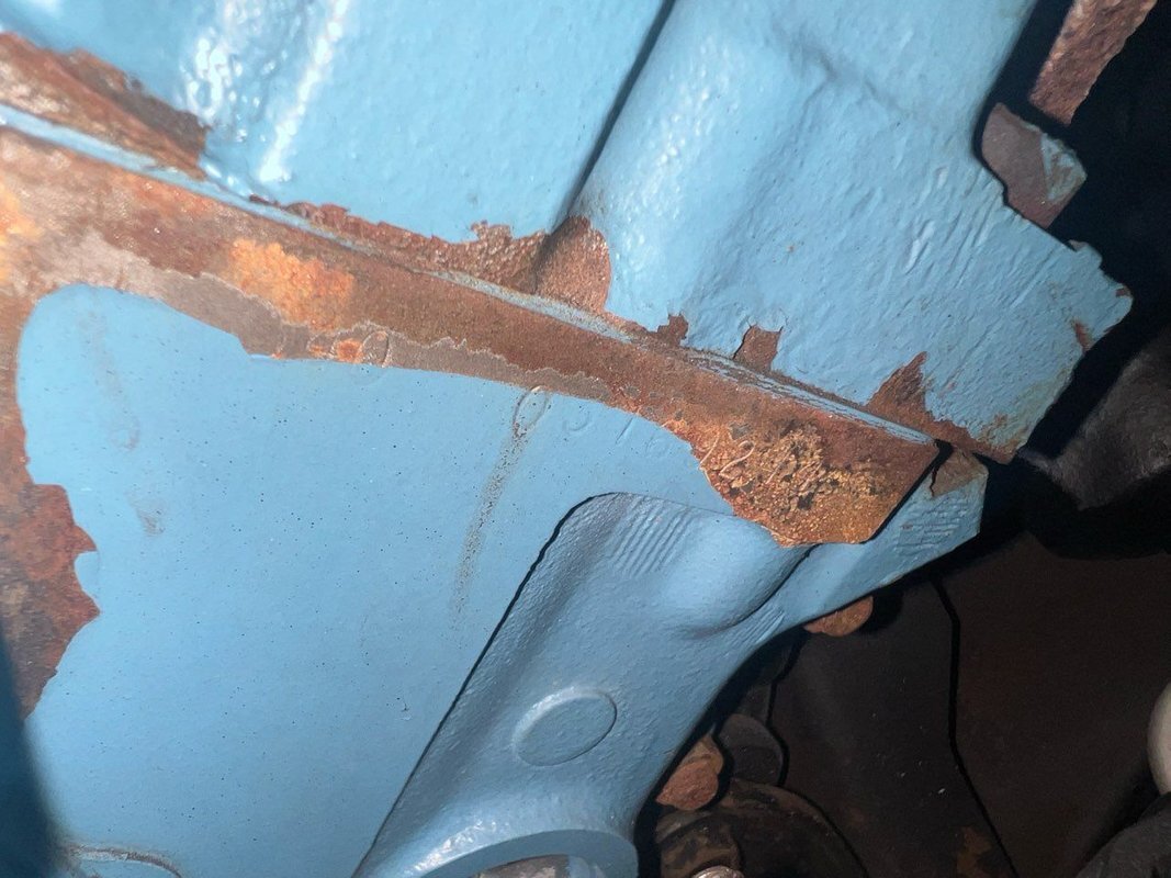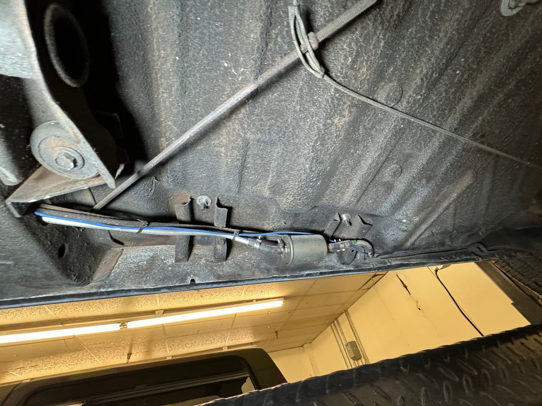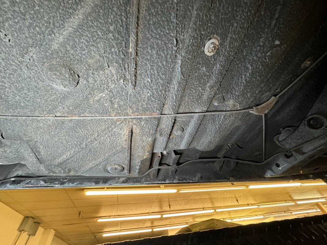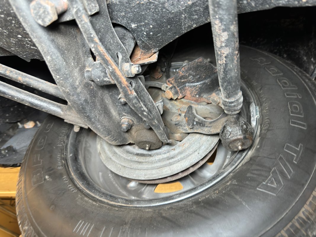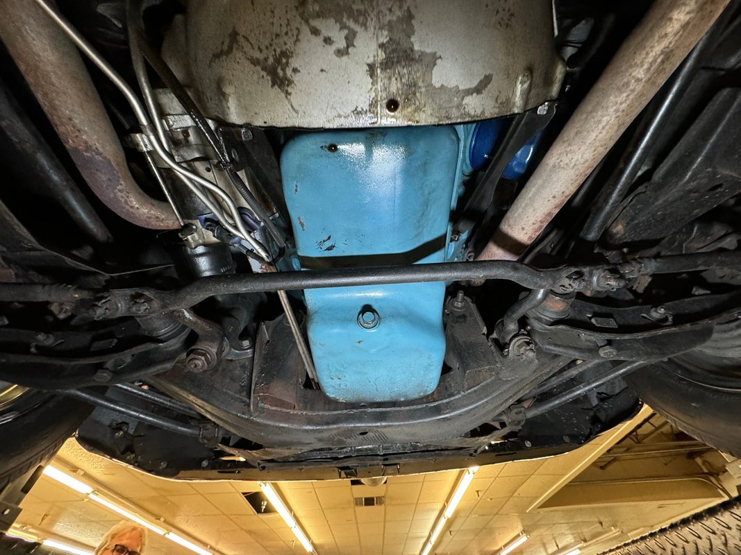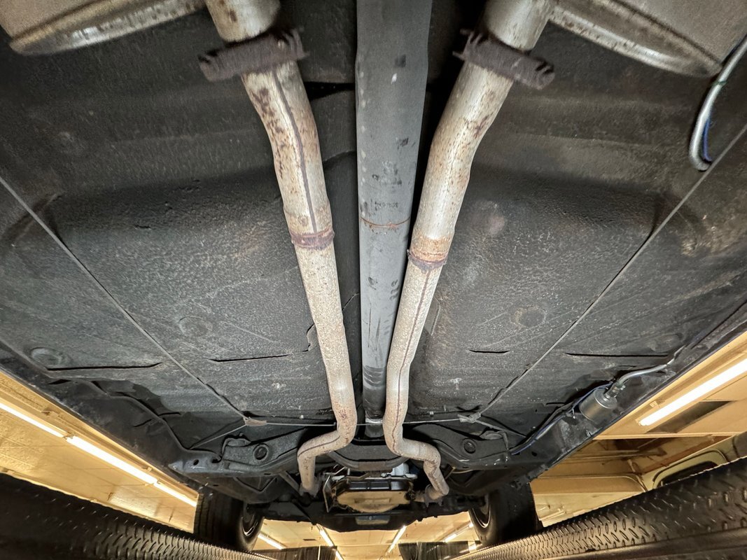 The underside is clean and dry, relatively driver quality, with only a few incidences of surface rust and no errant fluids or grease build up to be found. The dual exhaust meets stock style mufflers before bellowing to the outside via chrome tips. Torsion bar suspension is found up front and leaf springs in back.
