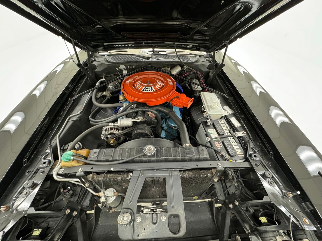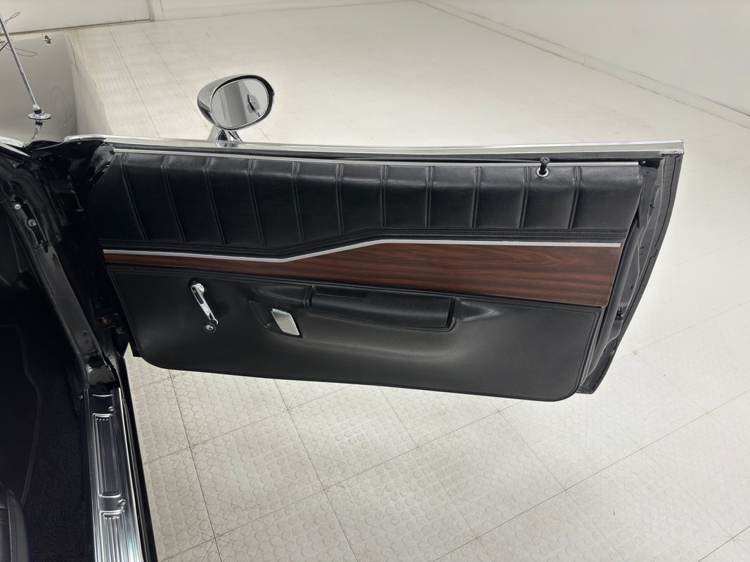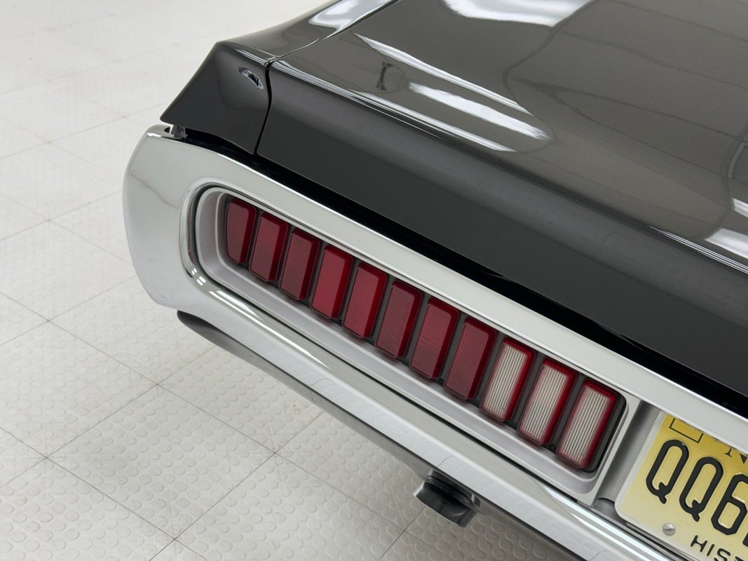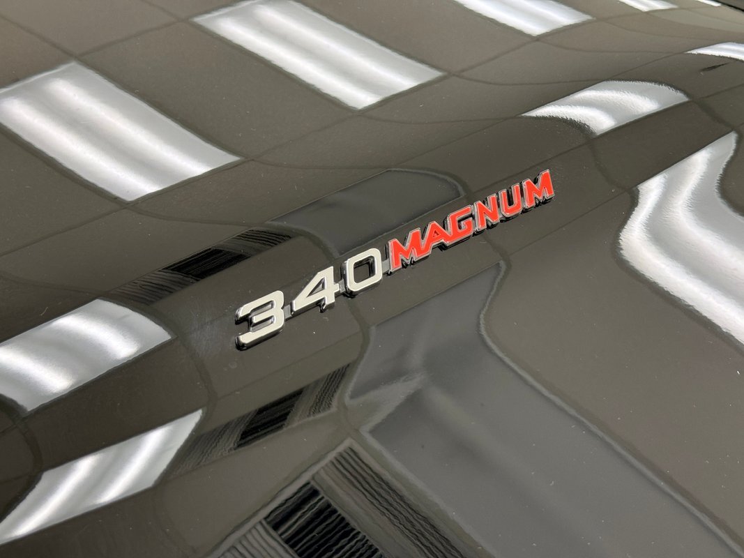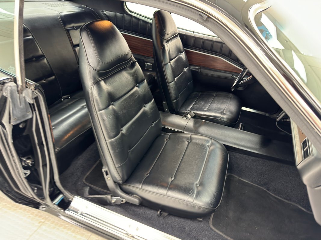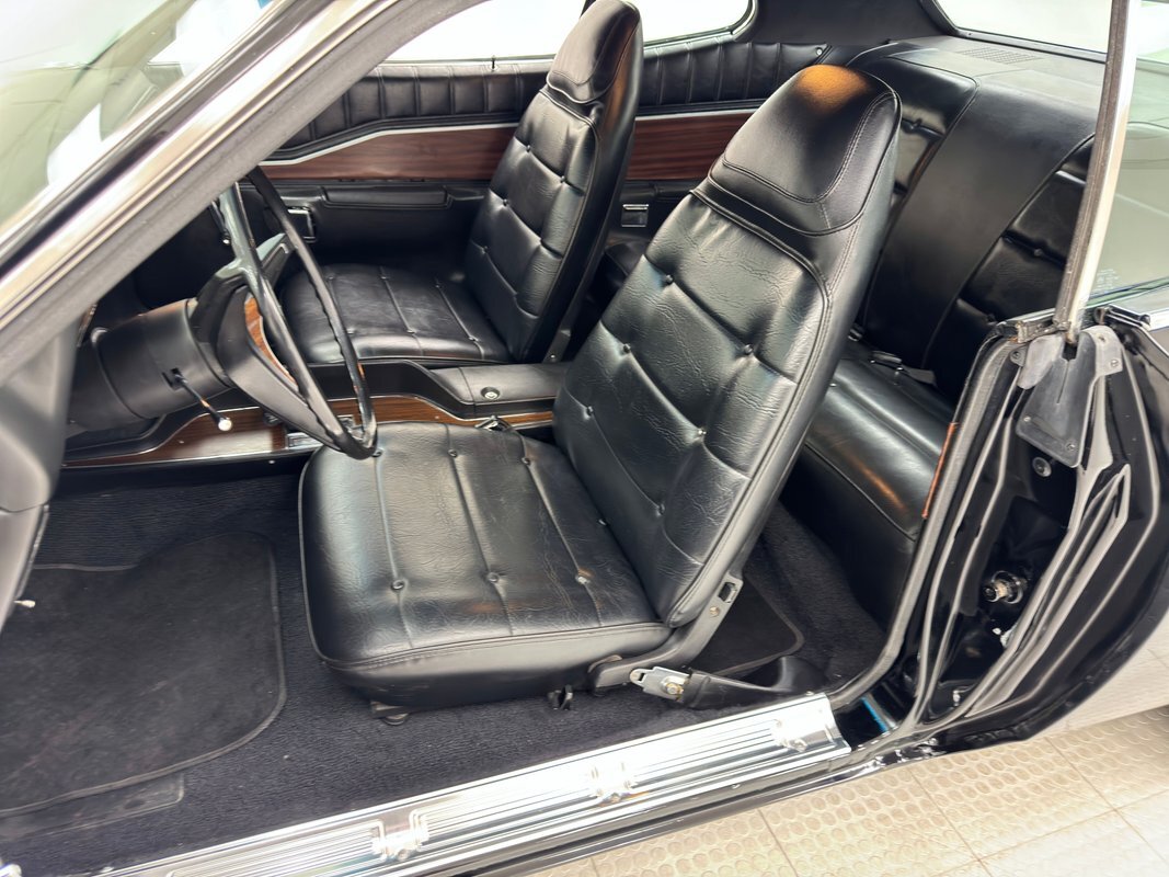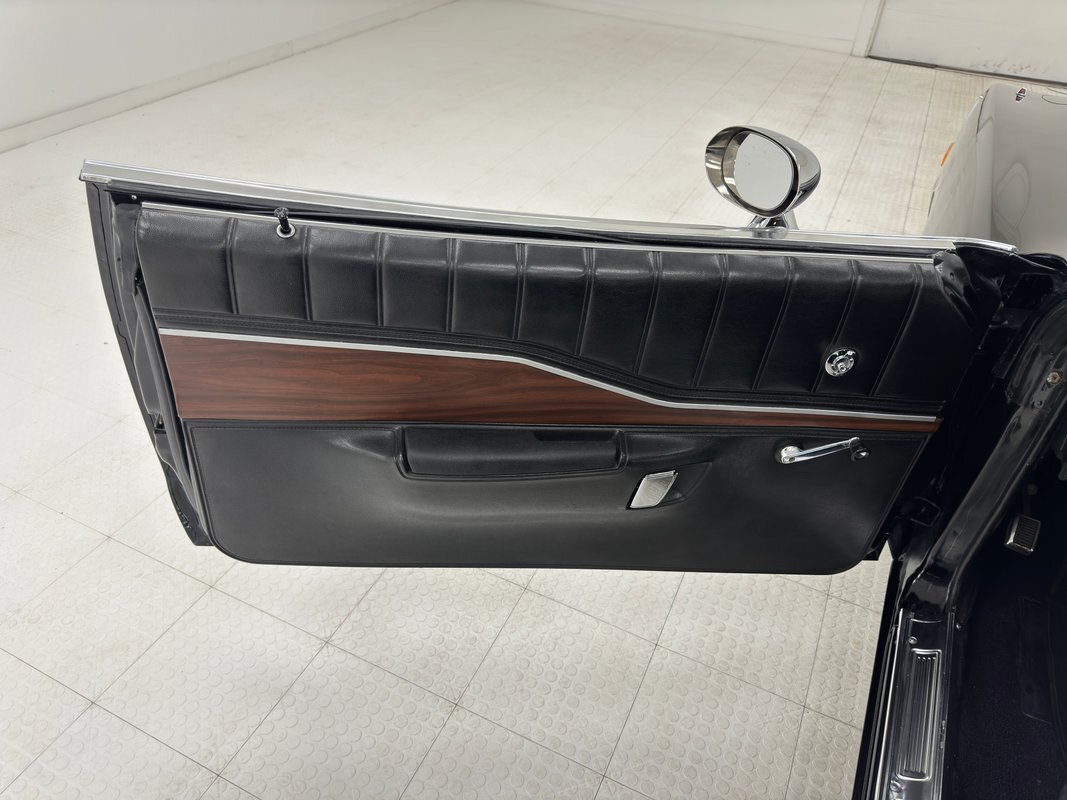 The fantastic face has dual headlights next to a cove formed by the horizontal grille that is boxed and flanks a chrome nose that is the hub of the surrounding trim. Behind it, a hood that screams muscle car with hood pins from the factory, a power bulge, and 340 Magnum on the raised portion. Cowl vents are cut into the hood, not on a separate cowl piece like so many cars. The polished window trim, as the chrome bumpers, are in excellent condition and that shine is picked up flawlessly by the side mirrors, the door handles, and the rear bumper. And while we're in the back, let's note that upturned tail, a slight but integrated rear wing over the vertical rows of the segmented tail lights over big chrome exhaust tips. Everything back here is intimidatingly muscular and intended to give the competition something cool to look at. New 15-inch Magnum 500 wheels present nicely with their black inserts matching the car, and the wheel openings are augmented by polished trim. We could not find any glaring imperfections on the exterior on this mean looking B-body.