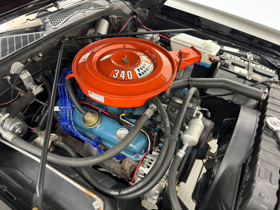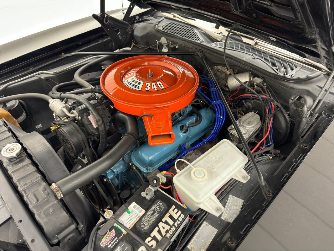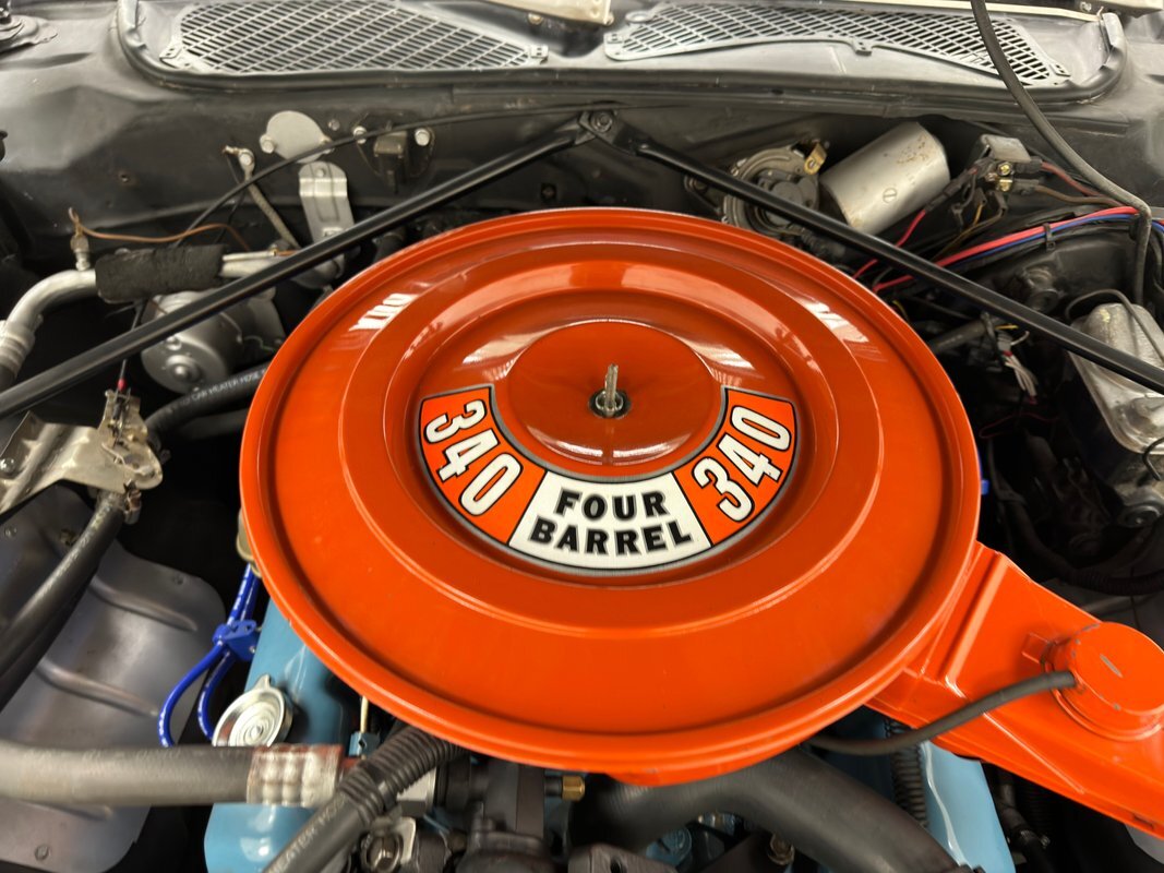 Under the bulging hood we find a numbers matching 340ci V8, originally rated at 240 horsepower, which has been bored .030 over and the rebuild includes Sealed Power pistons and a Comp cam with .464 lift, 22i/226e duration. A Holley Sniper Electronic Fuel injection system has been added and the transmission onboard is a rebuilt A727 Torqueflite 3-speed automatic attached to a Slapstick shifter. Power naturally goes to the rear wheels where an 8 3/4 " axles houses 3.23 gears with Suregrip. The engine bay and the power plant itself are super clean and certainly worth showing off. Power brakes are onboard with disc in front and drum out back.