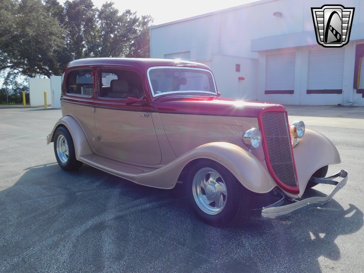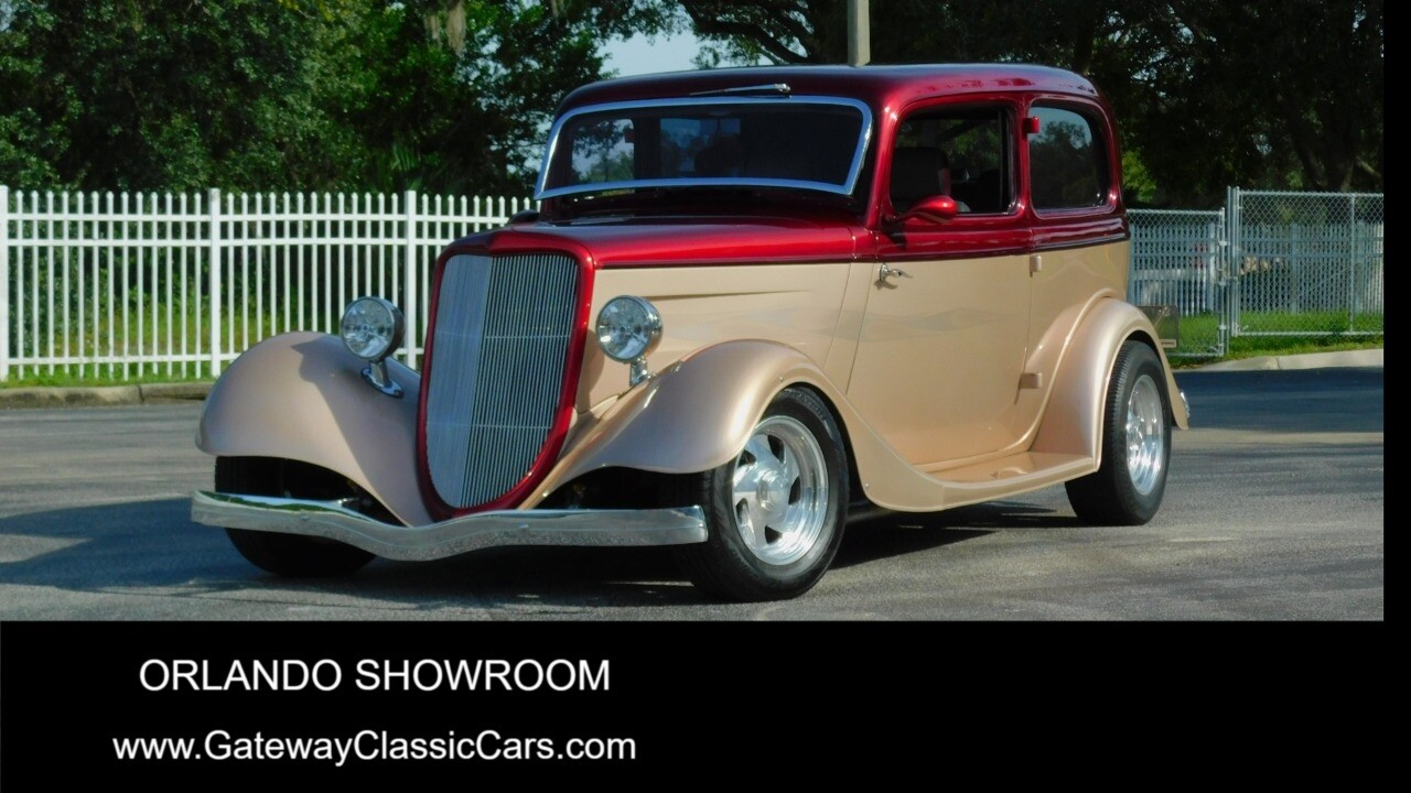 Gateway Classic Cars of Orlando invites you to step into the past with the 1934 Ford Custom, a timeless classic that effortlessly combines vintage charm with modern convenience. This vehicle is a standout with its striking burgundy/champagne exterior color scheme, matched by a burgundy/champagne interior that exudes a sense of luxury and sophistication.