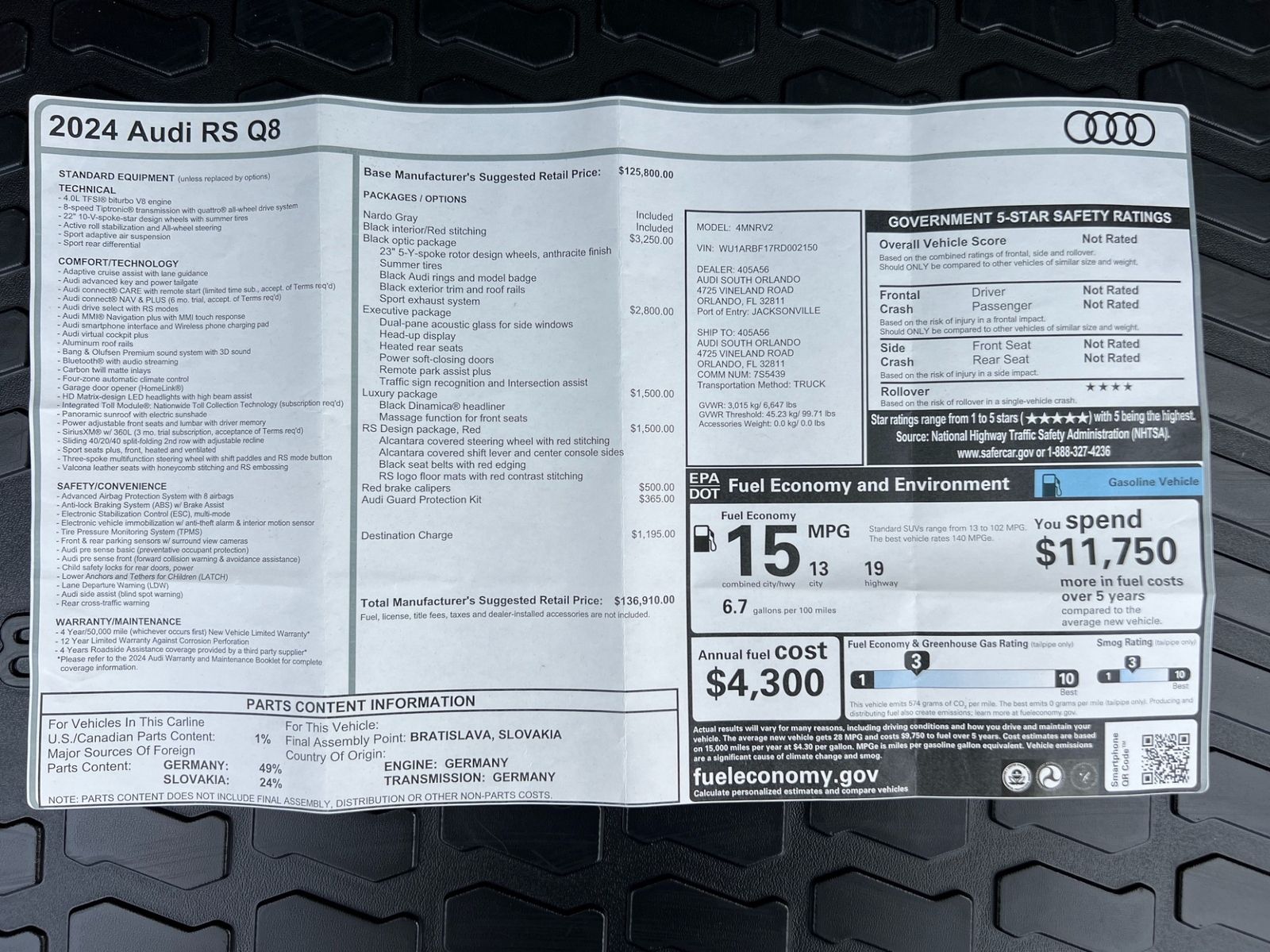 Experience the ultimate in luxury and performance with the 2024 Audi RS Q8, now available at Marino Performance Motors. This exceptional SUV combines Audi's iconic design with advanced technology and comfort, ensuring an exhilarating driving experience. The Nardo Gray exterior paired with the Black interior and red stitching makes this RS Q8 a true standout.