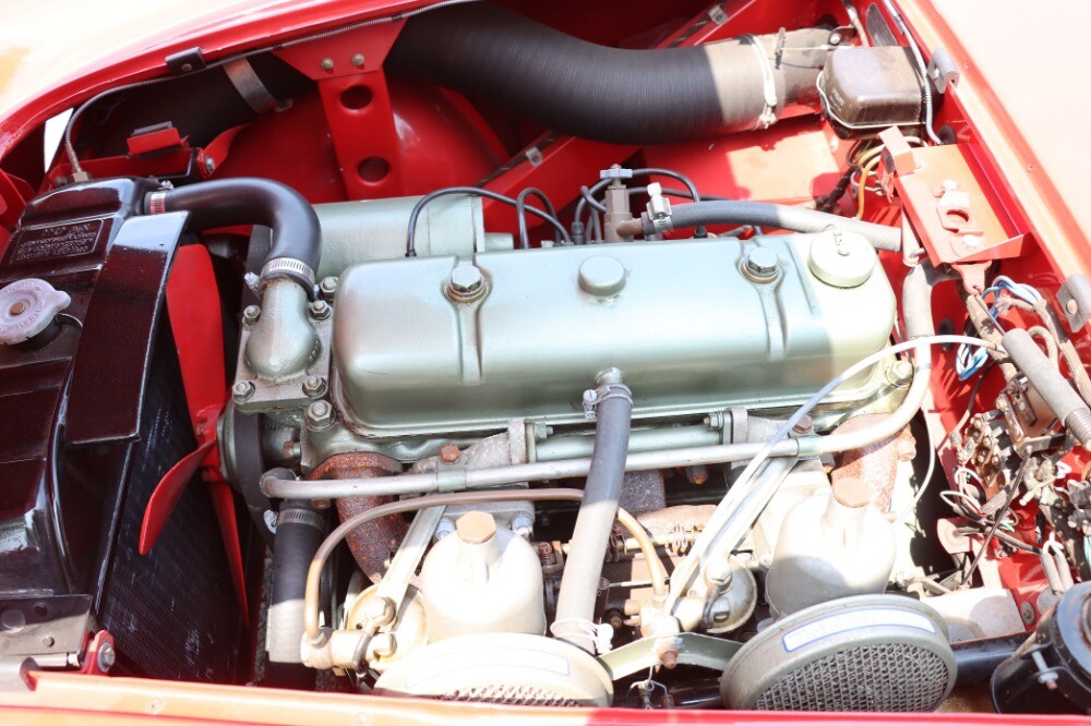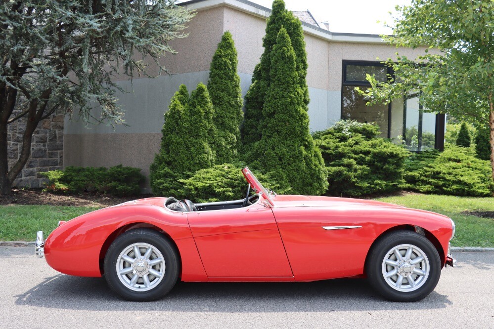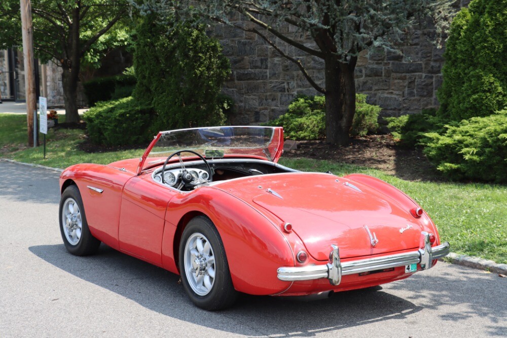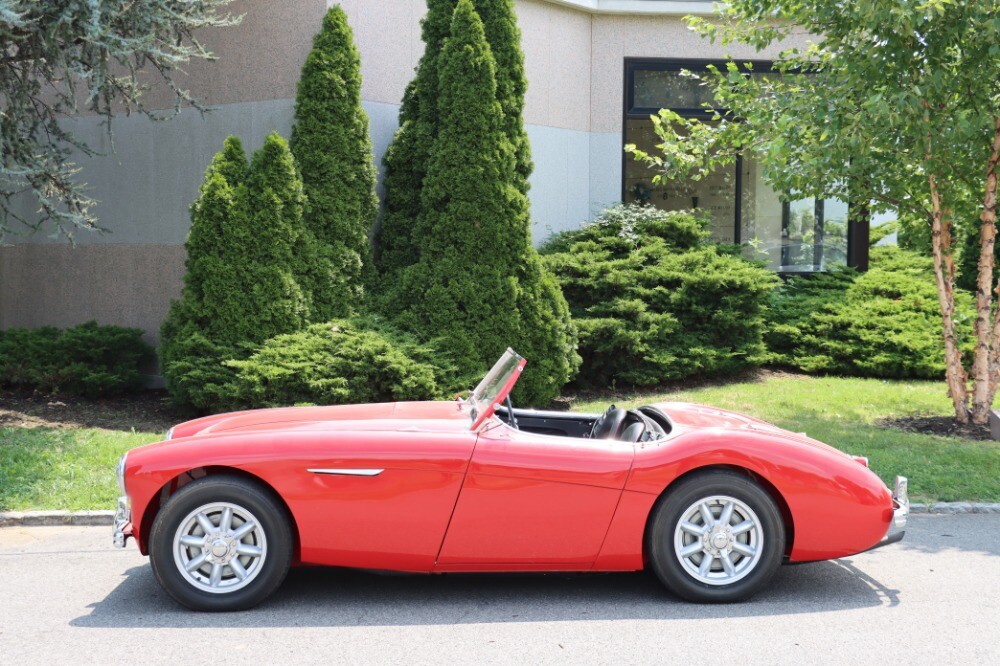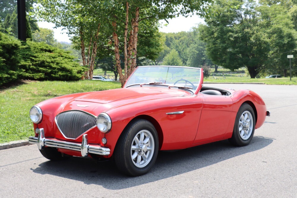 This 1955 Austin Healey 100-4 BN2 is a highly attractive fully restored example out of 60 year loving ownership. Red with black interior. It runs and drives well. Good panel fit and door gaps. Beautiful paint and chrome. Super clean underside. A complete car with tools, spare, side windows, and soft top. Offered with its original wheels. Don't miss the opportunity to own this classic and iconic British sports car at a very reasonable price. An extremely collectible and desirable BN2 100-4. A superb buy for any Austin Healey enthusiast.