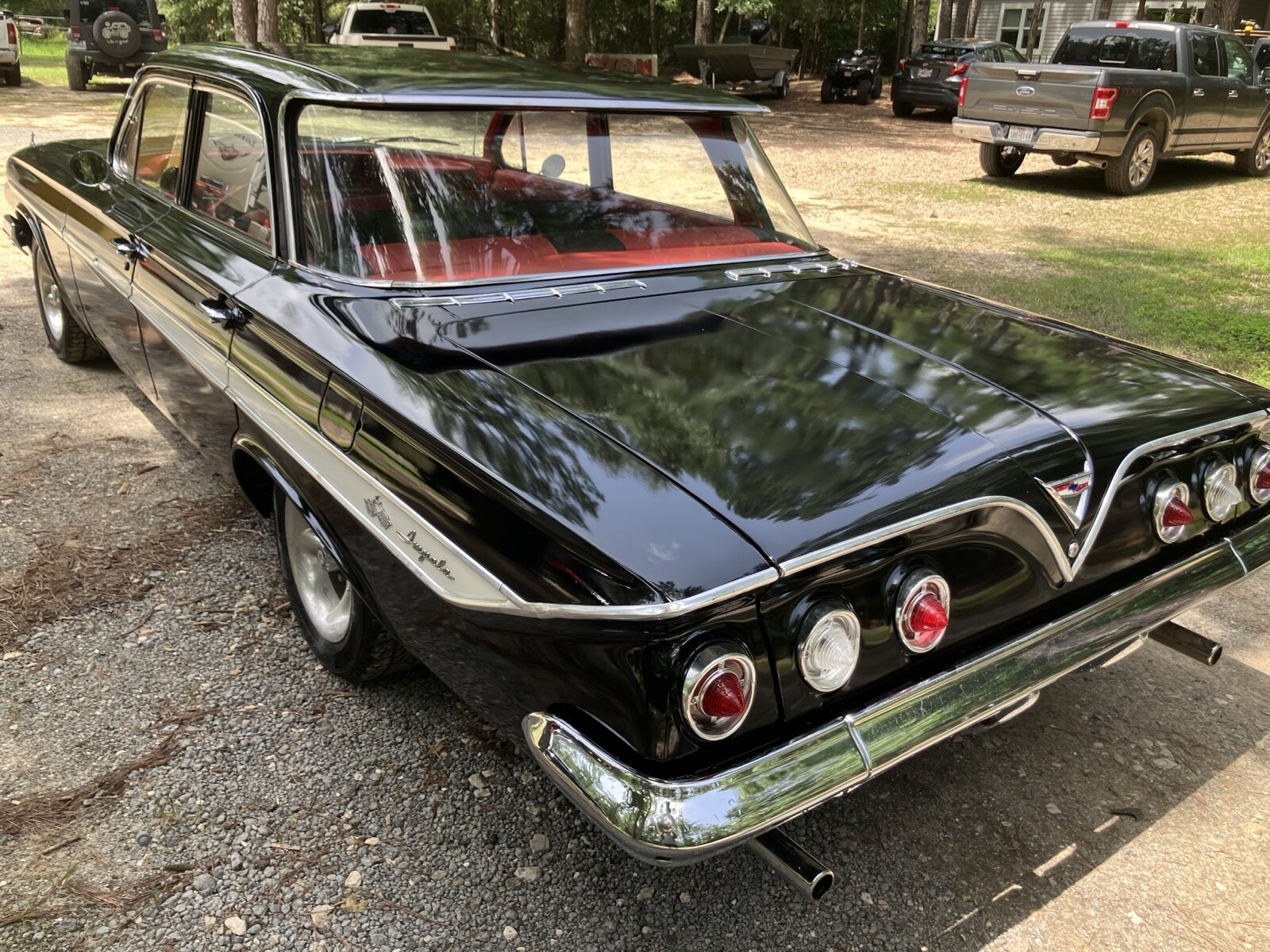 Up for auction is my 61 Chevy Impala I know it’s a four-door but it is a sweet ride. This car runs like a sewing machine with a brand new rebuilt motor. This car has cold. AC custom wheels dual exhaust everything on this car has been gone through it has a brand new black paint job and brand new interior , don’t miss out on this cruiser