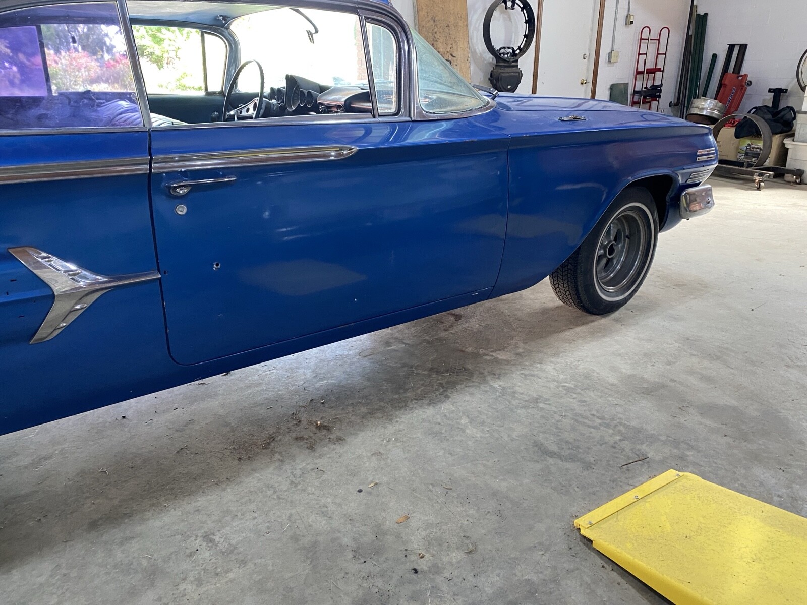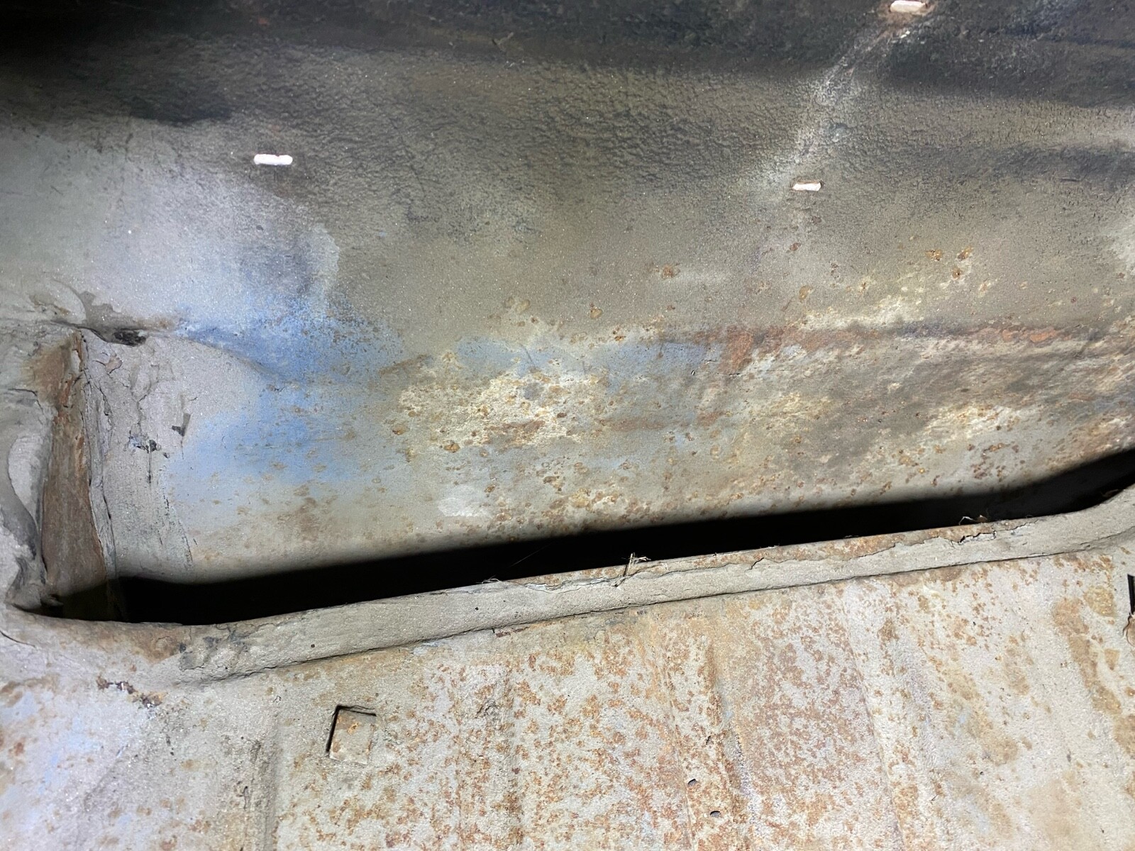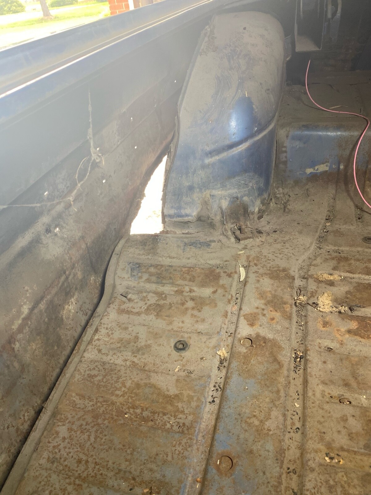 Incredibly solid California car. The floors, trunk, doors, hood and deck lid are in excellent condition. The left outer half of the wheel well is missing. It was that way when I purchased this car. Everything else body wise is intact and solid. The interior is rough but the seat frames and door panels are there and can be reupholstered. Some of the side windows are cracked and will need replaced.