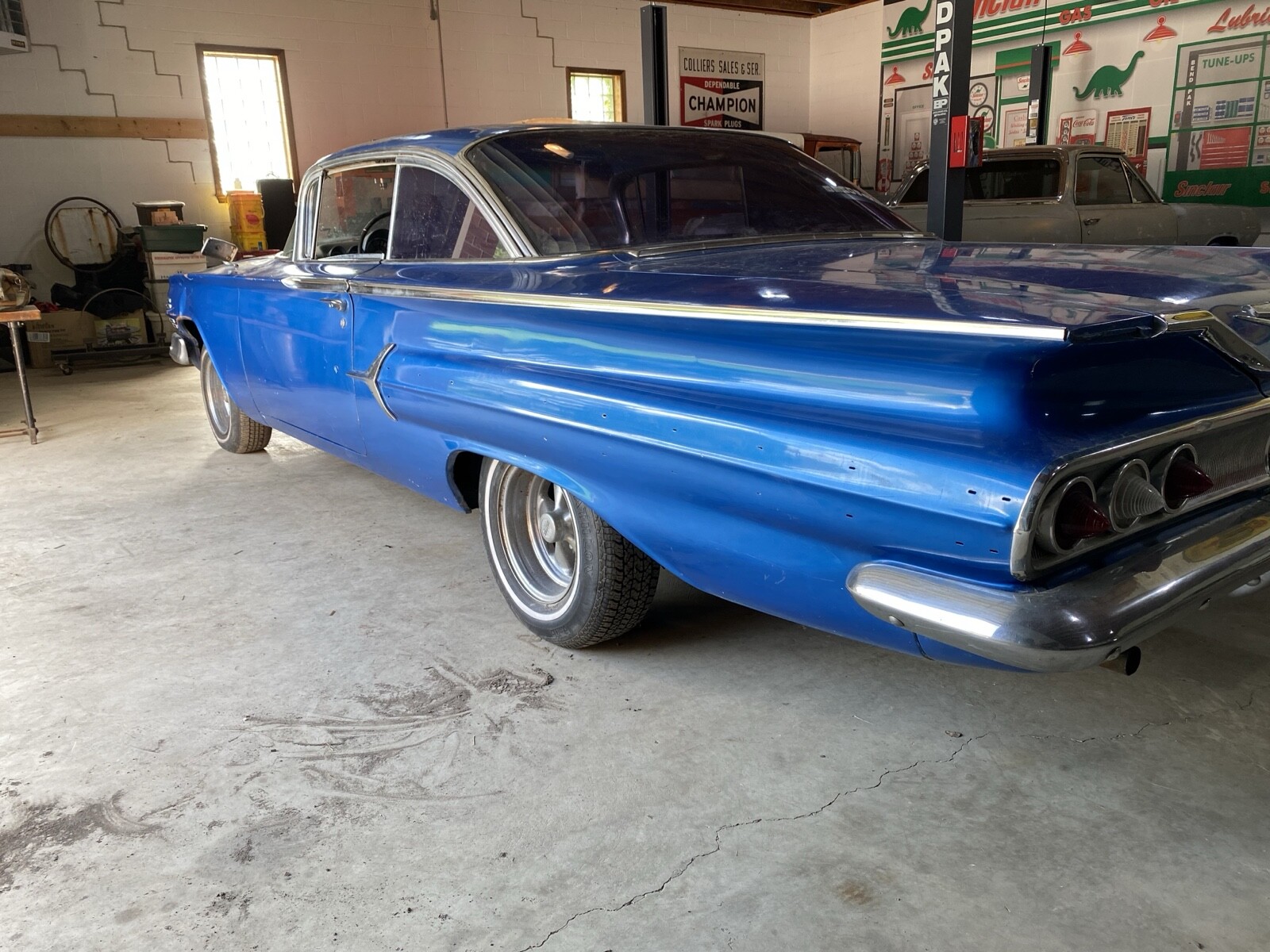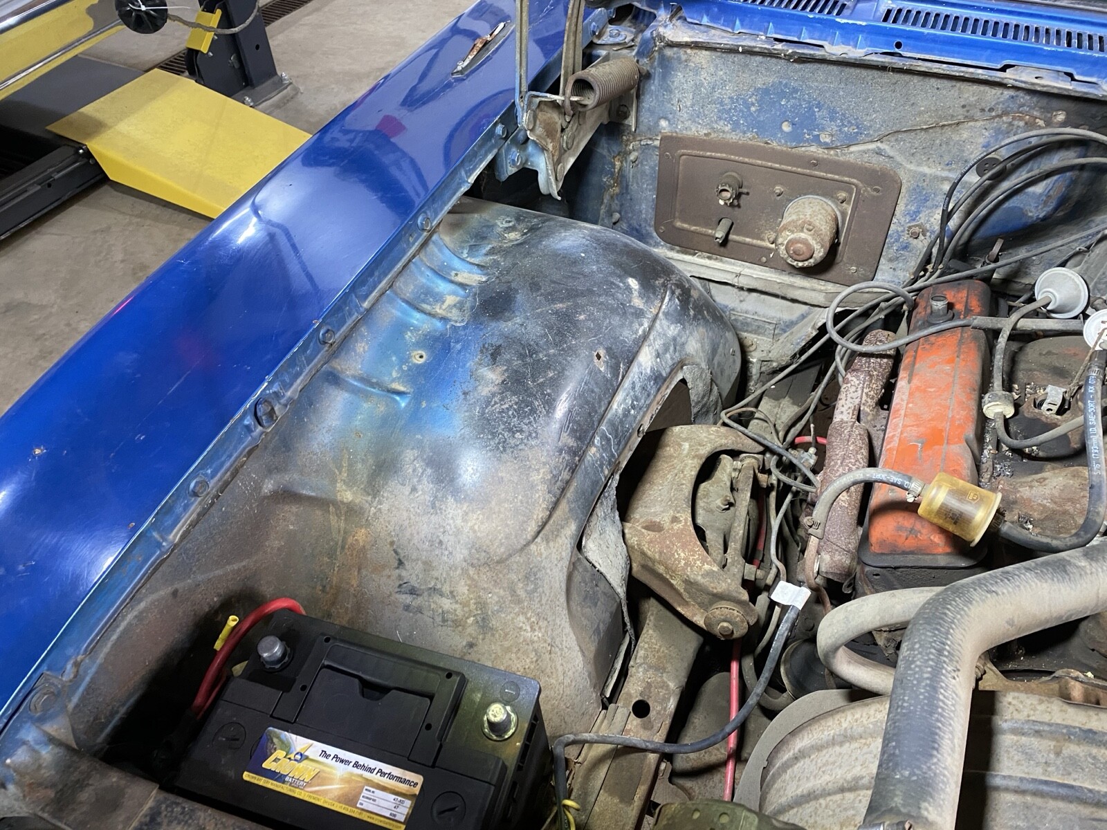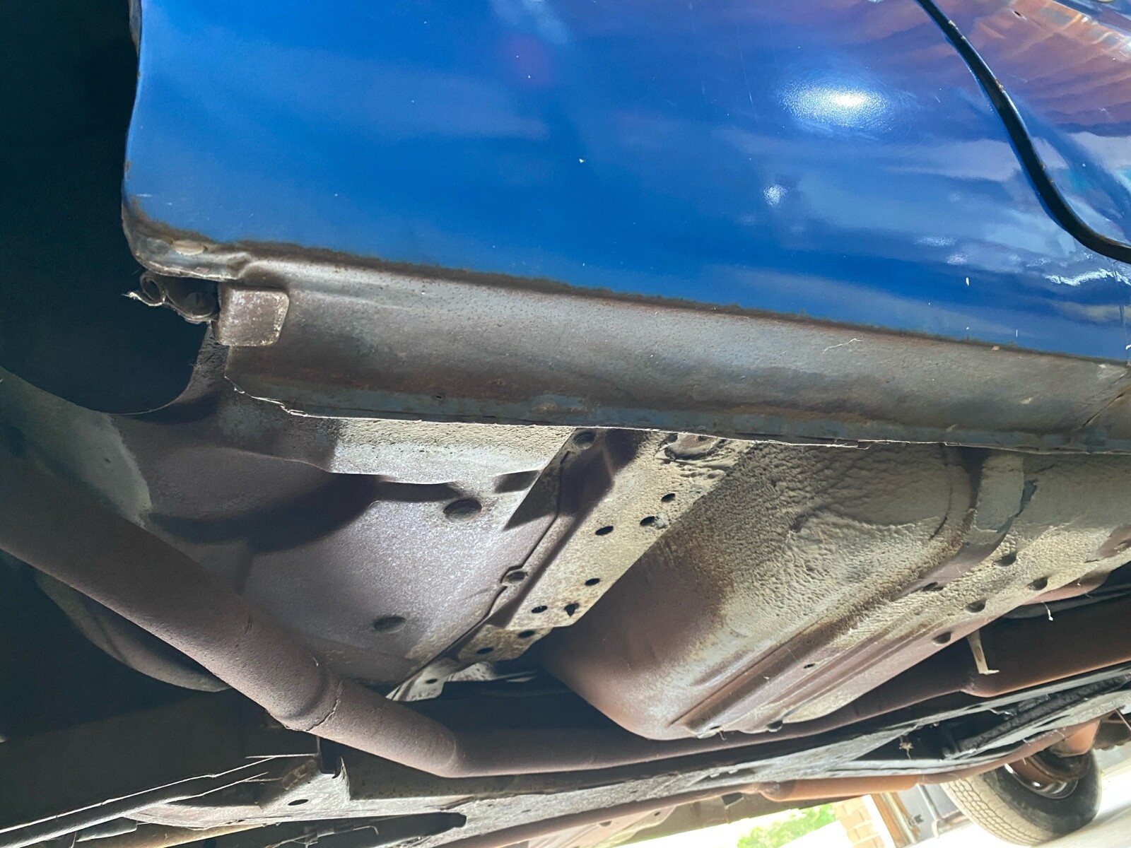 Incredibly solid California car. The floors, trunk, doors, hood and deck lid are in excellent condition. The left outer half of the wheel well is missing. It was that way when I purchased this car. Everything else body wise is intact and solid. The interior is rough but the seat frames and door panels are there and can be reupholstered. Some of the side windows are cracked and will need replaced.