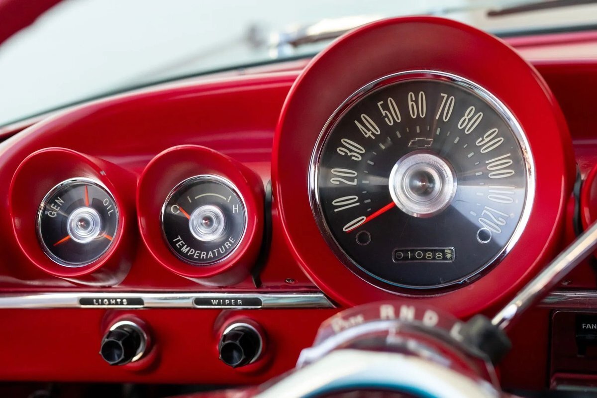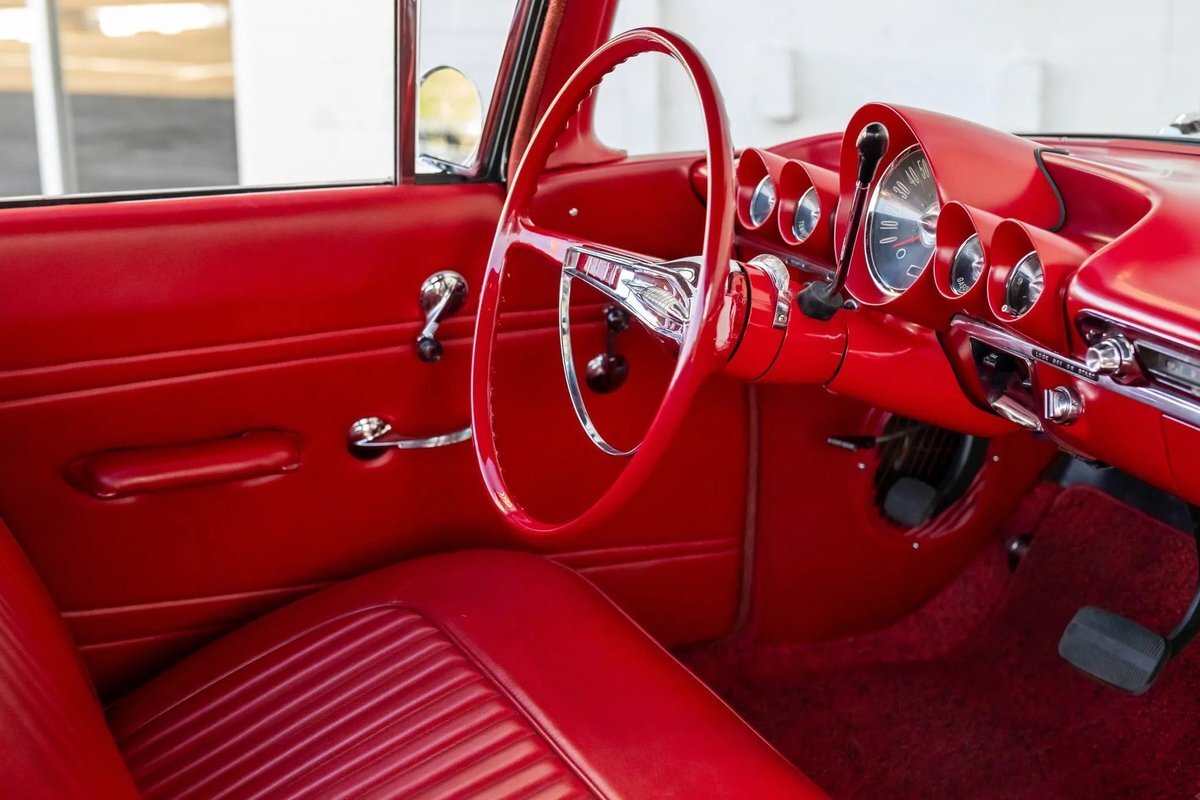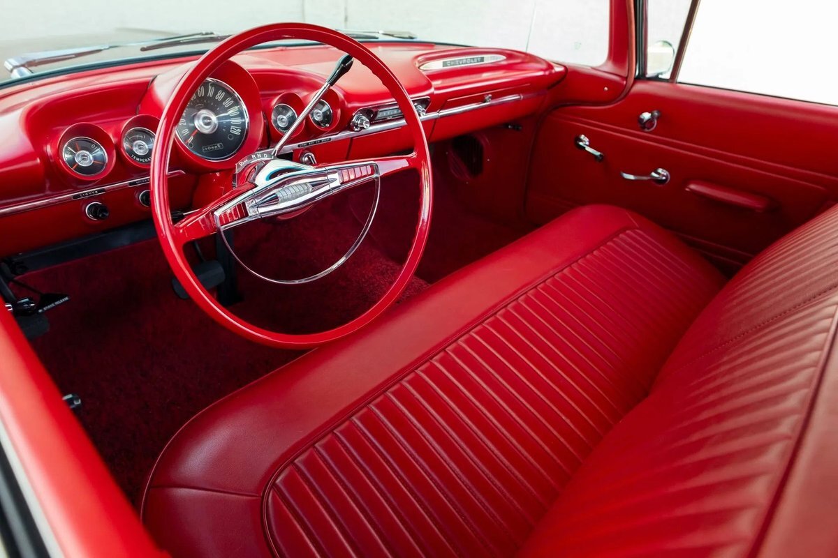 The Black 14"Factory steel wheels wear bowtie-branded center caps and are mounted with American Classic narrow-whitewall tires comes with the car. A full-size spare is mounted beneath the bed.