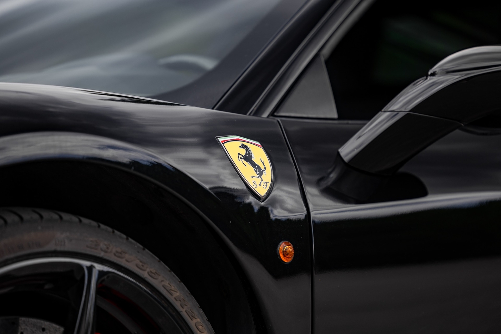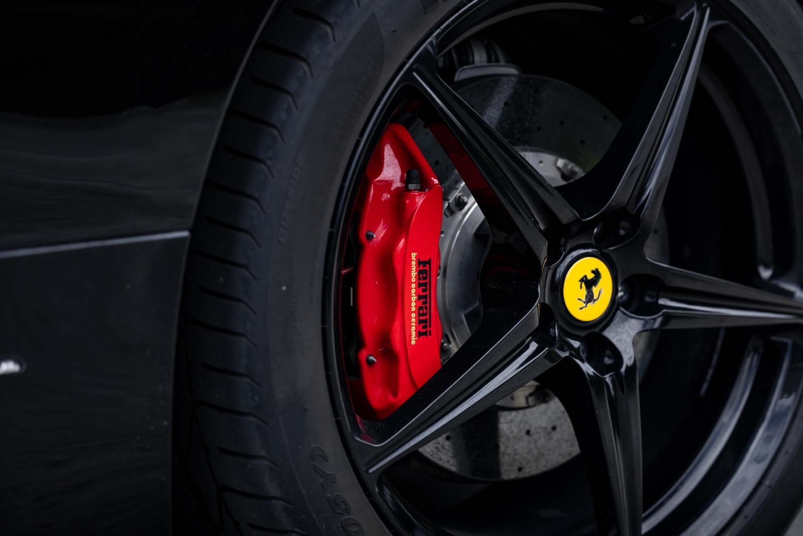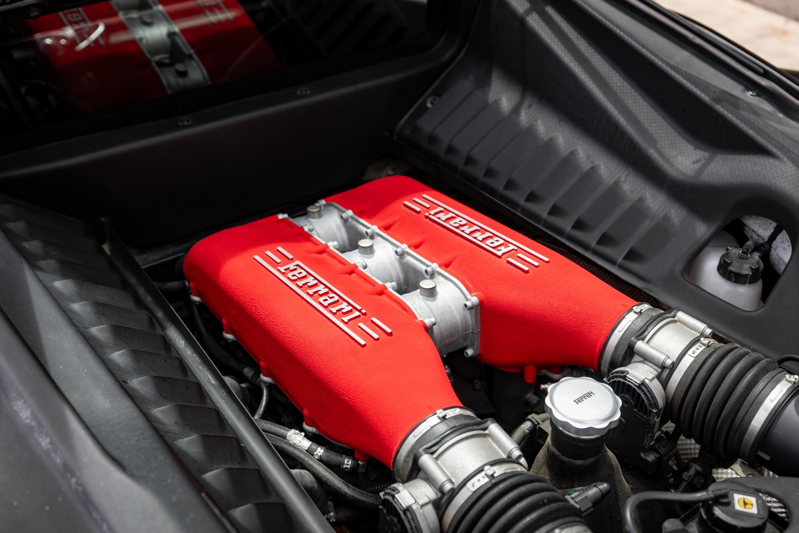 Step inside the luxurious cabin, adorned in a sophisticated Charcoal interior color scheme that exudes elegance and refinement. The Nero exterior paint color perfectly complements the sleek lines and aggressive stance of this iconic Ferrari model, turning heads wherever you go.