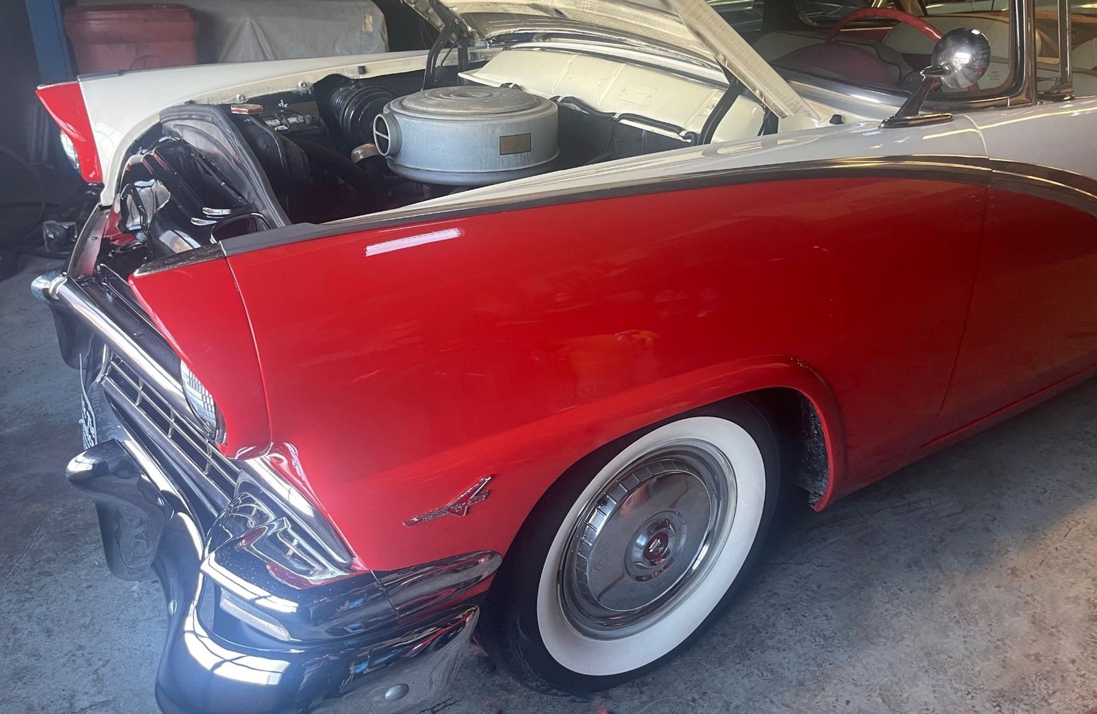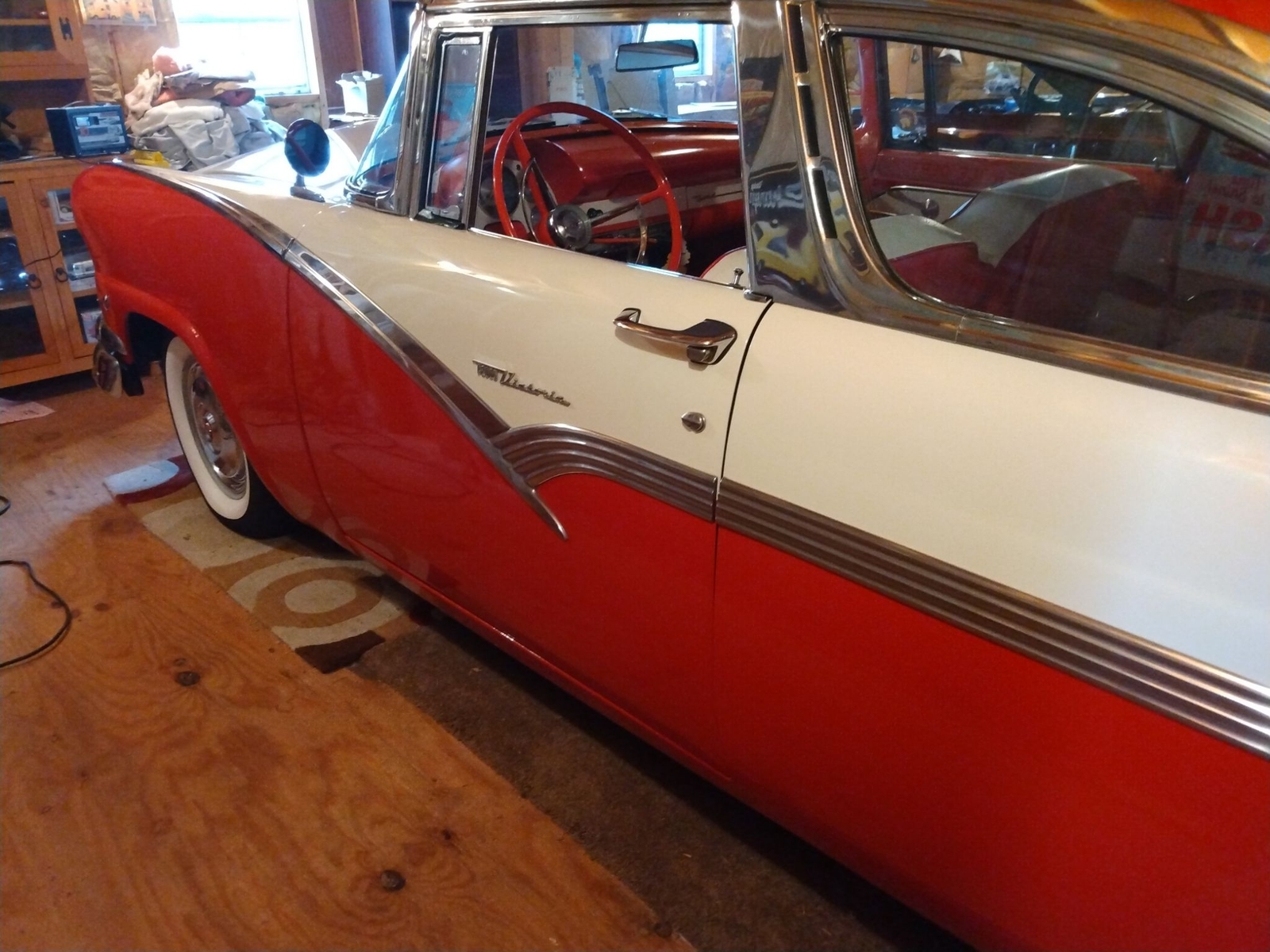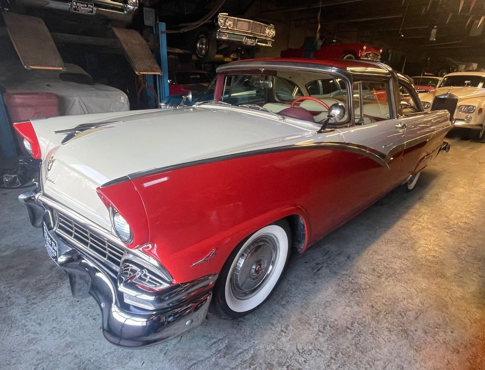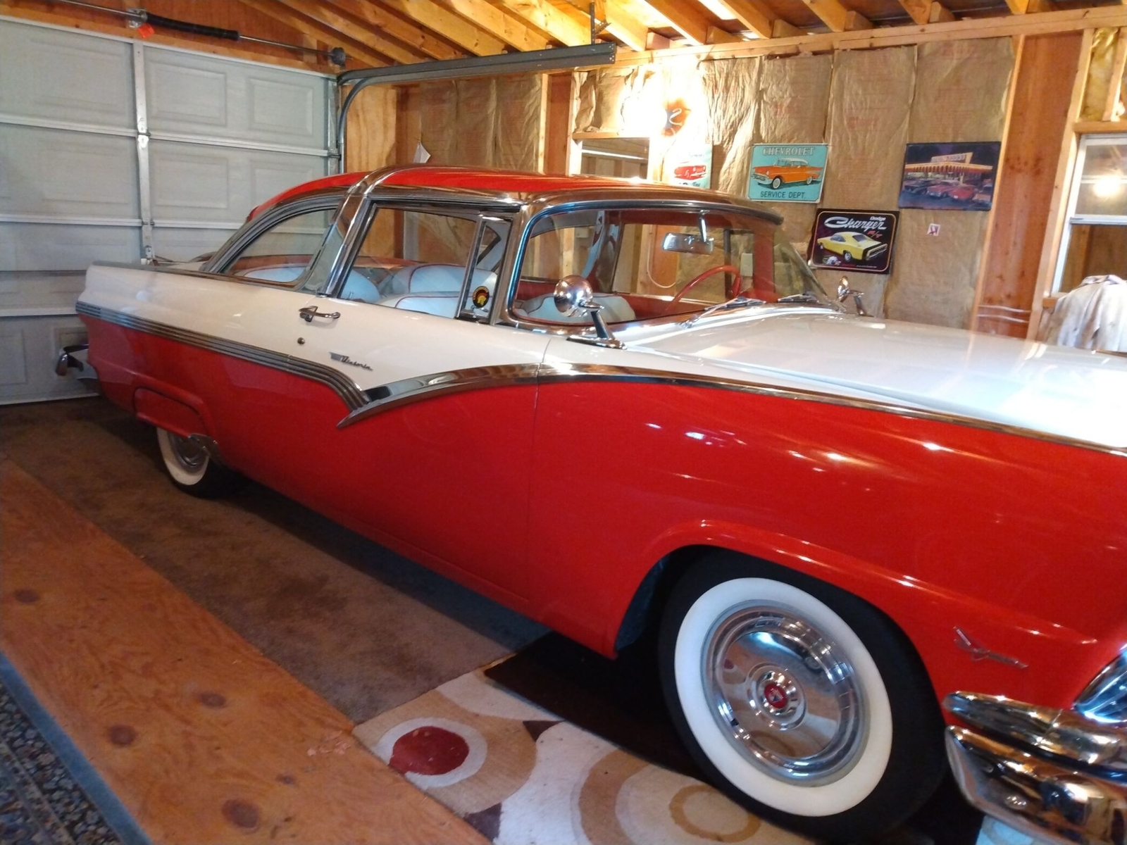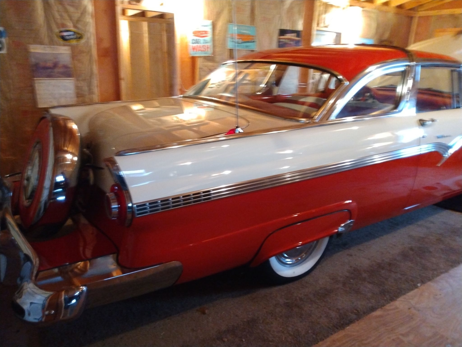 Just arrive from a private collection 1956 Ford Crown Victoria 312 three on the tree. This car has all the basic stuff that you look for in a 1956 Ford heater, wide whites, wheel disc, wipers, two-tone, paint, Dual Exhaust, including a Continental Kit, and so many more options that we take for granted today. Yes we finance up to ten years...........