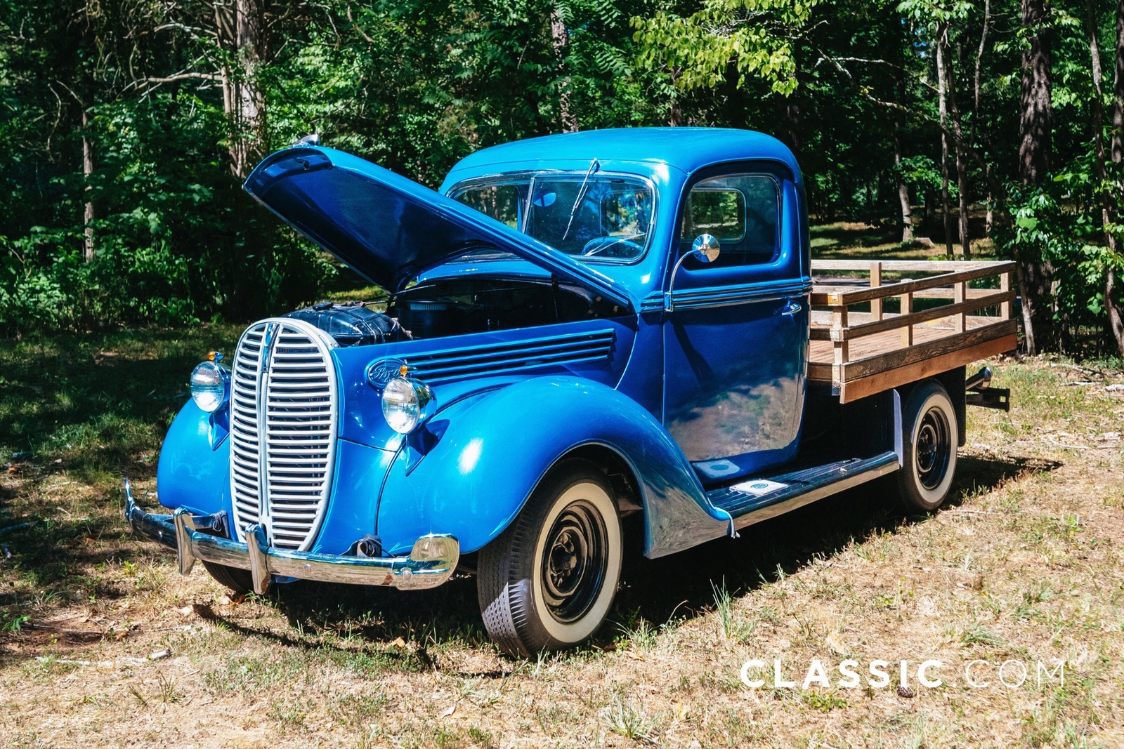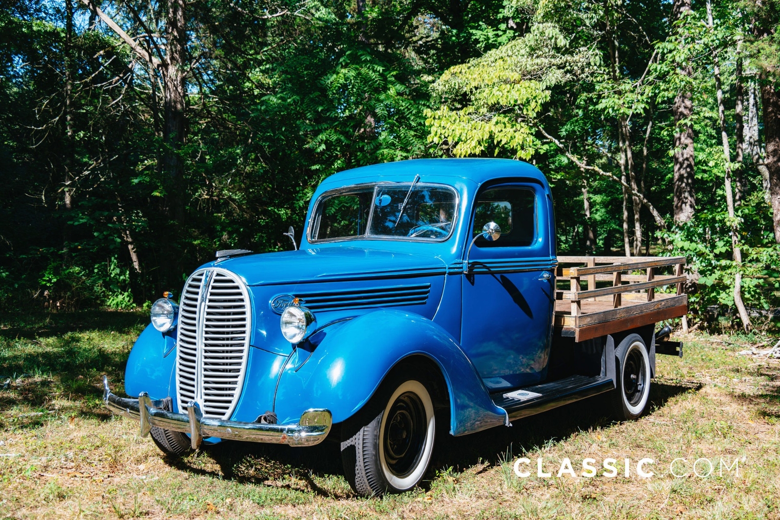 This 1938 Ford Model 81-C truck was the project of a father and son team who converted the original steel truck bed to a wooden stake bed, updated the electrical system to 12v and restored the cab inside and out. Finishing touches, including new Dolphin gauges were completed by the seller following his purchase of the truck in 2018. Features include: