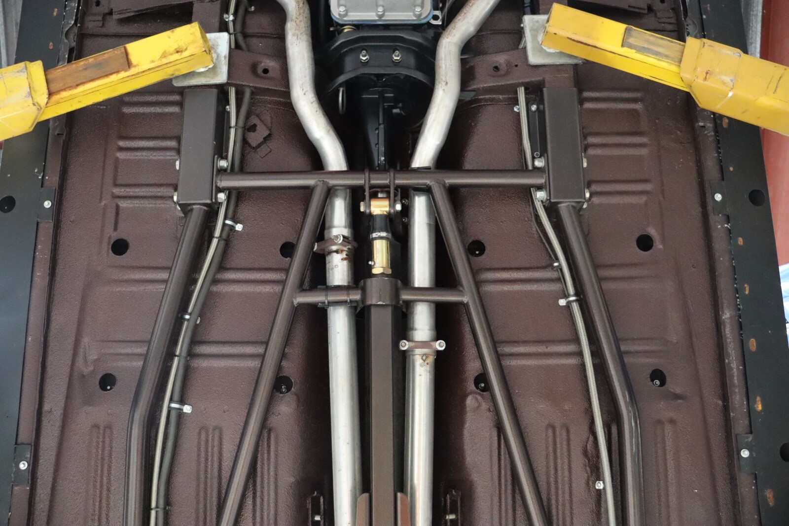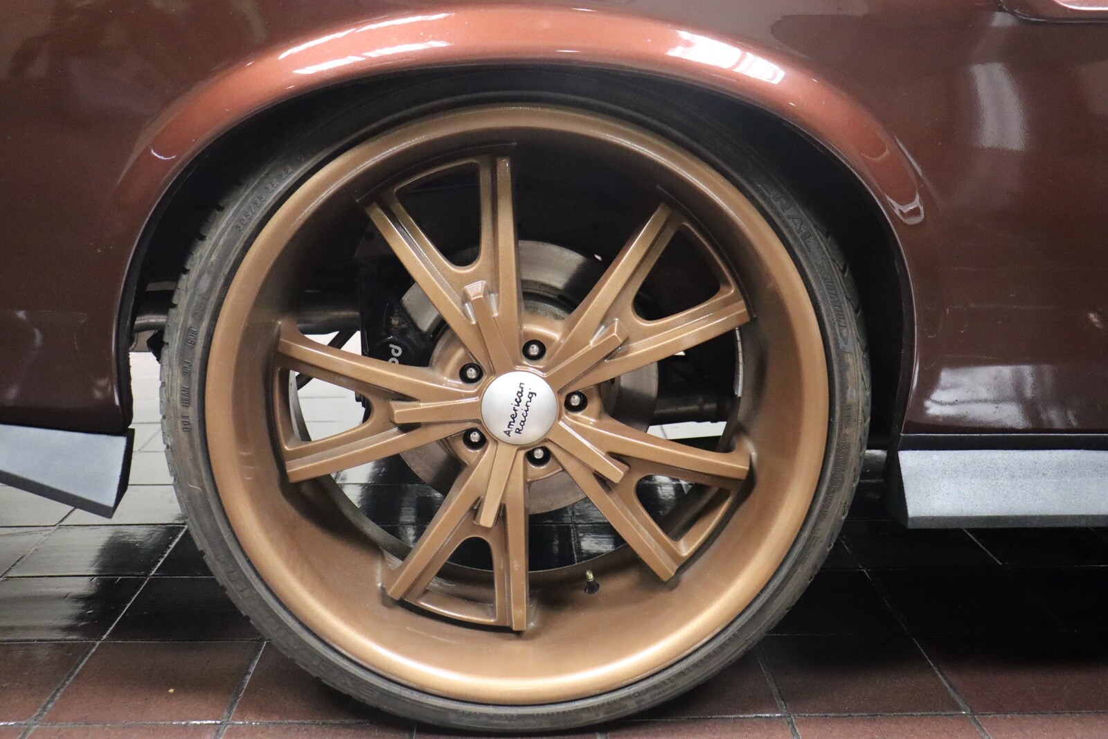 This one-of-a-kind fastback has been generously coated with a super thick Rhino lined spray, which has been color matched to blend in with the body, and the inside of the engine bay as well the interior of the body. It will definitely hold up to all weather and debris without rusting with durability. It has many one-off accents in the engine bay as well the interior, with metal work that has dimples to dress the car and makes it even more unique.