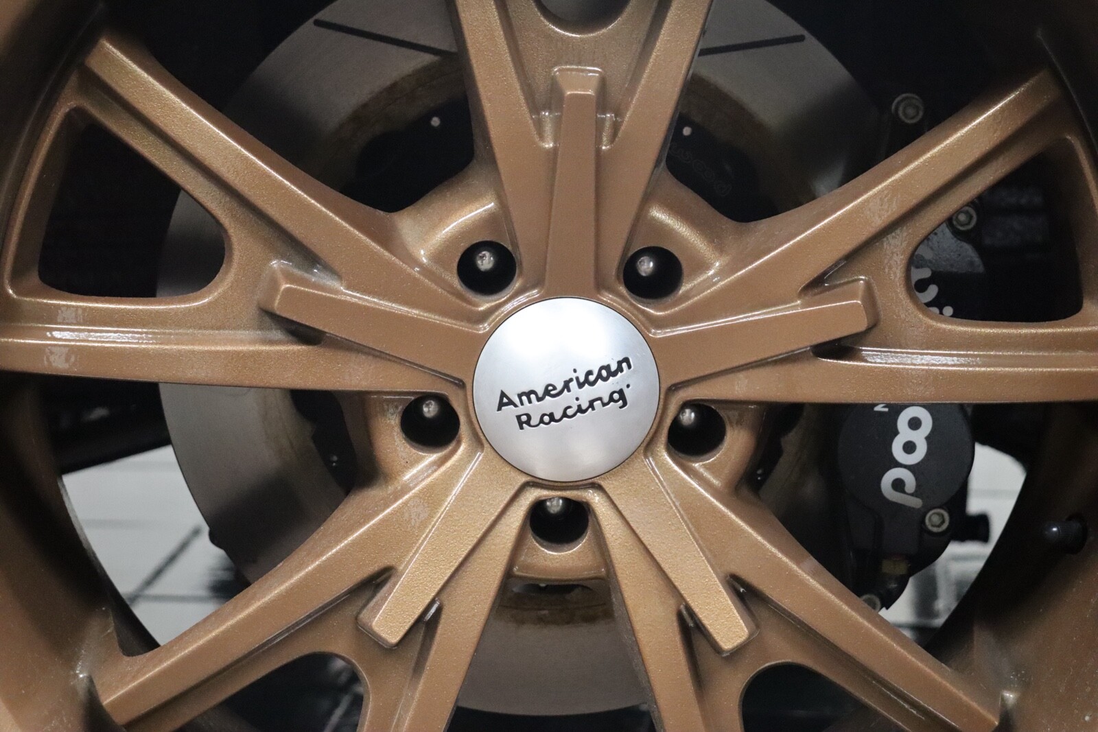 The exterior of the mustang has a special custom paint that’s Auburn, Root-beer, pearl metallic with black matte accents on the body and painted bronze pin stripes to keep your eye flowing from front to back. The door handles are from Kindigit that are flush on the door, that pop open with a touch, and Anvil carbon fiber front and rear bumpers that are tucked in the body with side valiants that run all the way along the car that are rhinoed and powder coated matte black followed by hood scoop and nose scoop.