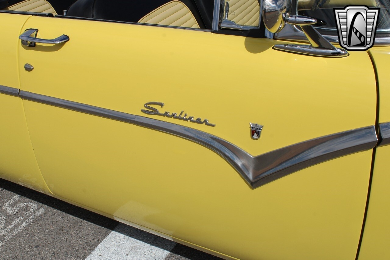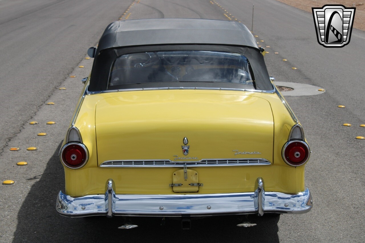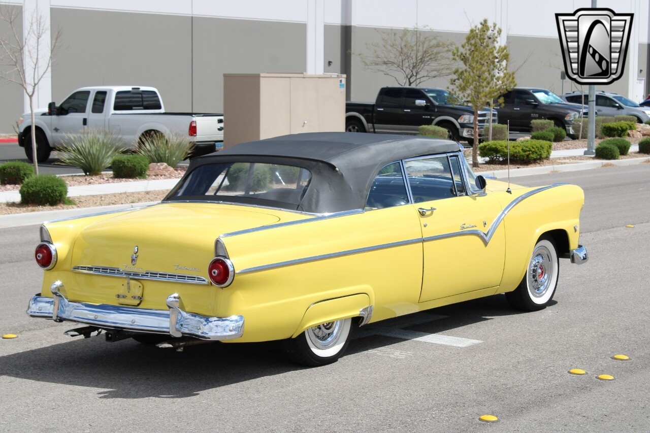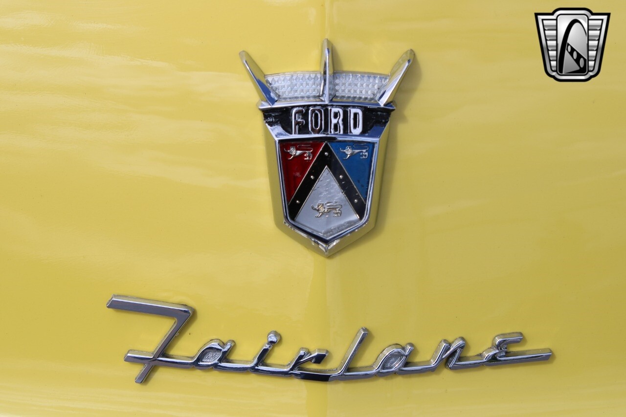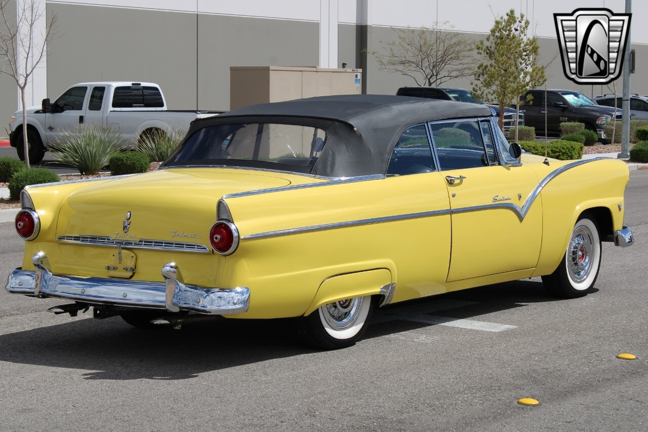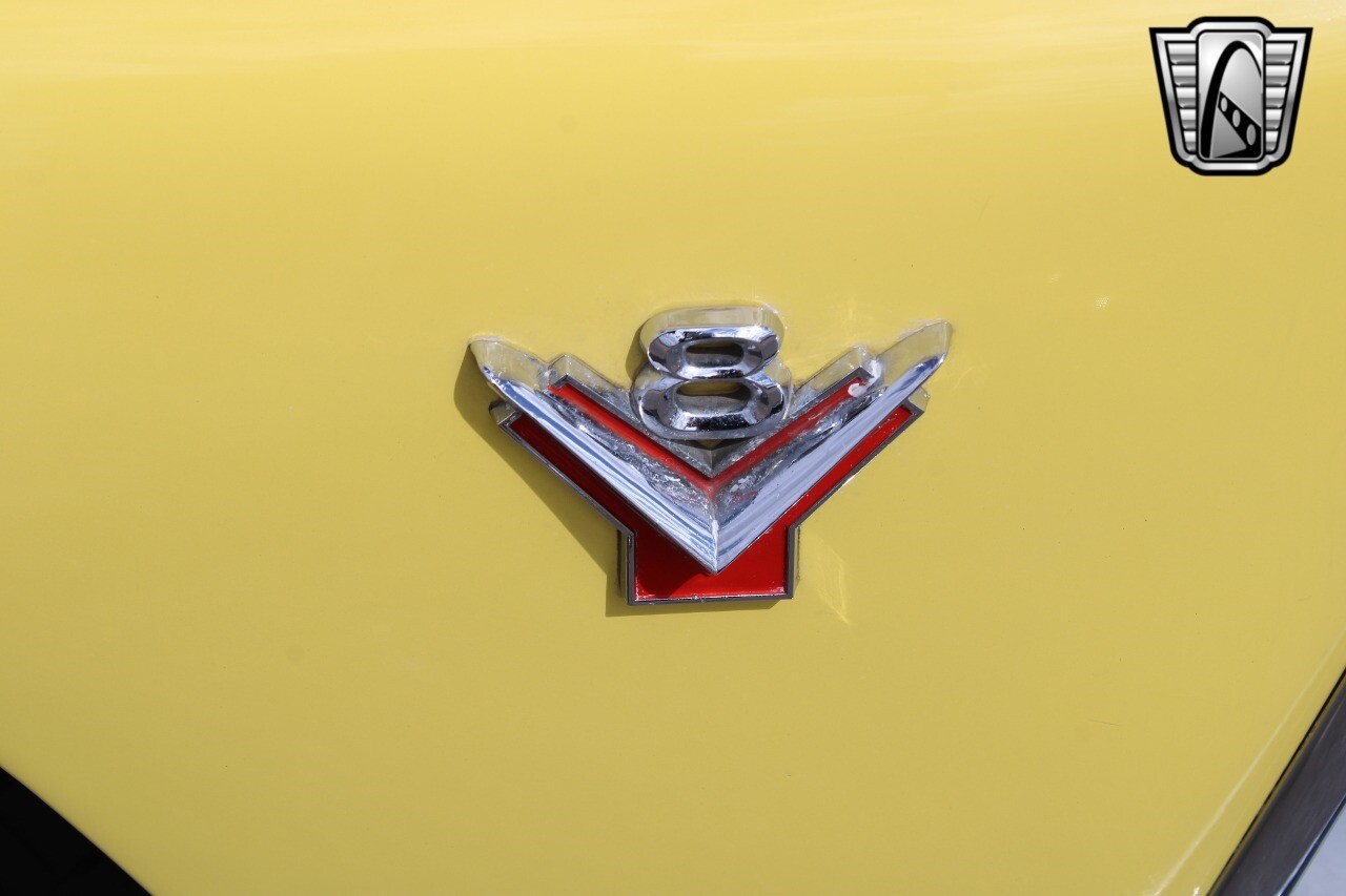 In summary, this 1955 Ford Fairlane Sunliner is a blend of classic design and modern features. Its vibrant yellow exterior, powerful V8 engine, automatic transmission, and safety features make it a desirable choice for vintage car lovers. The black and yellow vinyl interior and white wall tires add to its charm, making it a car that truly stands out from the crowd..