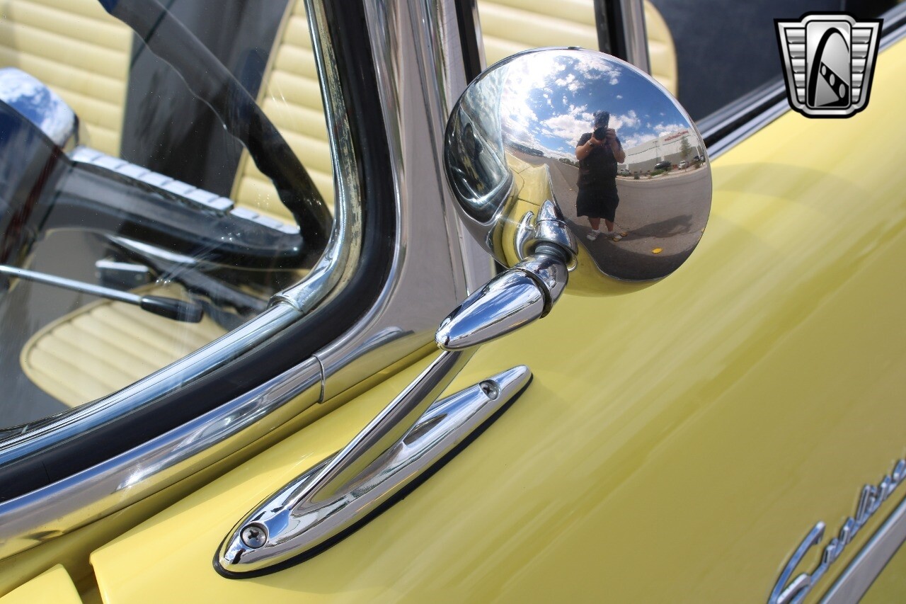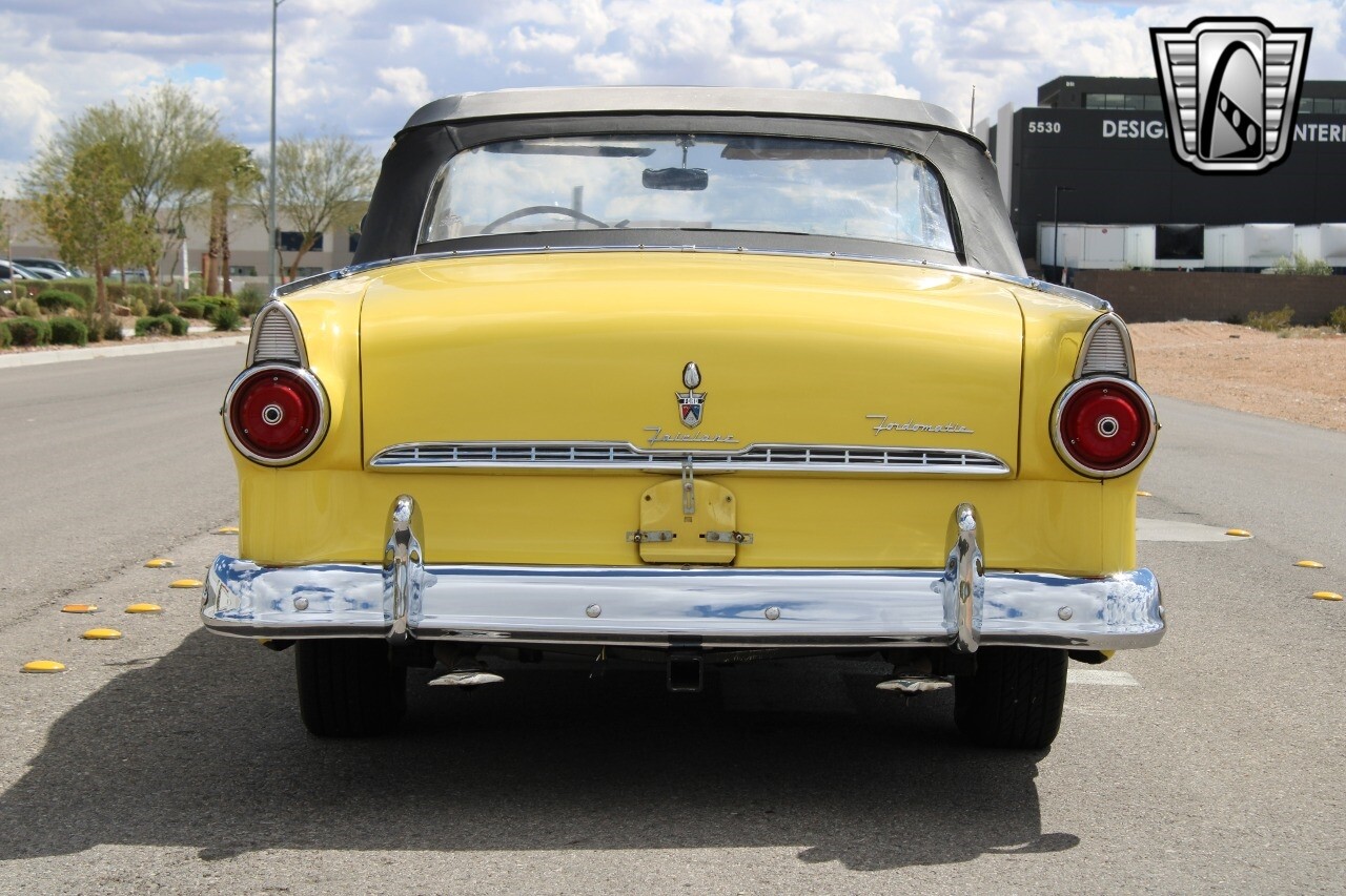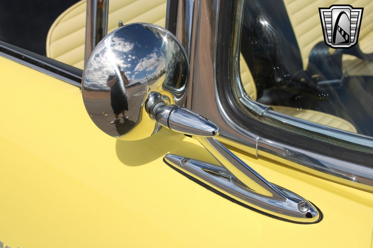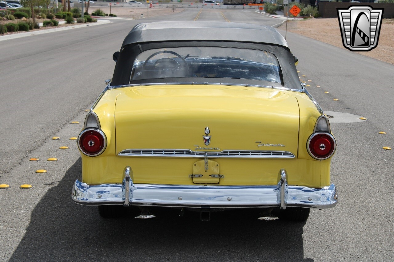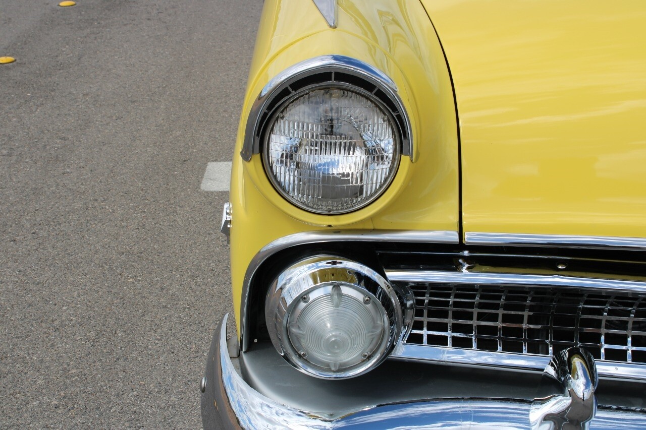 In summary, this 1955 Ford Fairlane Sunliner is a blend of classic design and modern features. Its vibrant yellow exterior, powerful V8 engine, automatic transmission, and safety features make it a desirable choice for vintage car lovers. The black and yellow vinyl interior and white wall tires add to its charm, making it a car that truly stands out from the crowd..