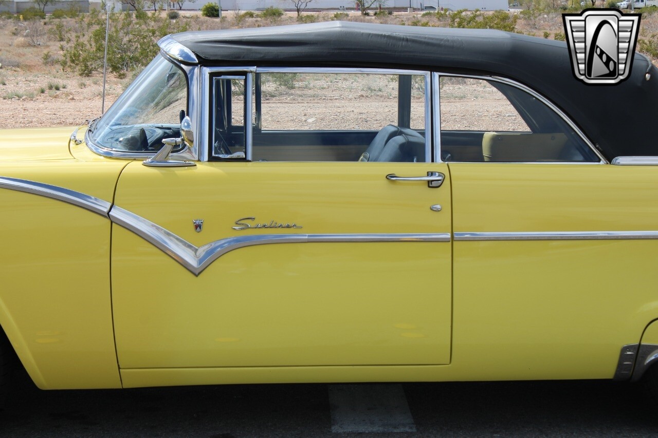 Gateway Classic Cars of Las Vegas 1955 Ford Fairlane Sunliner, a true gem for vintage car enthusiasts. This model comes in a striking yellow exterior color that is sure to turn heads wherever you go. The black and yellow interior, a match to the exterior, adds a touch of elegance and nostalgia to your driving experience.
