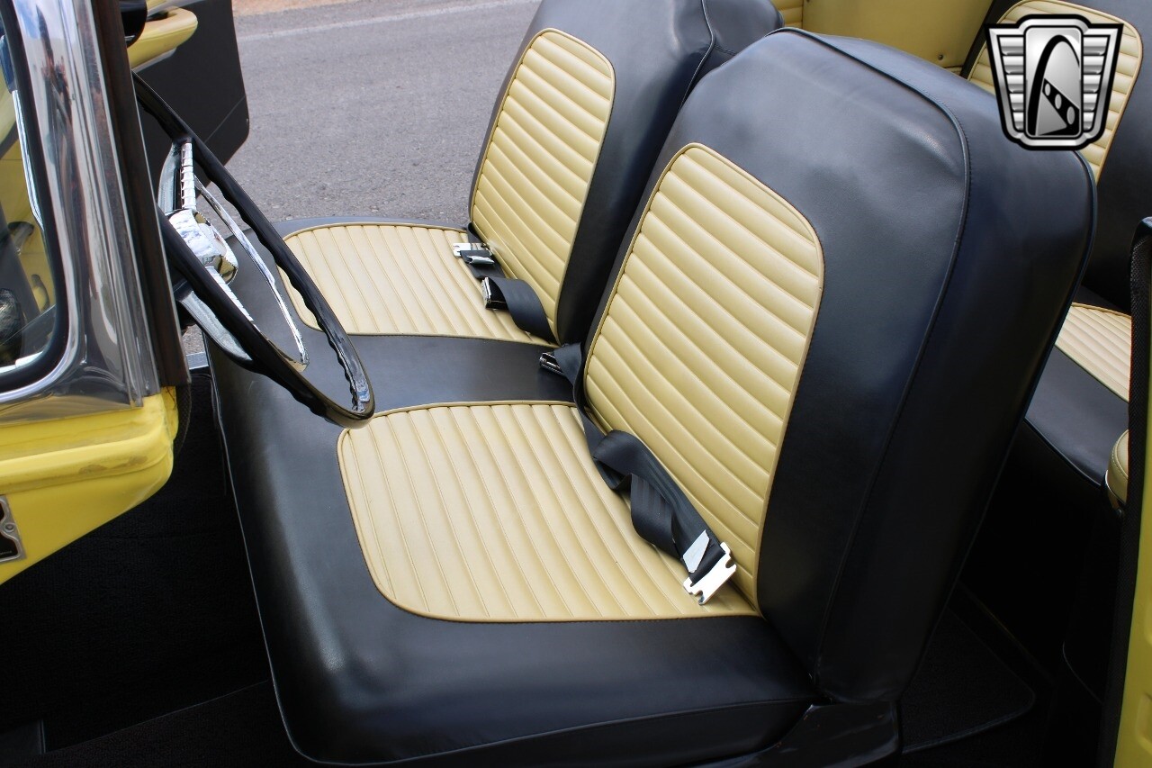 The interior of the car is adorned with a vinyl finish, providing a sleek and clean look that is easy to maintain. This feature adds to the car's vintage charm while offering practicality and durability.