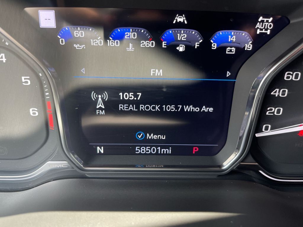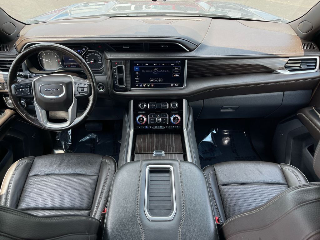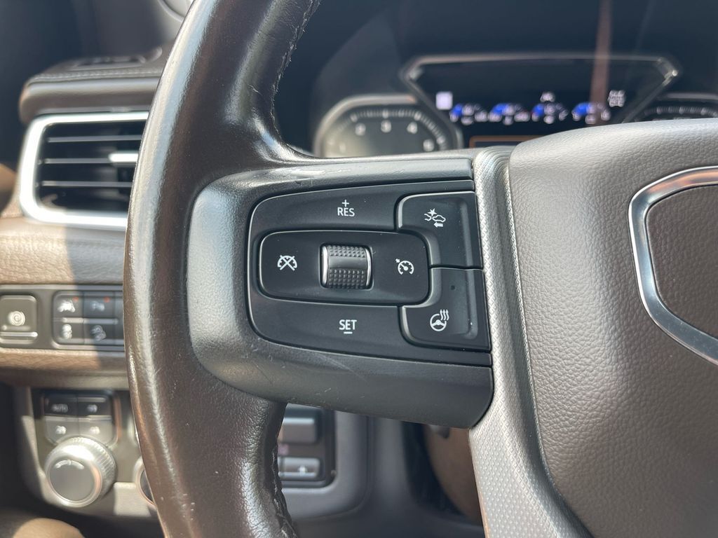 THIS VEHICLE INCLUDES THE FOLLOWING FEATURES AND OPTIONS: 4WD, 12-Way Power Seat Adjusters, 14 Speakers, 15 Diagonal Multi-Color Head-Up Display, 2 Presets For Outside Rearview Mirrors, 3.23 Rear Axle Ratio, 3rd Row 60/40 Power-Folding Split-Bench Seat, 3rd row seats: split-bench, 4-Wheel Disc Brakes, ABS brakes, Adaptive suspension, Air Conditioning, Alloy wheels, AM/FM radio: SiriusXM with 360L, Apple CarPlay/Android Auto, Auto High-beam Headlights, Auto-dimming door mirrors, Auto-dimming Rear-View mirror, Auto-leveling suspension, Automatic Emergency Braking, Automatic temperature control, Bodyside moldings, Bose 14-Speaker Surround w/CenterPoint, Brake assist, Bright Front & Rear Door Sill Plates, Bumpers: body-color, Chrome Door Handles w/Body-Color Strip, Compass, Cruise Control, Delay-off headlights, Driver door bin, Driver vanity mirror, Dual Exhaust System, Dual front impact airbags, Dual front side impact airbags, Electronic Stability Control, Emergency communication system: OnStar and GMC connected services capable, Following Distance Indicator, Forward Collision Alert, Four wheel independent suspension, Front anti-roll bar, Front Bucket Seats, Front Center Armrest, Front dual zone A/C, Front fog lights, Front Pedestrian Braking, Front reading lights, Fully automatic headlights, Galvano Bodyside Moldings, Garage door transmitter, Hands-Free Power Programmable Rear Liftgate, HD Radio, HD Surround Vision, Heads-Up Display, Heated & Ventilated Driver & Front Passenger Seats, Heated 2nd Row Outboard Position Seats, Heated Automatic Steering Wheel, Heated door mirrors, Heated Driver & Front Passenger Seats, Heated front seats, Heated rear seats, Heated steering wheel, Hill Descent Control, Illuminated entry, Inside Rear-View Auto-Dimming Mirror, IntelliBeam Automatic High Beam On/Off, Lane Change Alert w/Side Blind Zone Alert, Lane Keep Assist w/Lane Departure Warning, Leather steering wheel, Low tire pressure warning, Magnetic Ride Control Suspension, Memory seat, Occupant sensing airbag, Outside Heated Power-Adjustable Mirrors, Outside temperature display, Overhead airbag, Overhead console, Panic alarm, Passenger door bin, Passenger vanity mirror, Perforated Leather Seating Surfaces, Power door mirrors, Power driver seat, Power Liftgate, Power passenger seat, Power Release 2nd Row Bucket Seats, Power steering, Power Tilt & Telescopic Steering Column, Power windows, Radio: AM/FM/SiriusXM w/Navigation, Rain sensing wipers, Rear air conditioning, Rear anti-roll bar, Rear Cross Traffic Alert, Rear Pedestrian Alert, Rear reading lights, Rear window defroster, Rear window wiper, Remote keyless entry, Roof rack: rails only, Security system, SiriusXM w/360L, Speed-sensing steering, Split folding rear seat, Spoiler, Steering wheel memory, Steering wheel mounted audio controls, Tachometer, Telescoping steering wheel, Tilt steering wheel, Traction control, Trip computer, Turn signal indicator mirrors, Universal Home Remote, Variably intermittent wipers, Ventilated front seats, Voltmeter, and Wheels: 20 x 9 6-Spoke Polished Aluminum.