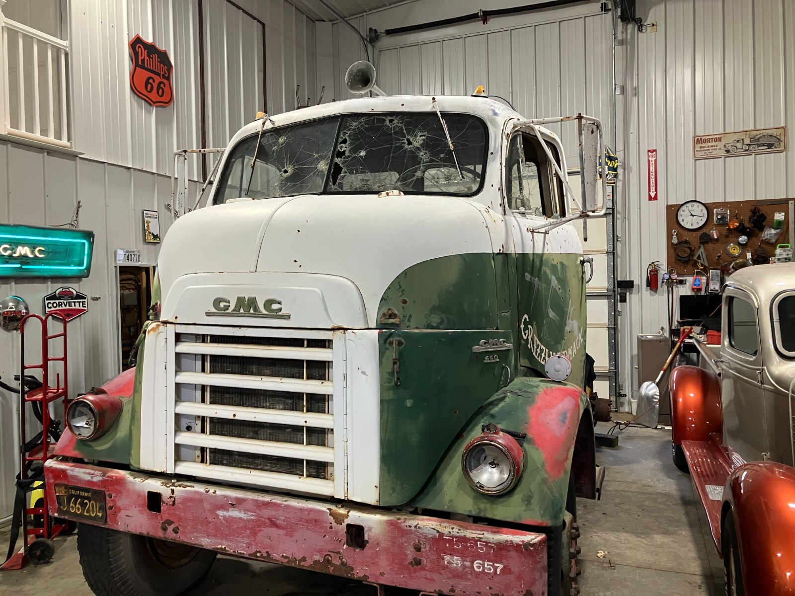 955 GMC "Cannonball". Day Cab, 503 CID gasoline engine, 5 Speed transmission , 2 Speed rear, Air Brakes, BUDD Wheels. Rust free California Truck, Hasn't been run in over 10 years. I checked compression before starting.(see Pic) Replaced Zenith side daft carb, fuel pump, and Rebuilt starter. New battery. Runs very good to be a 70 yr old truck. Good oil pressure. Builds air but lines are dry rotted. I drove it around the neighbor hood. Someone used it for target practice with a BB gun Rear glasses have been replaced with Plexiglas, Windshield is safety glass